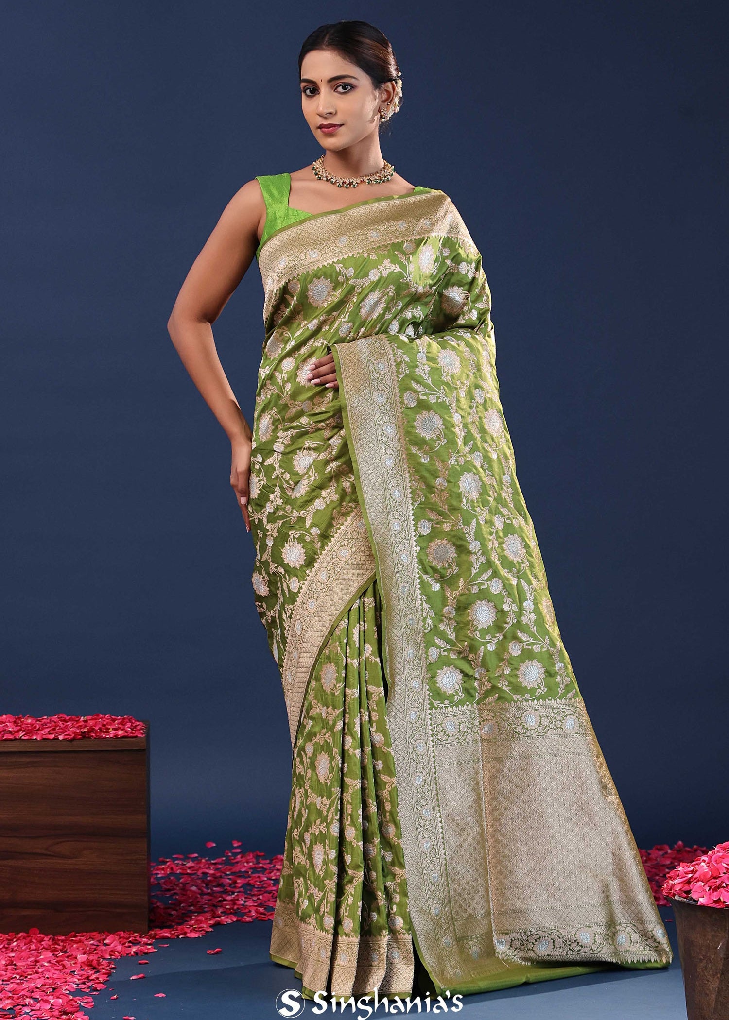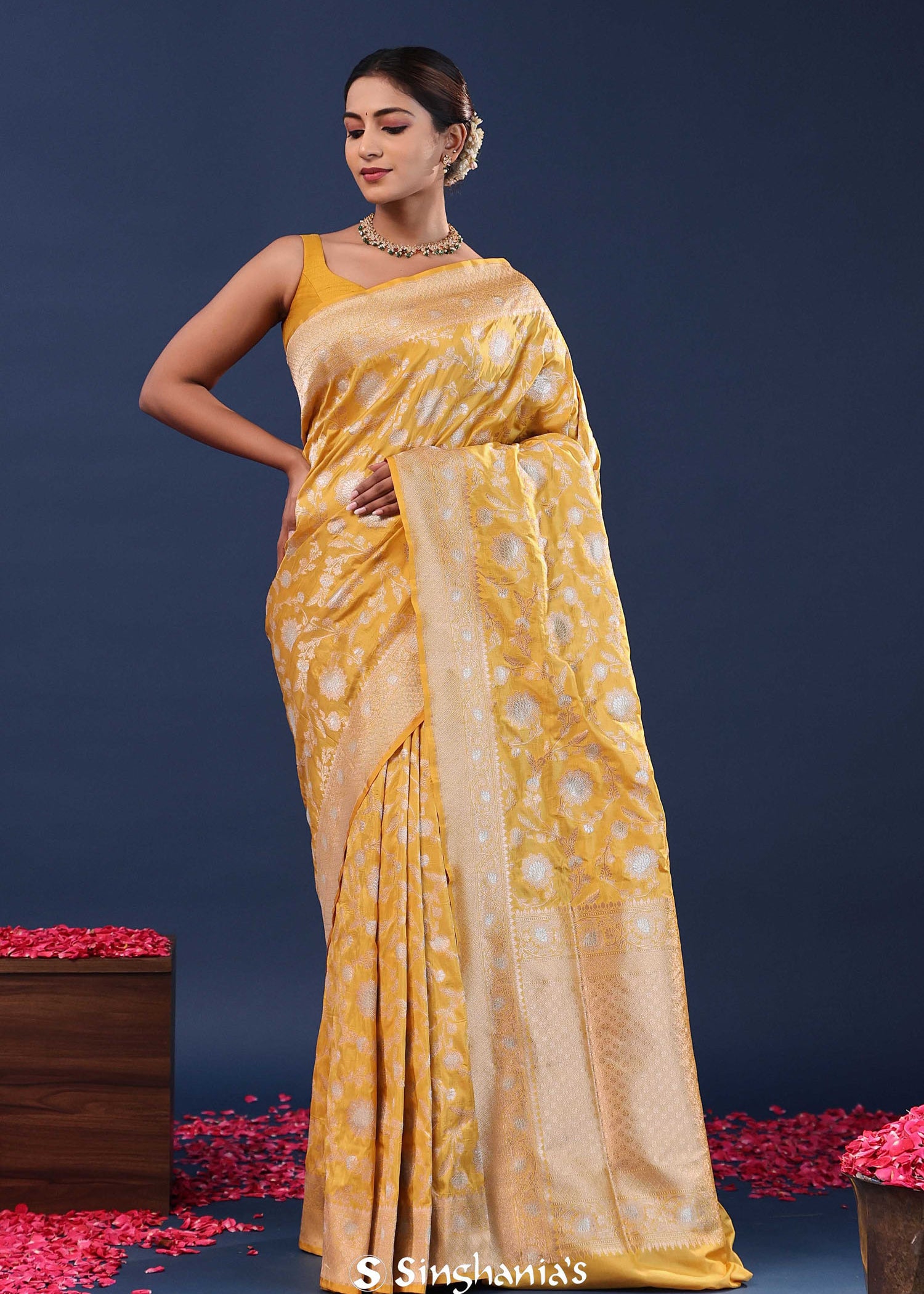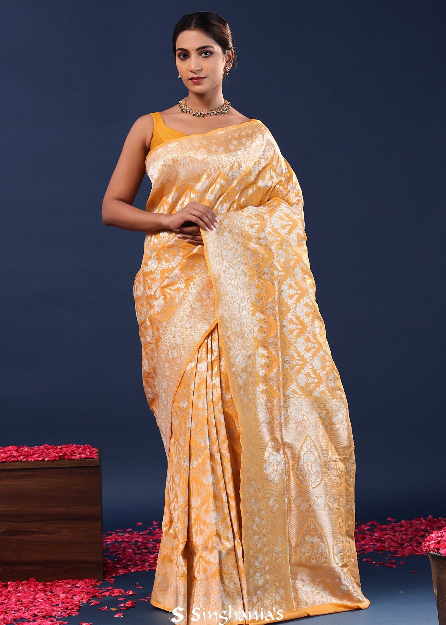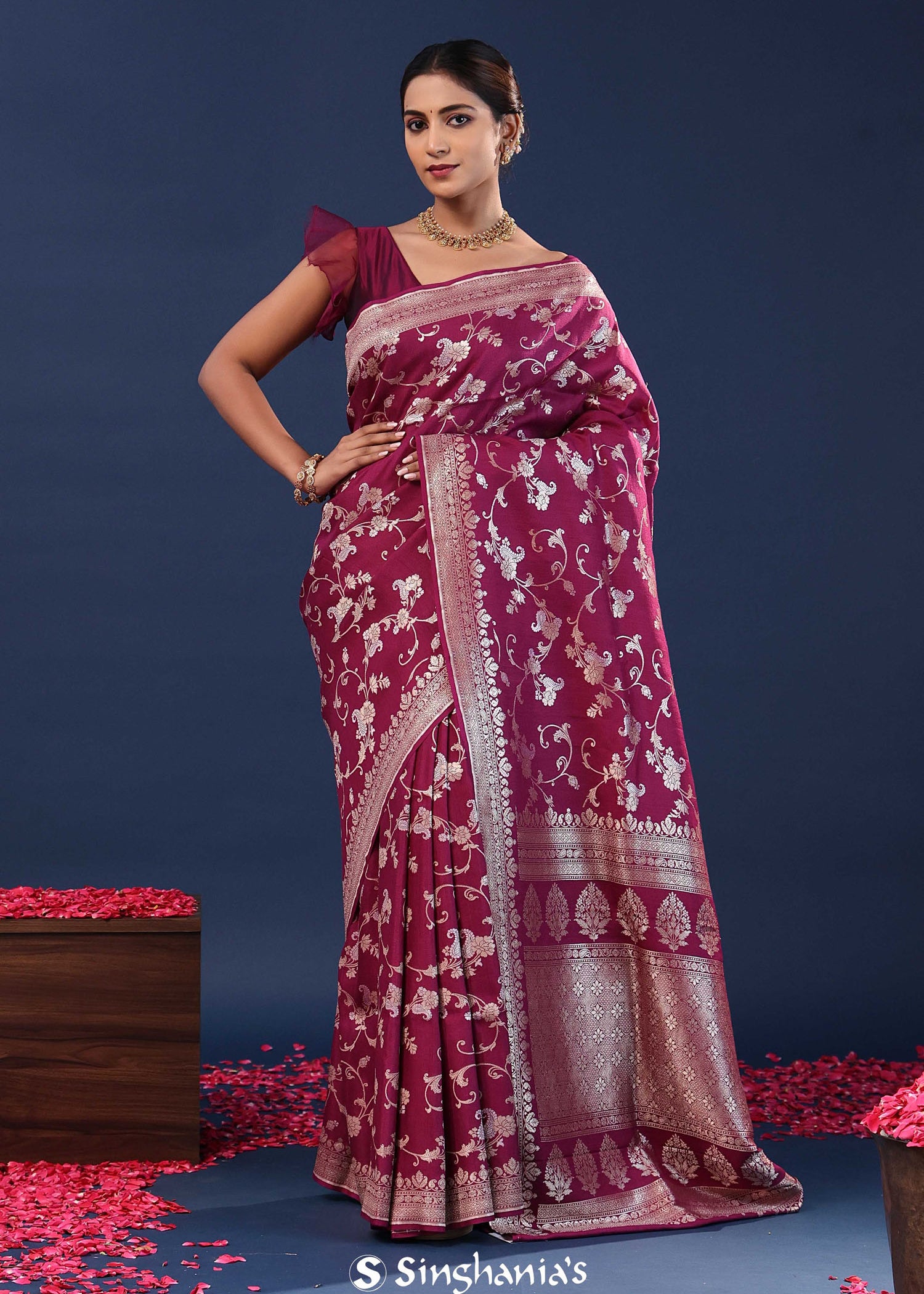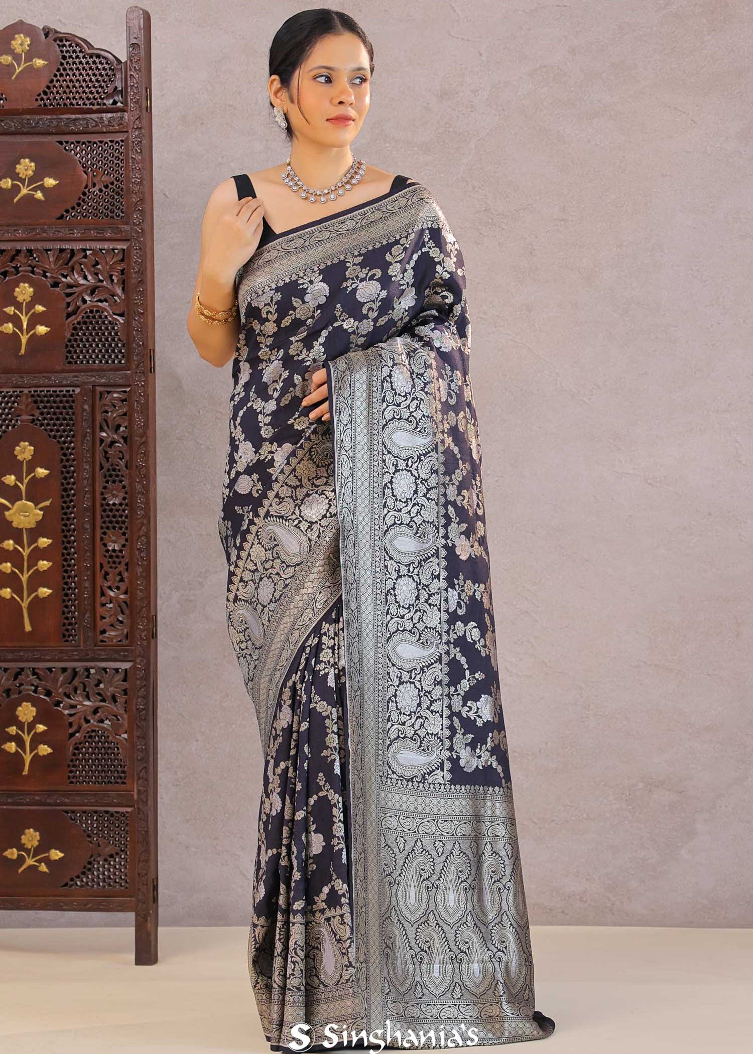 Behold, the pinnacle of beauty and grace! This stunning saree collection will make you feel like a real queen. The mix of traditional floral Banarasi sarees and "artistry with a touch of modern flair" results in stunning attire suitable for any special event.