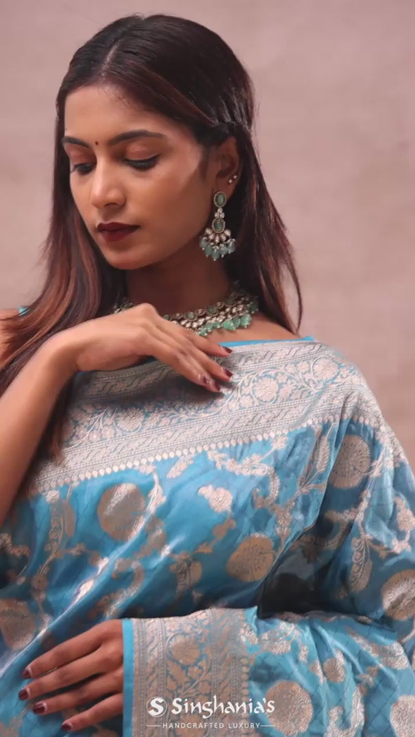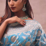 Cerulean Blue Banarasi Silk Saree With Floral Jaal