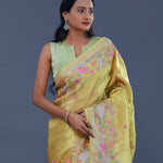 Hazel Wood Yellow Georgette Tissue Saree