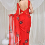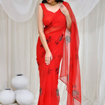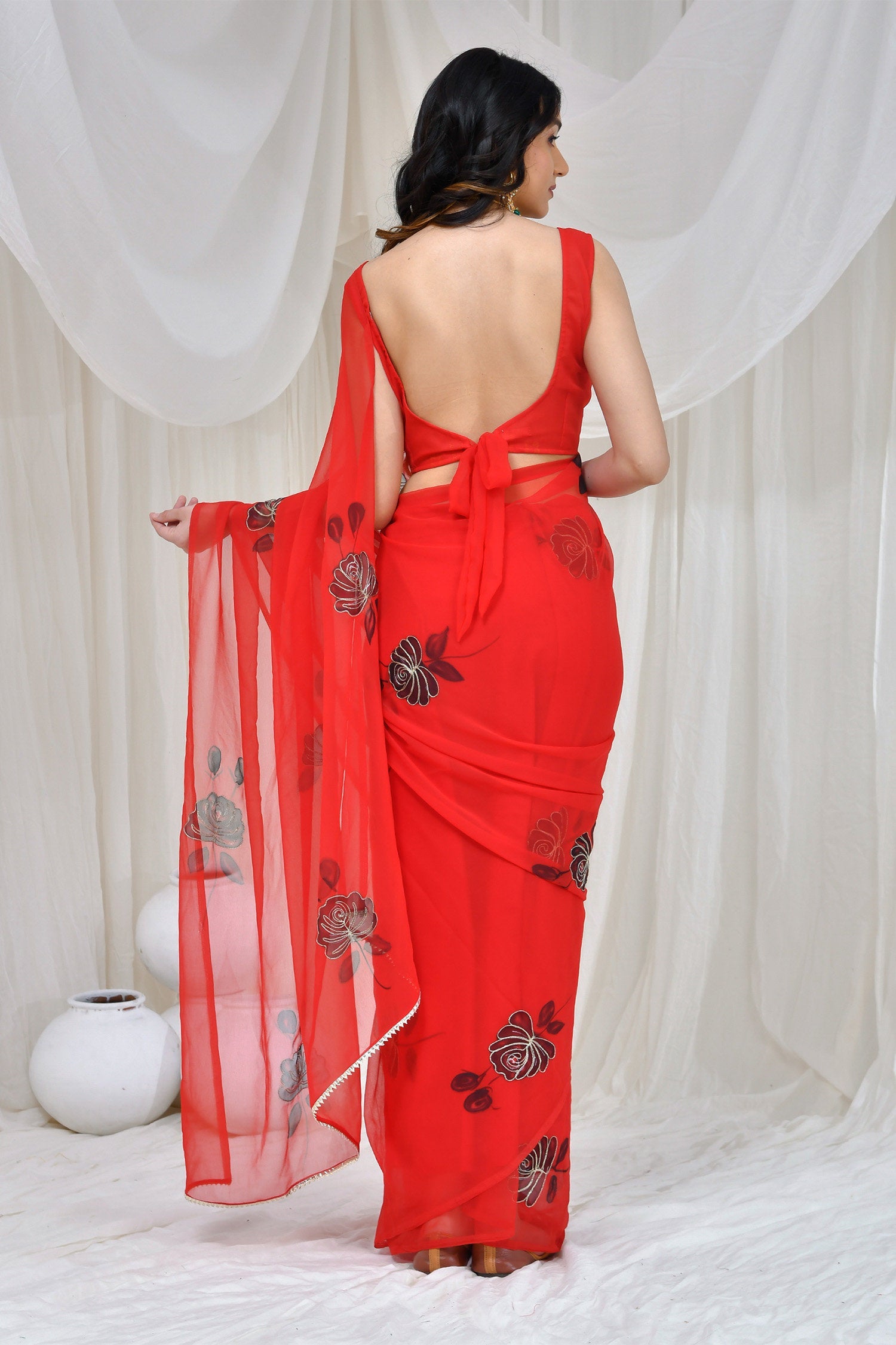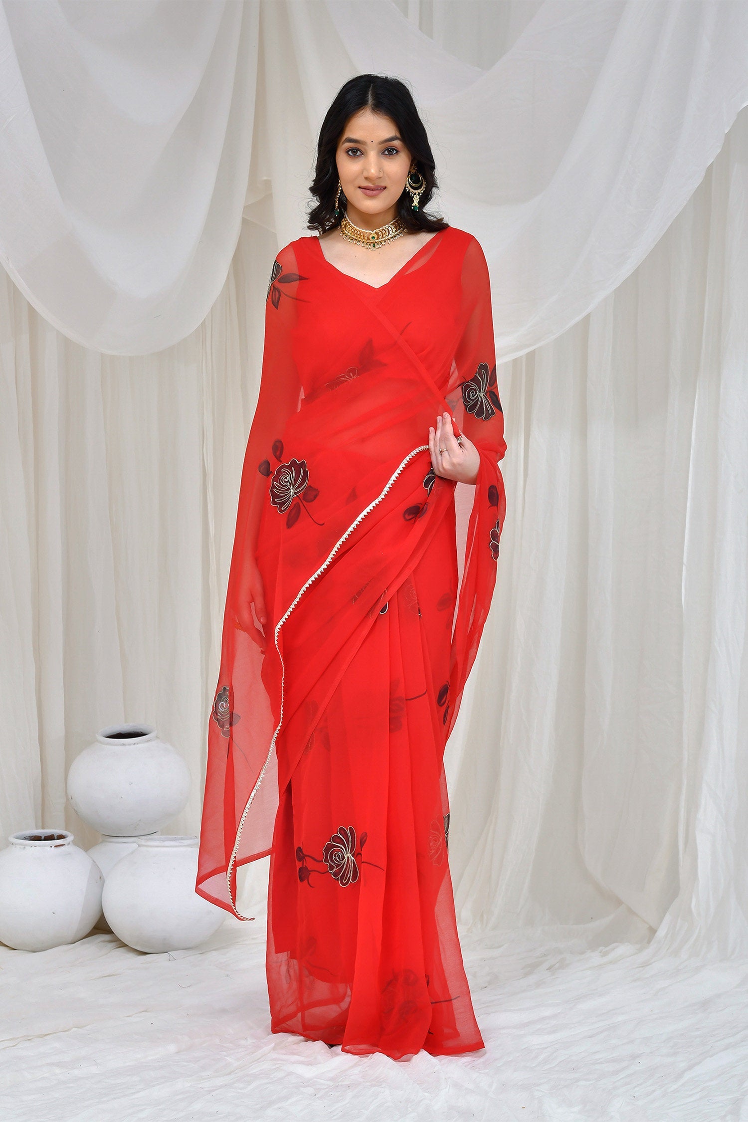 The beautiful solid red plain hand painted georgette saree for an amazing look with neat finish that gives subtle elegance.