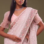 Soft Pink Georgette Embroidery Saree With Scallop Border