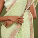 Soft Pistachio Green Georgette Embroidery Saree With Scallop Border