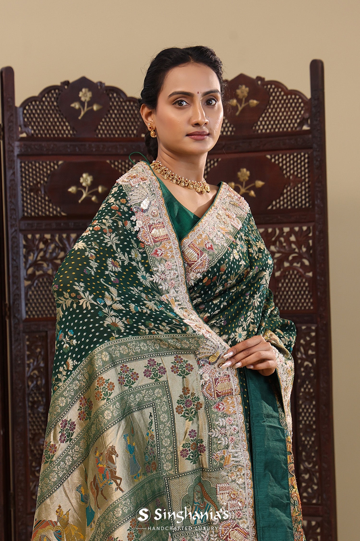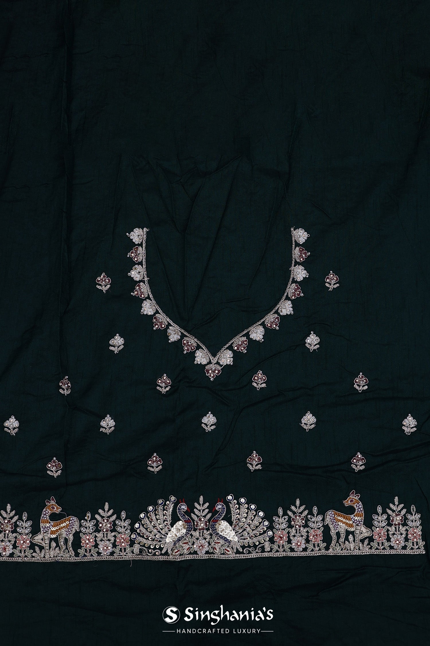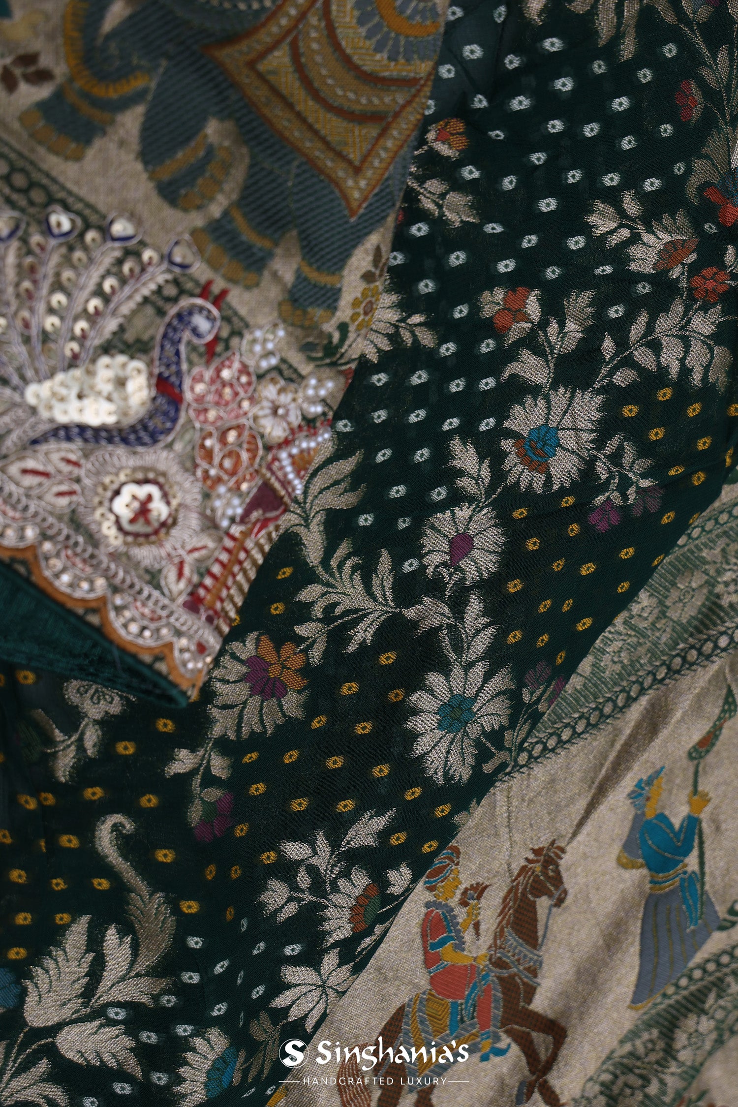 This floral pattern woven with gold zari spread all across the body of saree complemented with fancy designer border adorned with zari embroidery