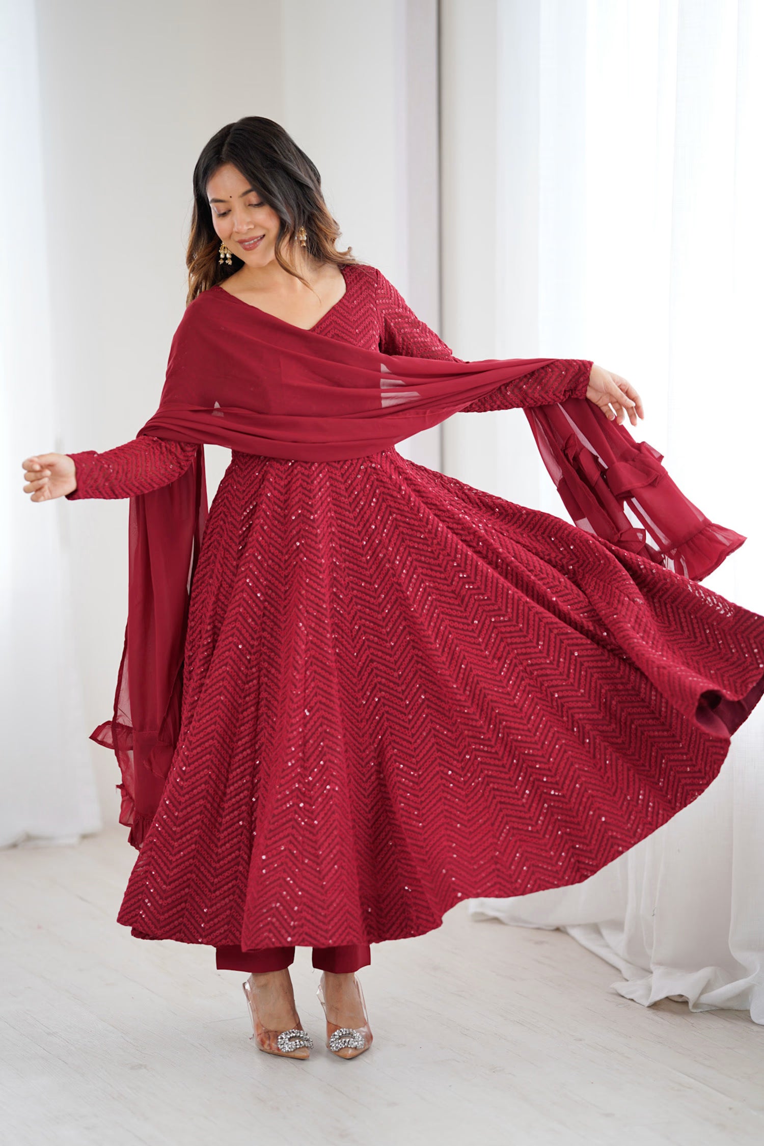 Bright Maroon Georgette Sequin Embroidered Anarkali Set
