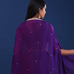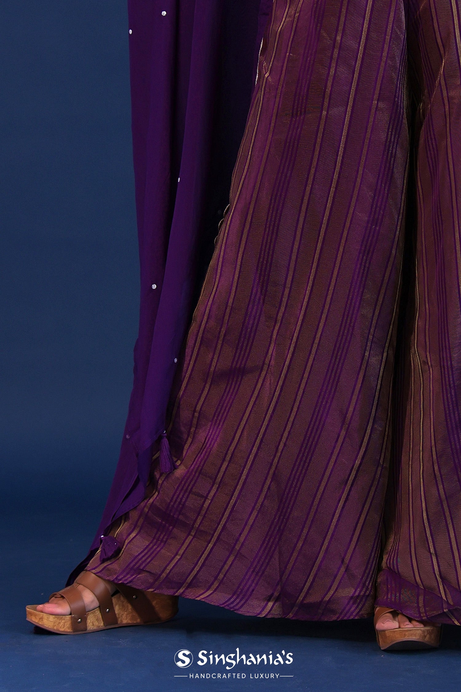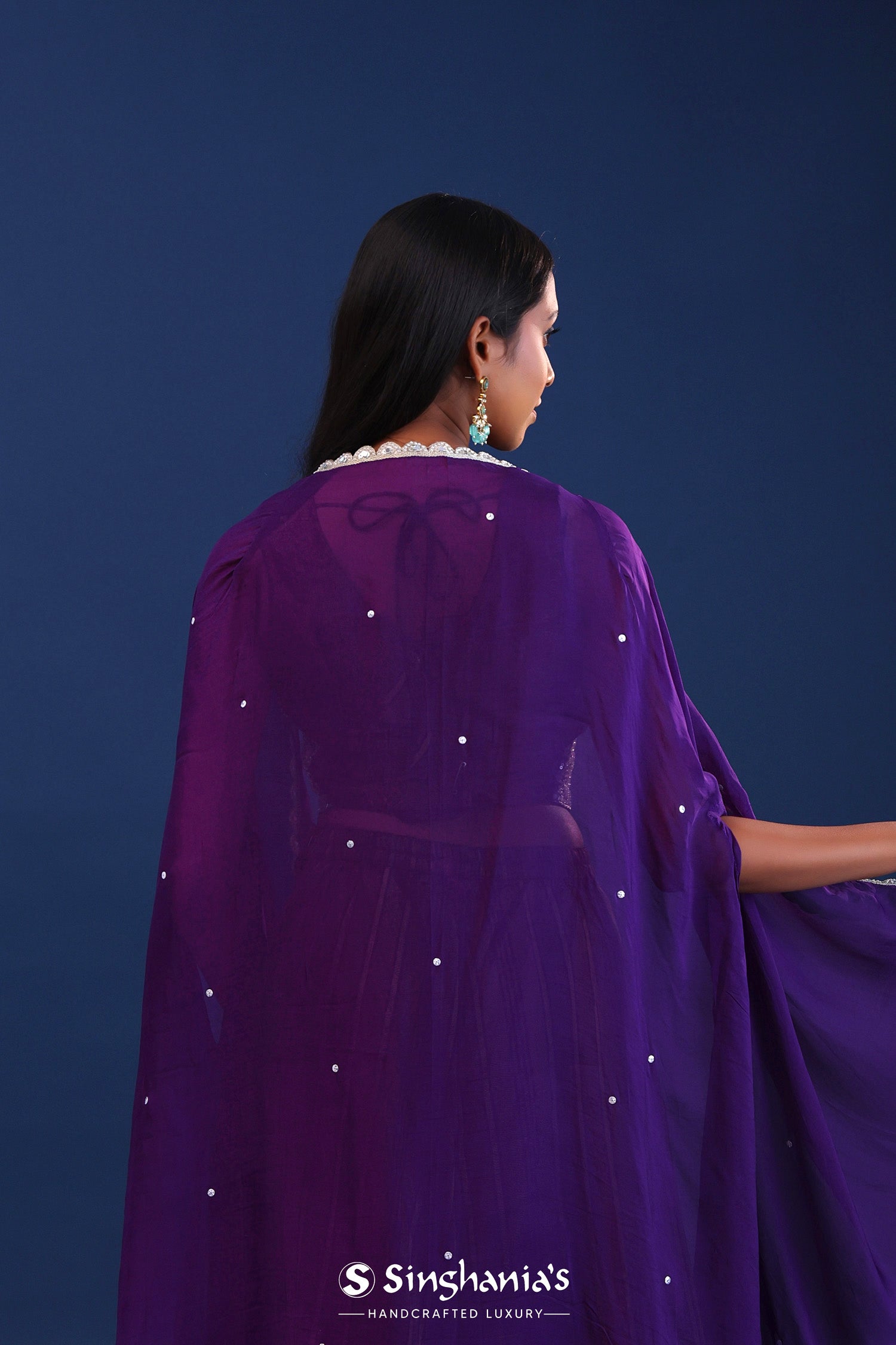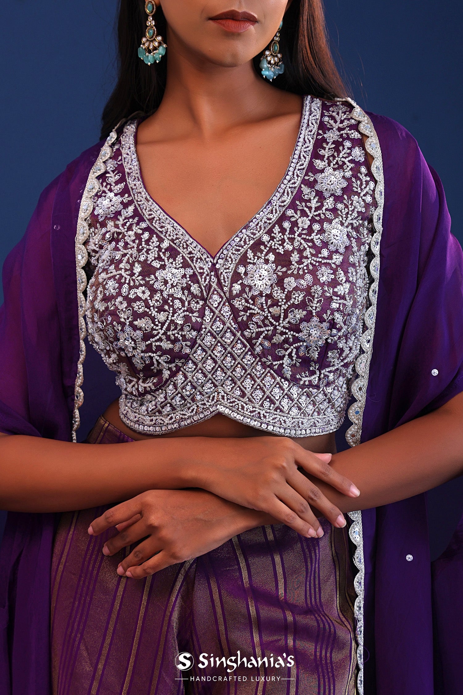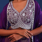 The deep purple georgette indo western choli set with crepe silk cape jacket and sequin work for a perfect blend of style and tradition.