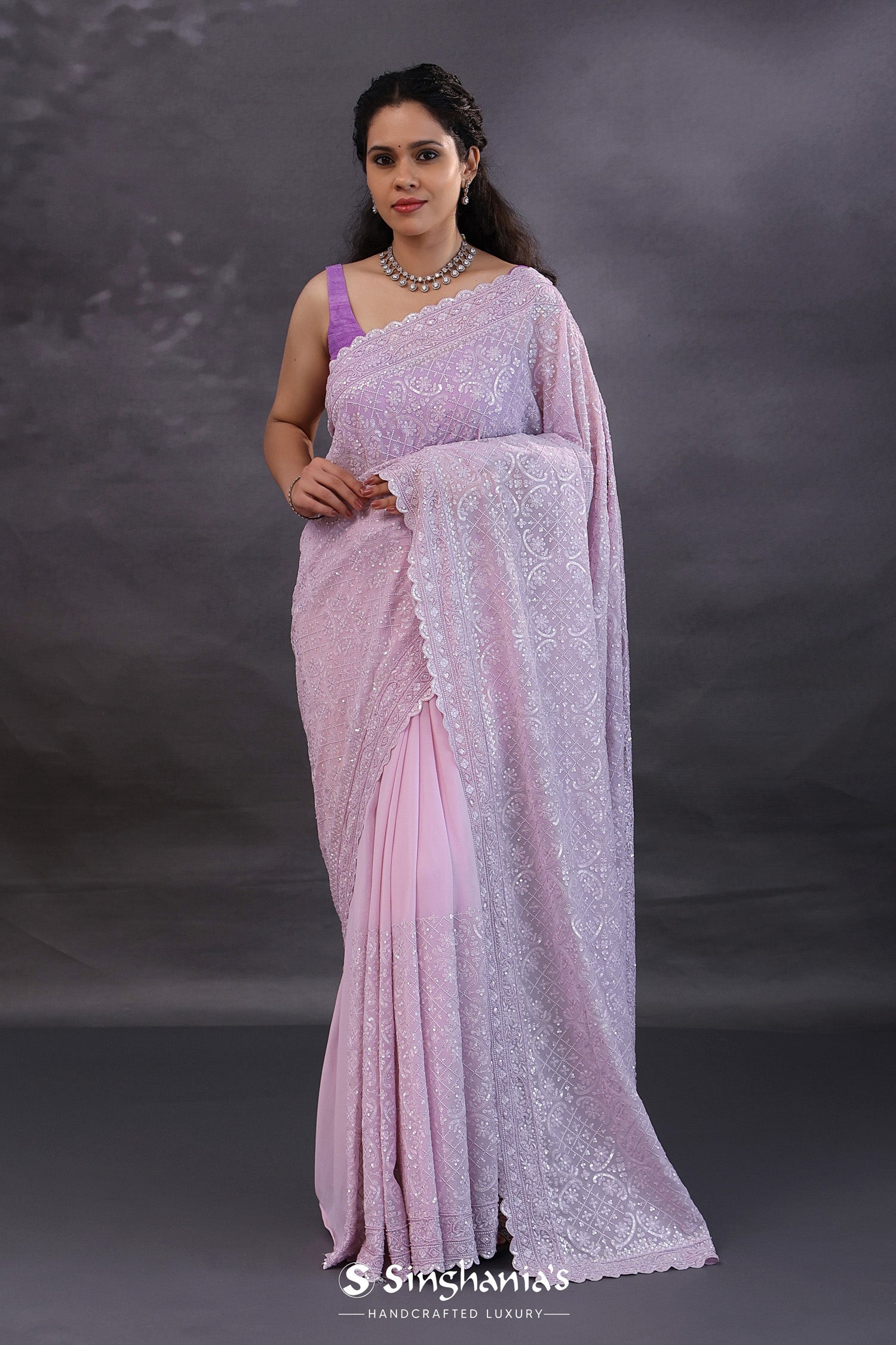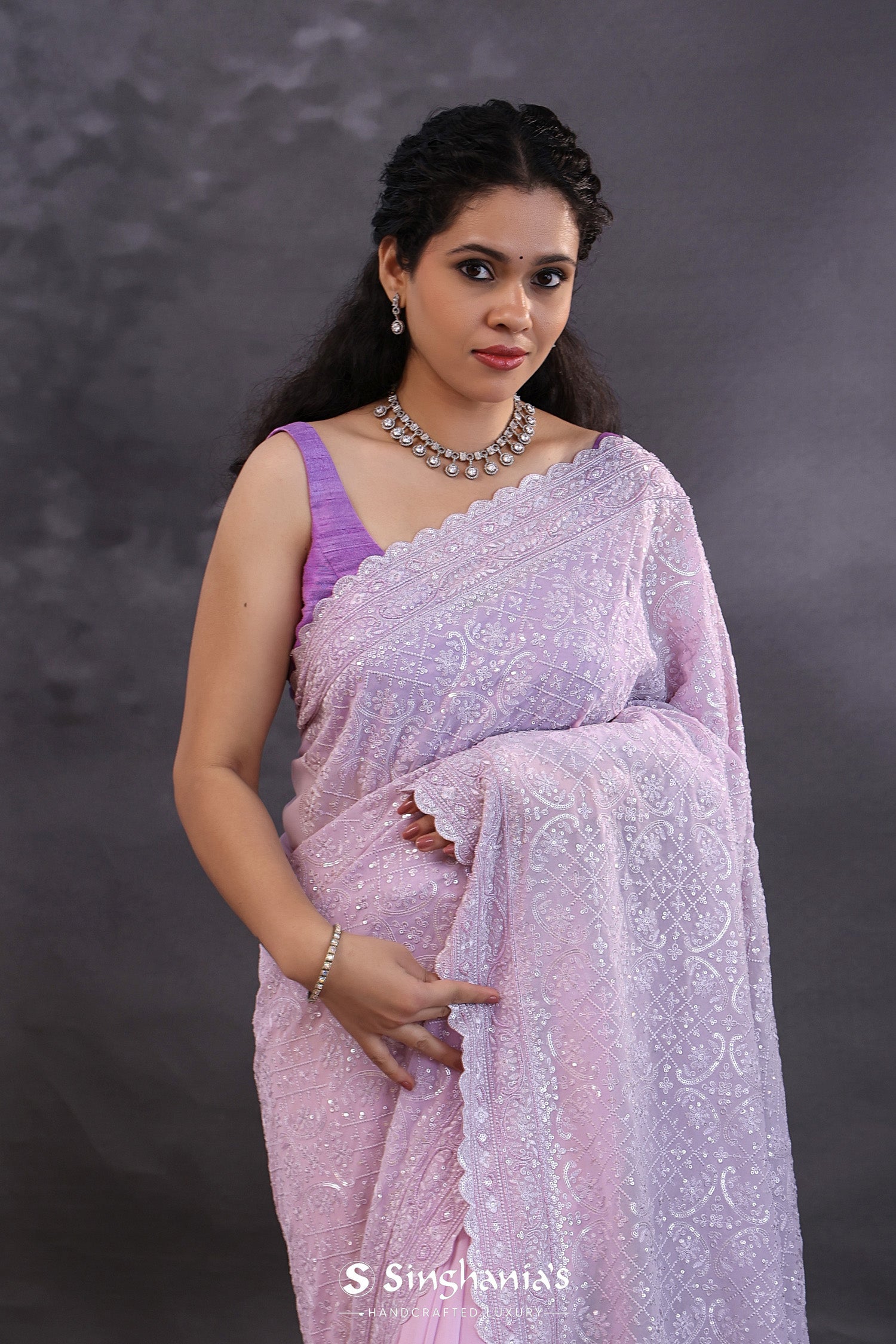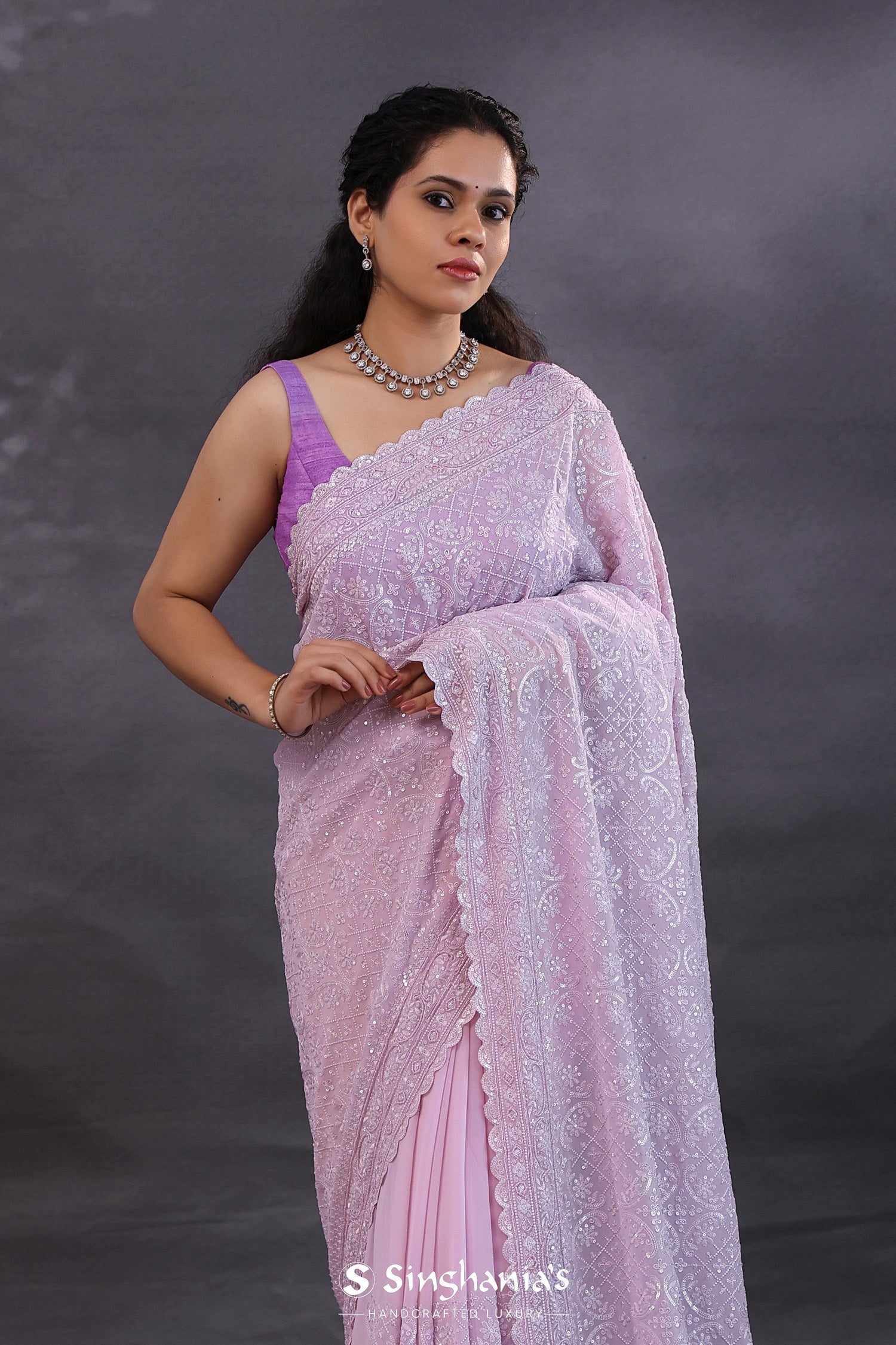 Pastel Purple Georgette Fancy Saree With Thread Work