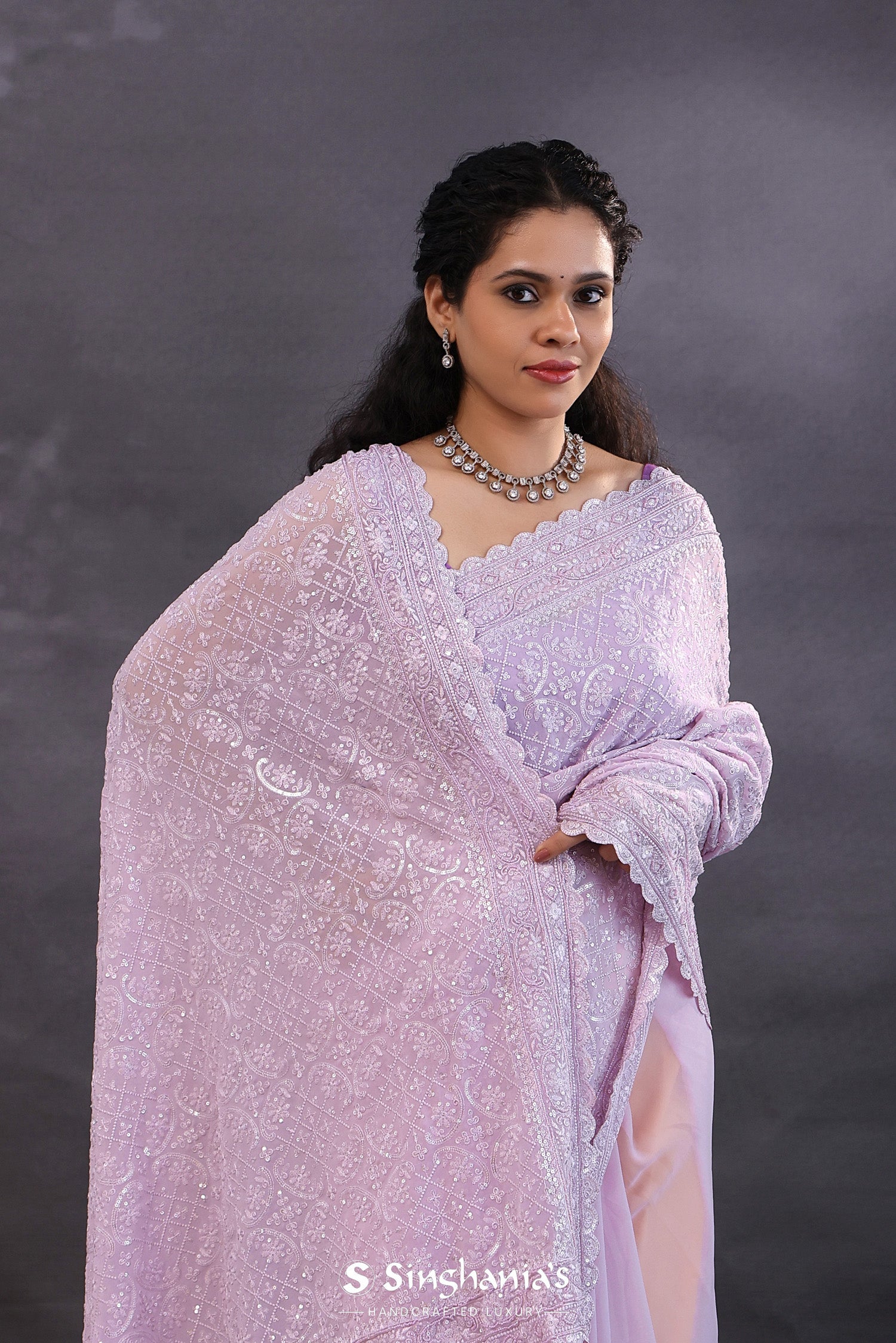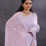 The pastel purple georgette fancy saree sequin and thread work for a subtle elegant look with classy appearance.