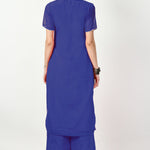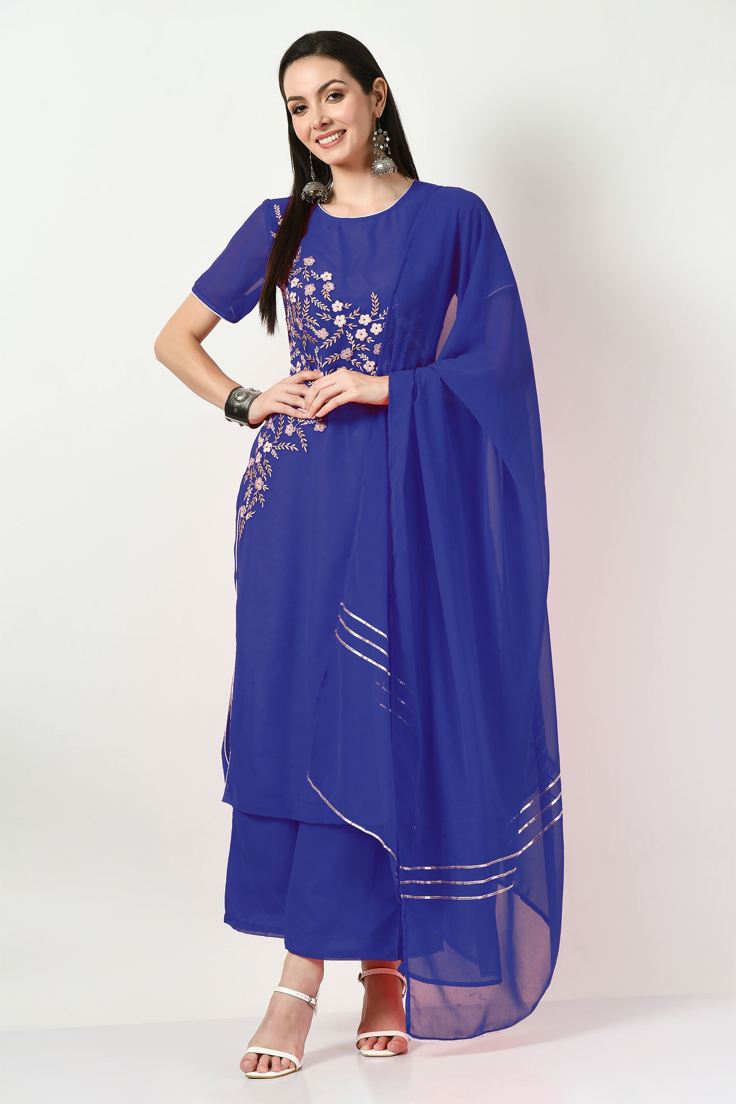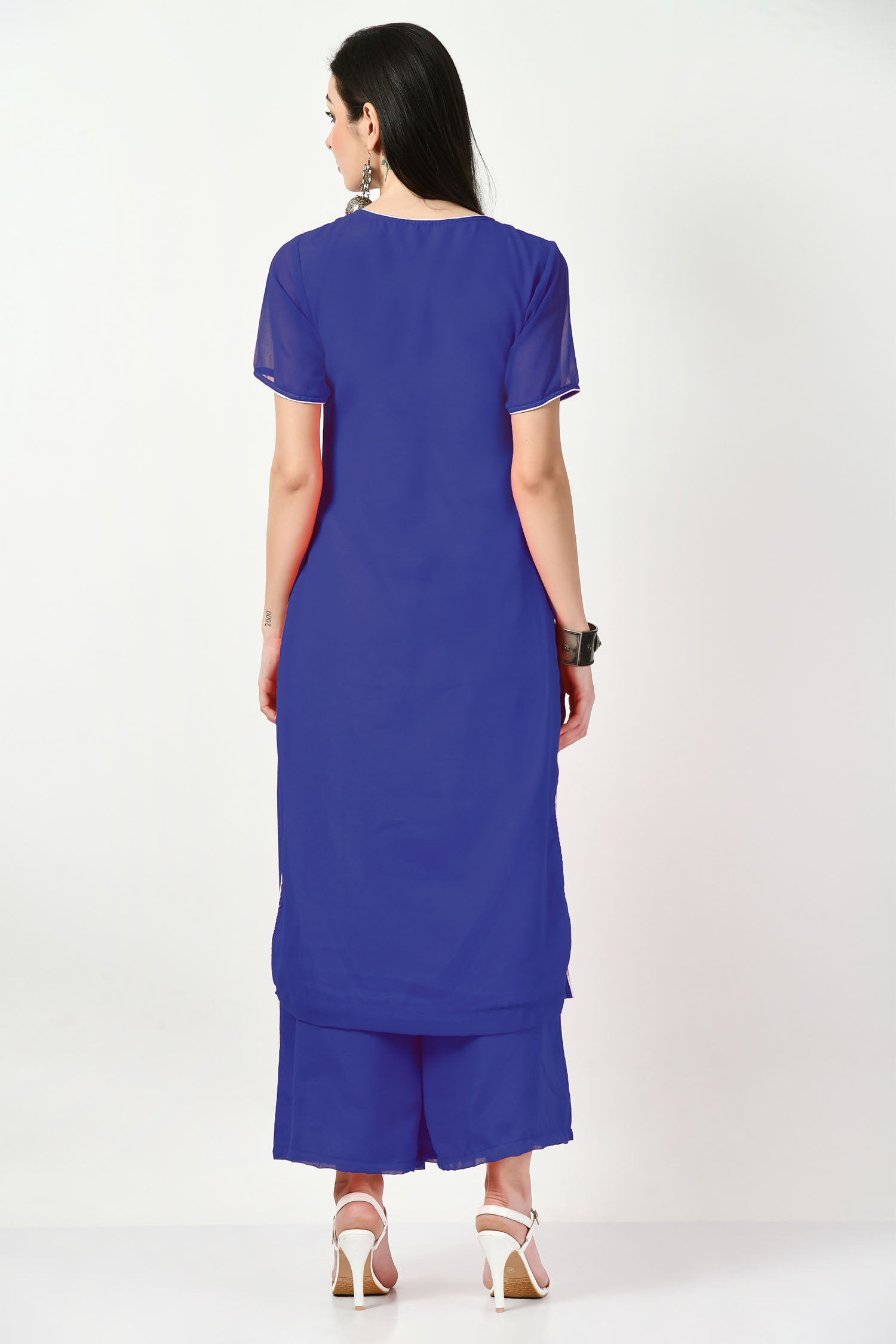 Royal Blue Georgette Floral Embroidered Kurti Set