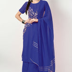 The royal blue georgette floral embroidered kurti with palazzo and dupatta for a neat and elegant look that combines trendy comfort with tradition in a classy appearance.