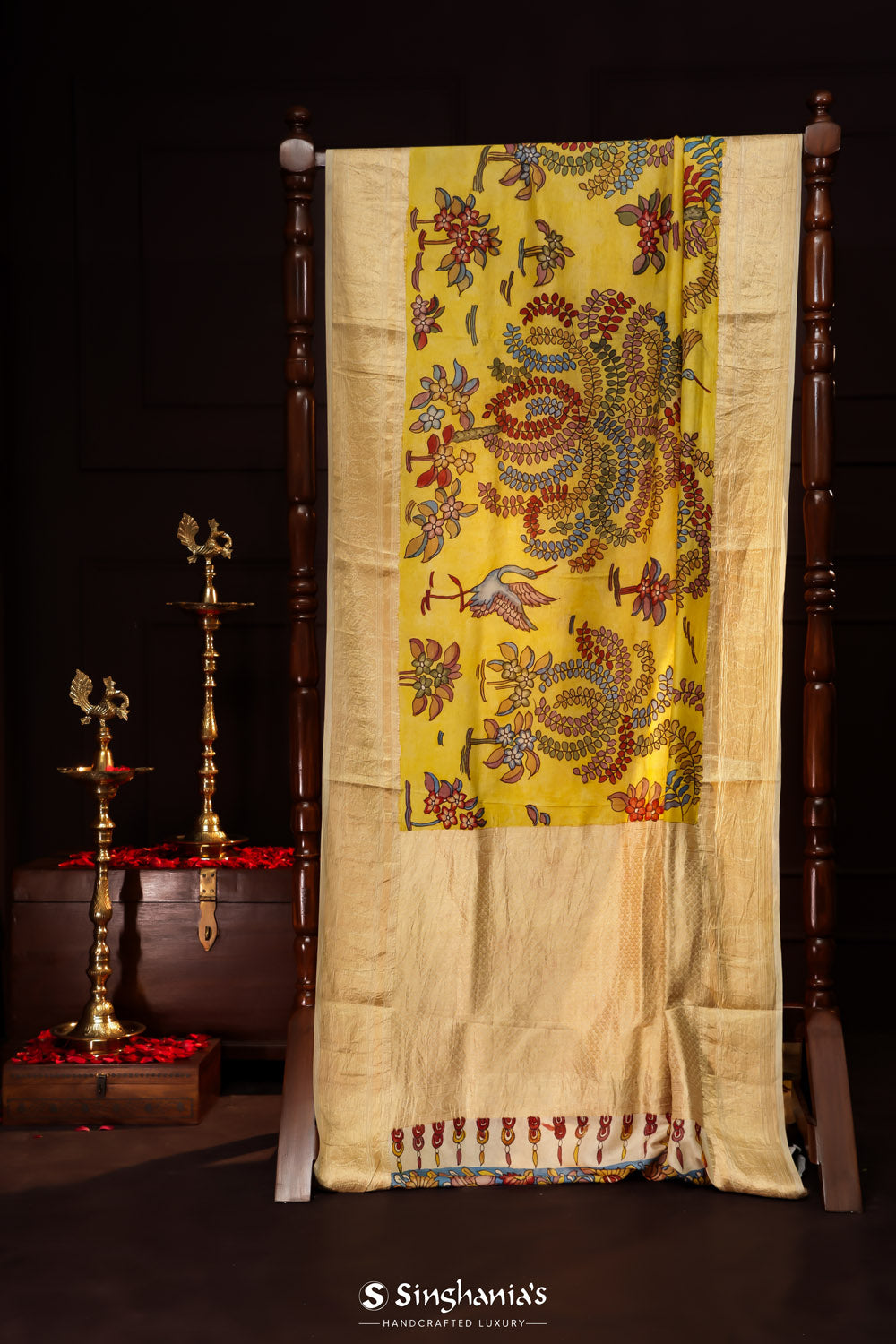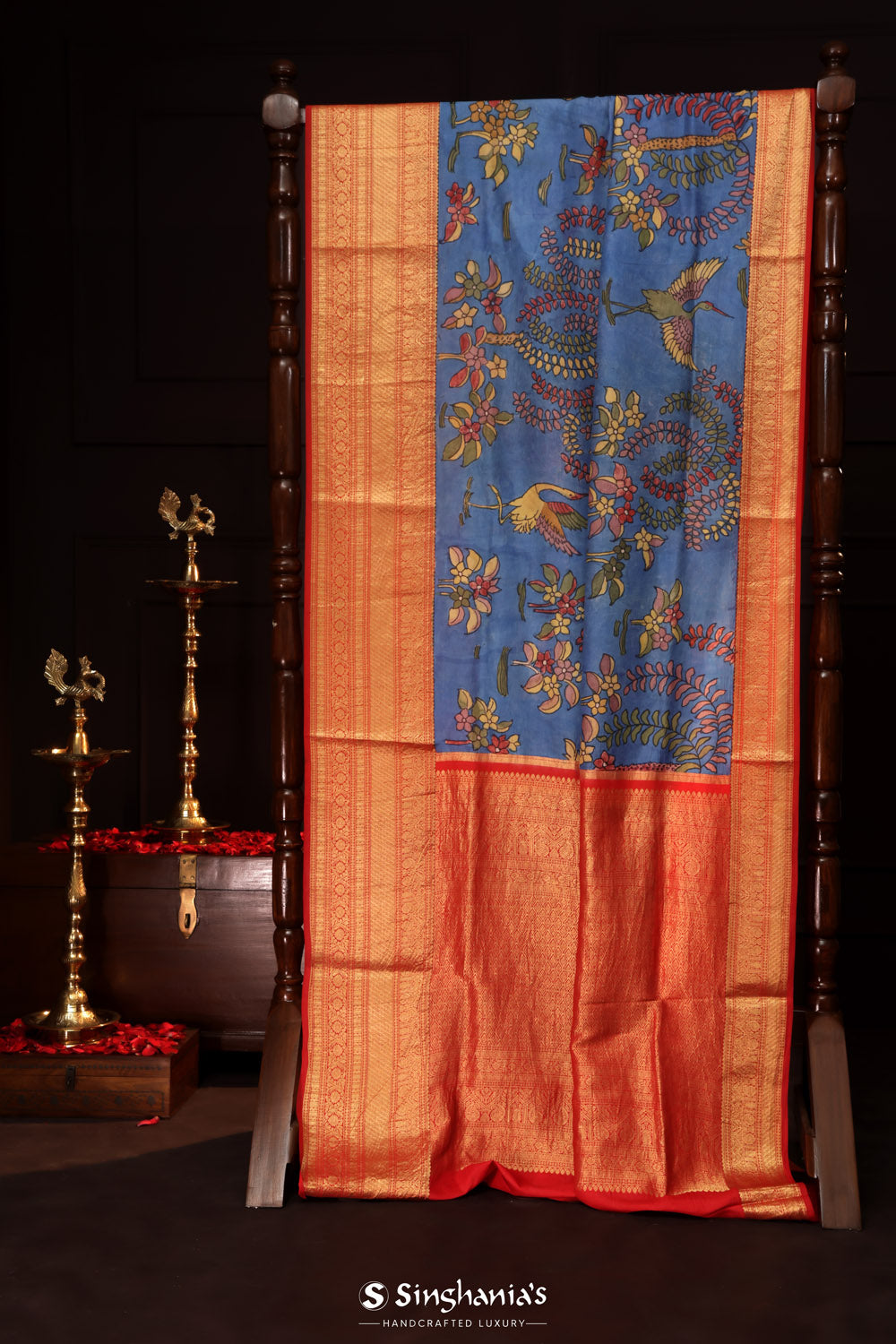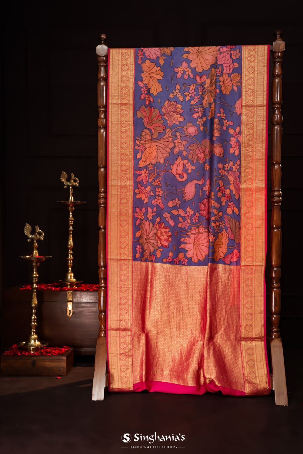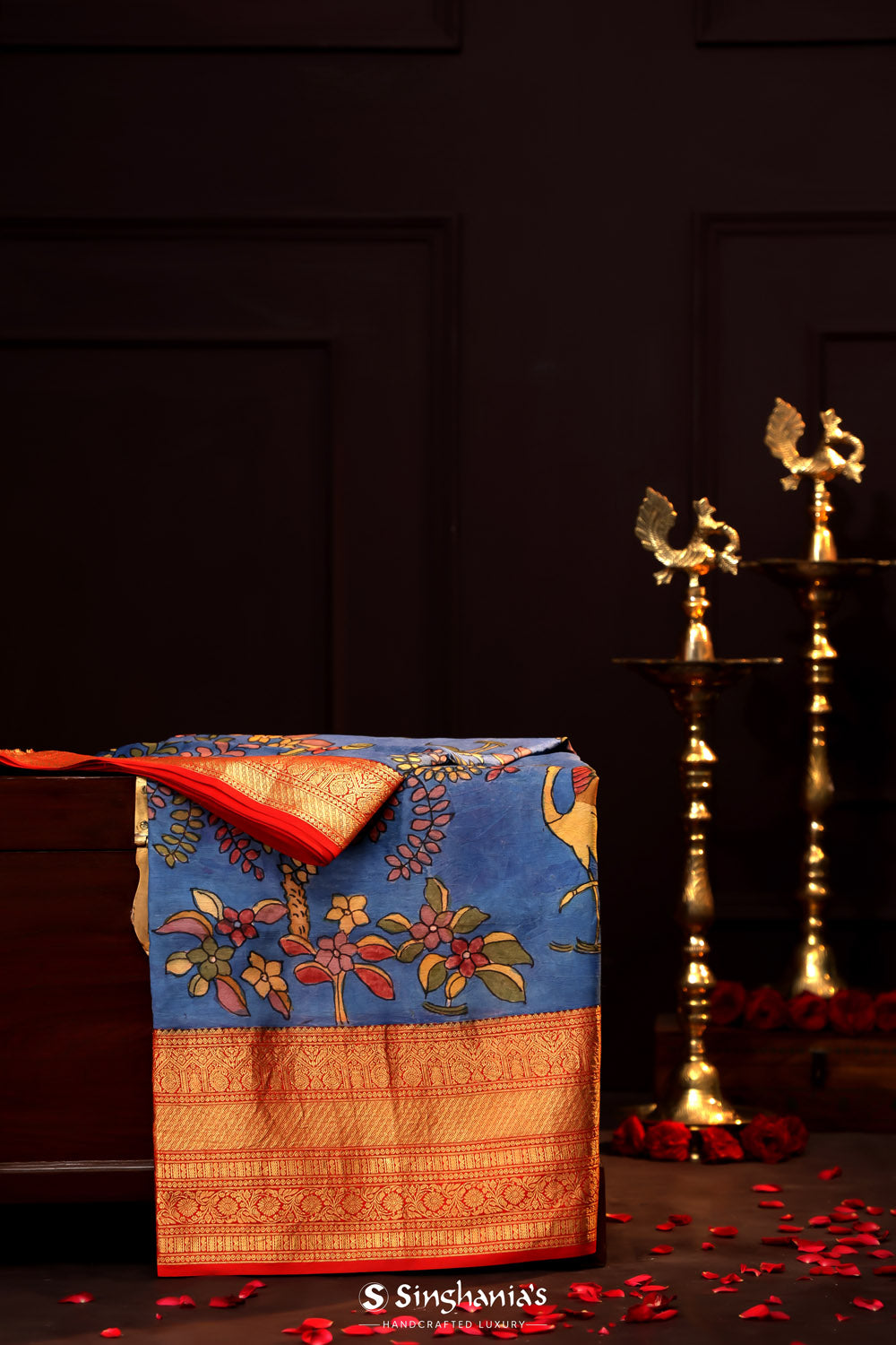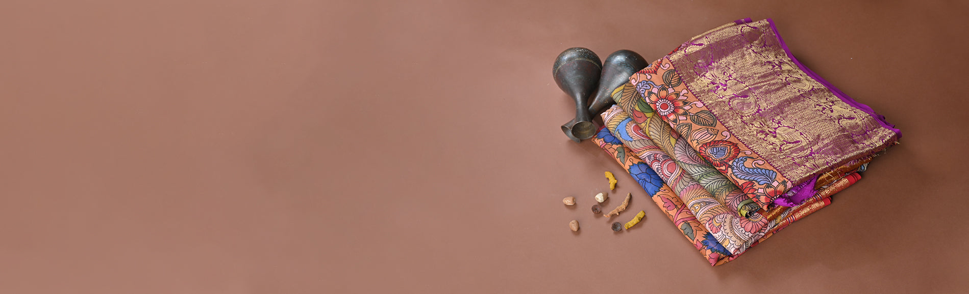 Kalamkari silk sarees are a marvel of traditional Indian textile artistry, showcasing exquisite designs and vibrant colours that will capture the imagination of anyone who lays eyes on them. Kalam translates to "pen", and Kaari signifies "craftsmanship". When the two combine, the result is a masterpiece of heritage and elegance. Each saree, handcrafted by skilled artisans using natural dyes and intricate hand-painting techniques, is a masterpiece passed down through generations.