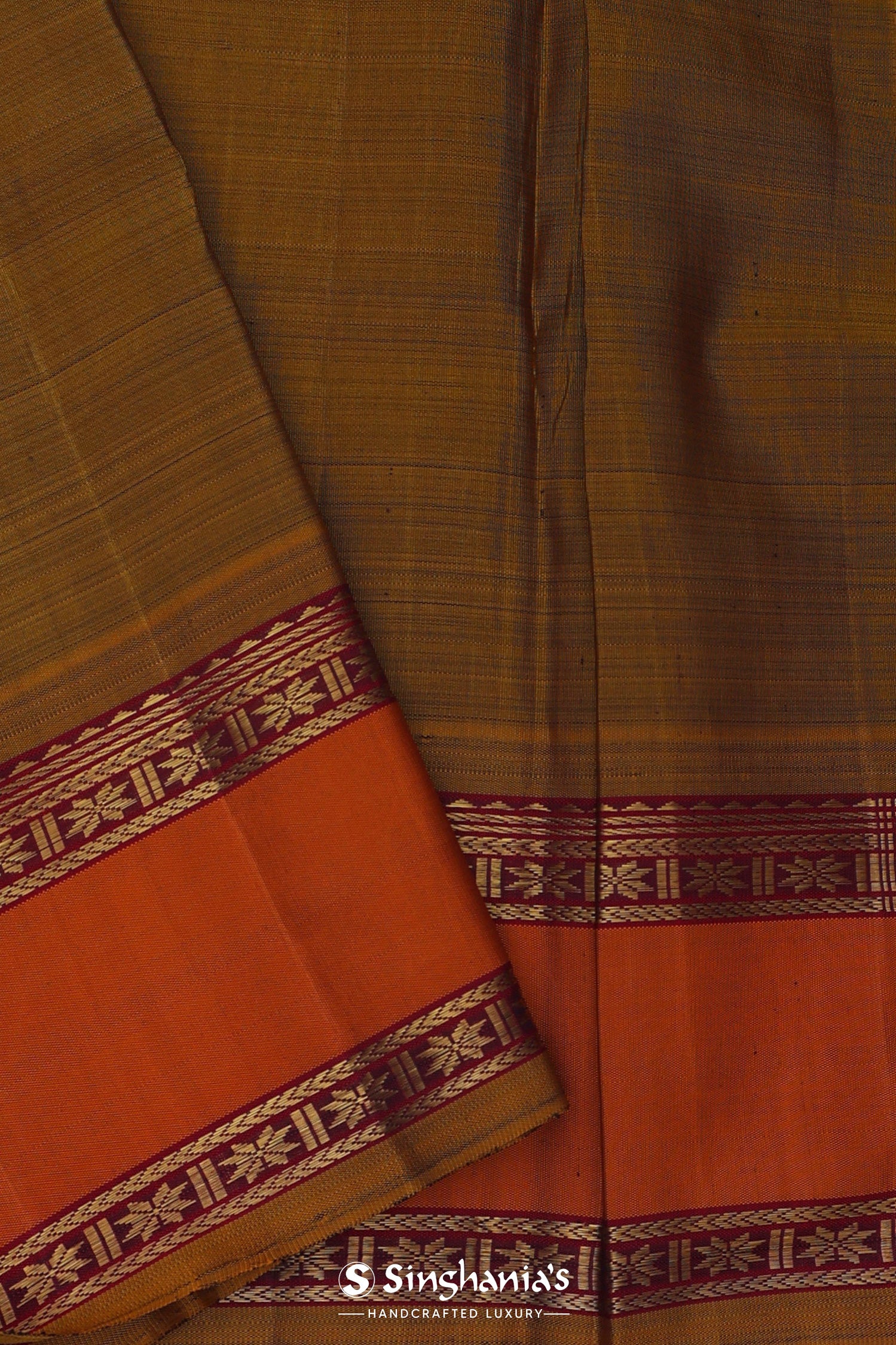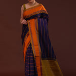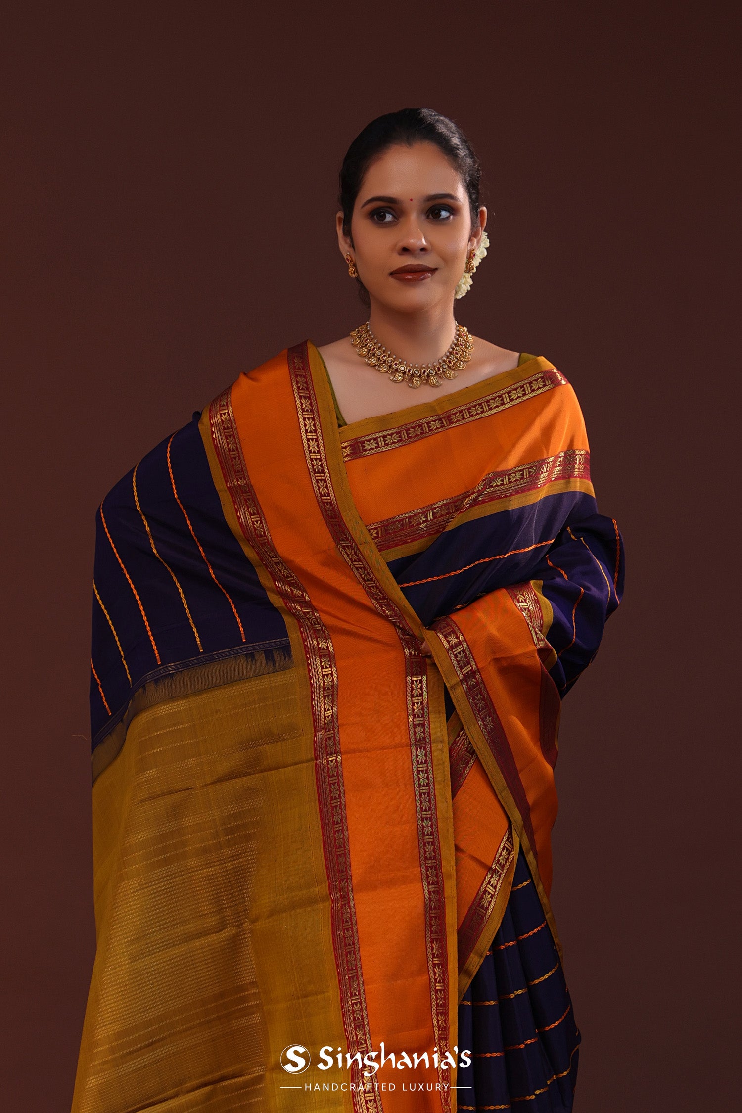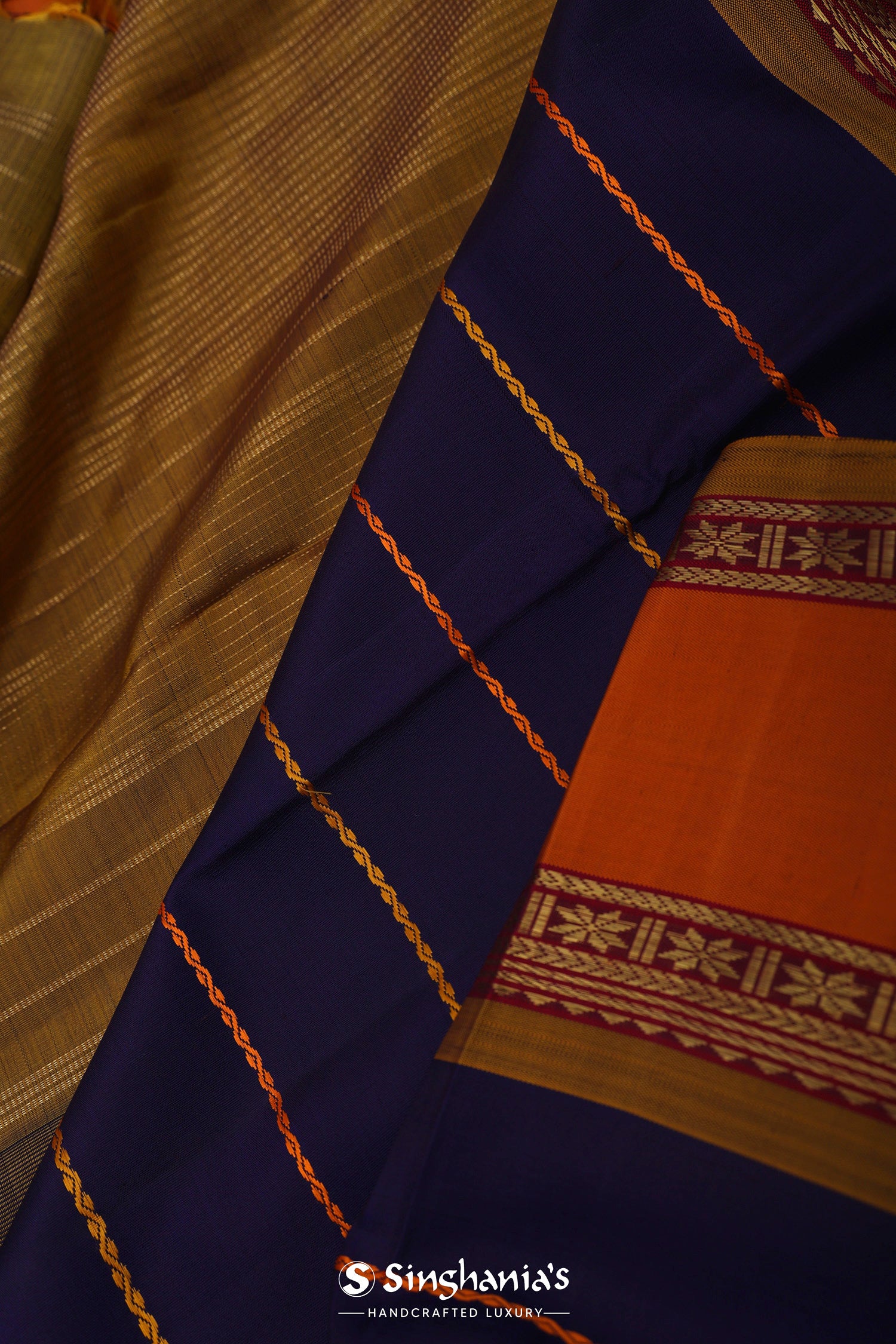 Deep Violet Kanjivaram Silk Saree With Horizontal Stripes