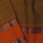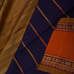 The horizontal stripes with space spread all across the body of this lightweight Deep violet kanjivaram silk saree complemented with contrast border and unstitched blouse