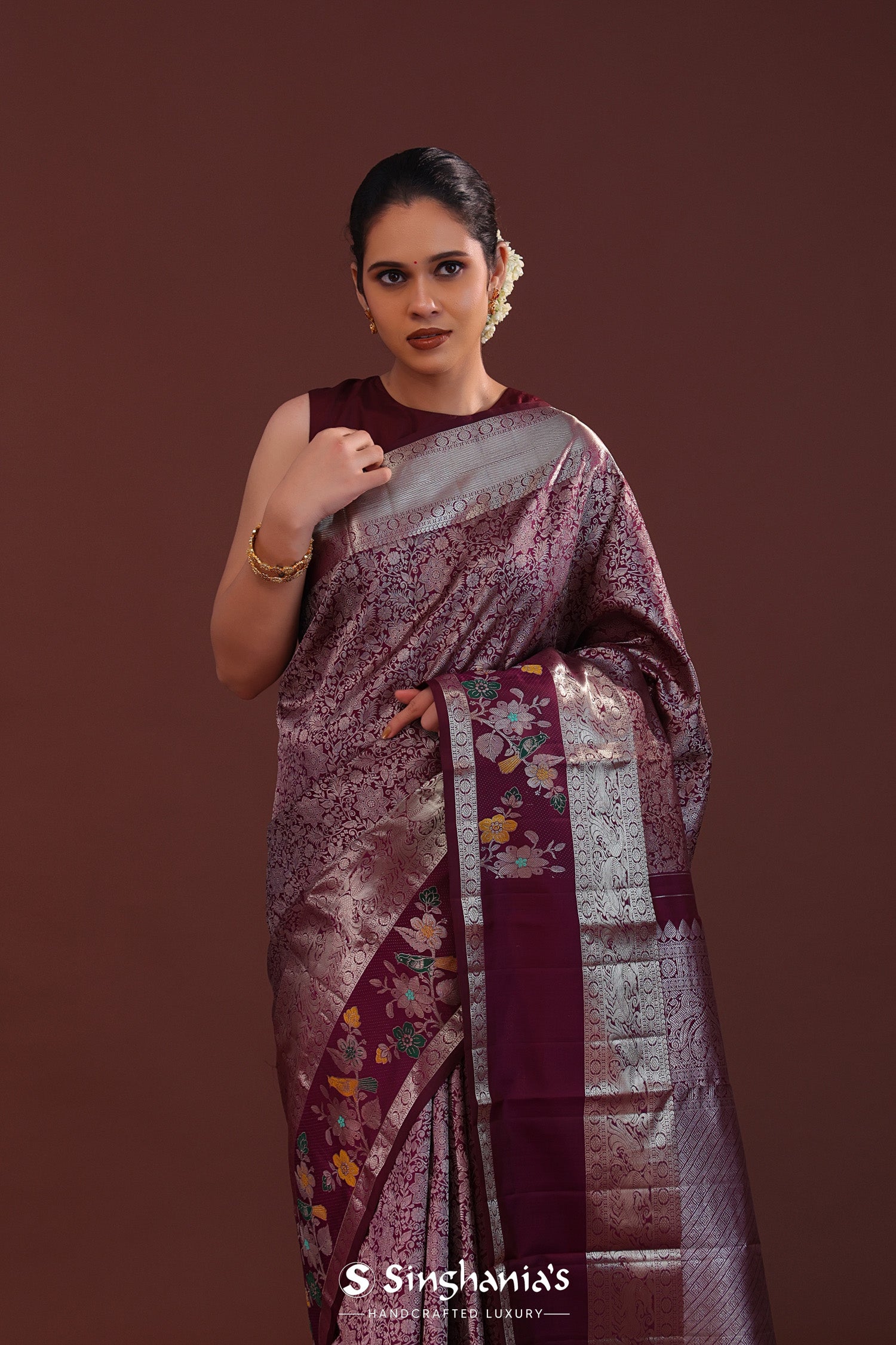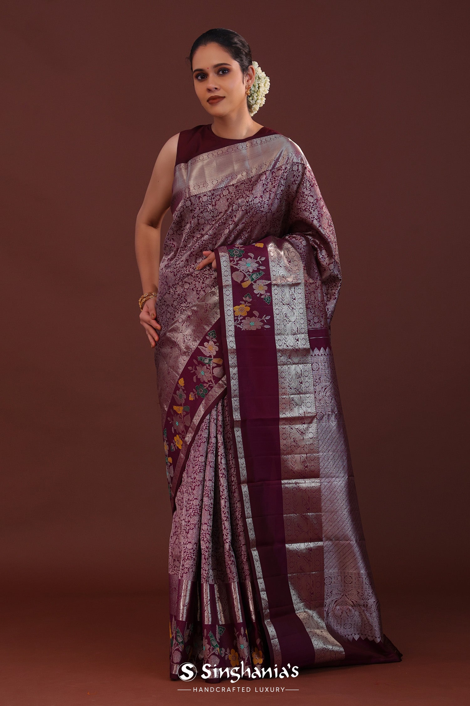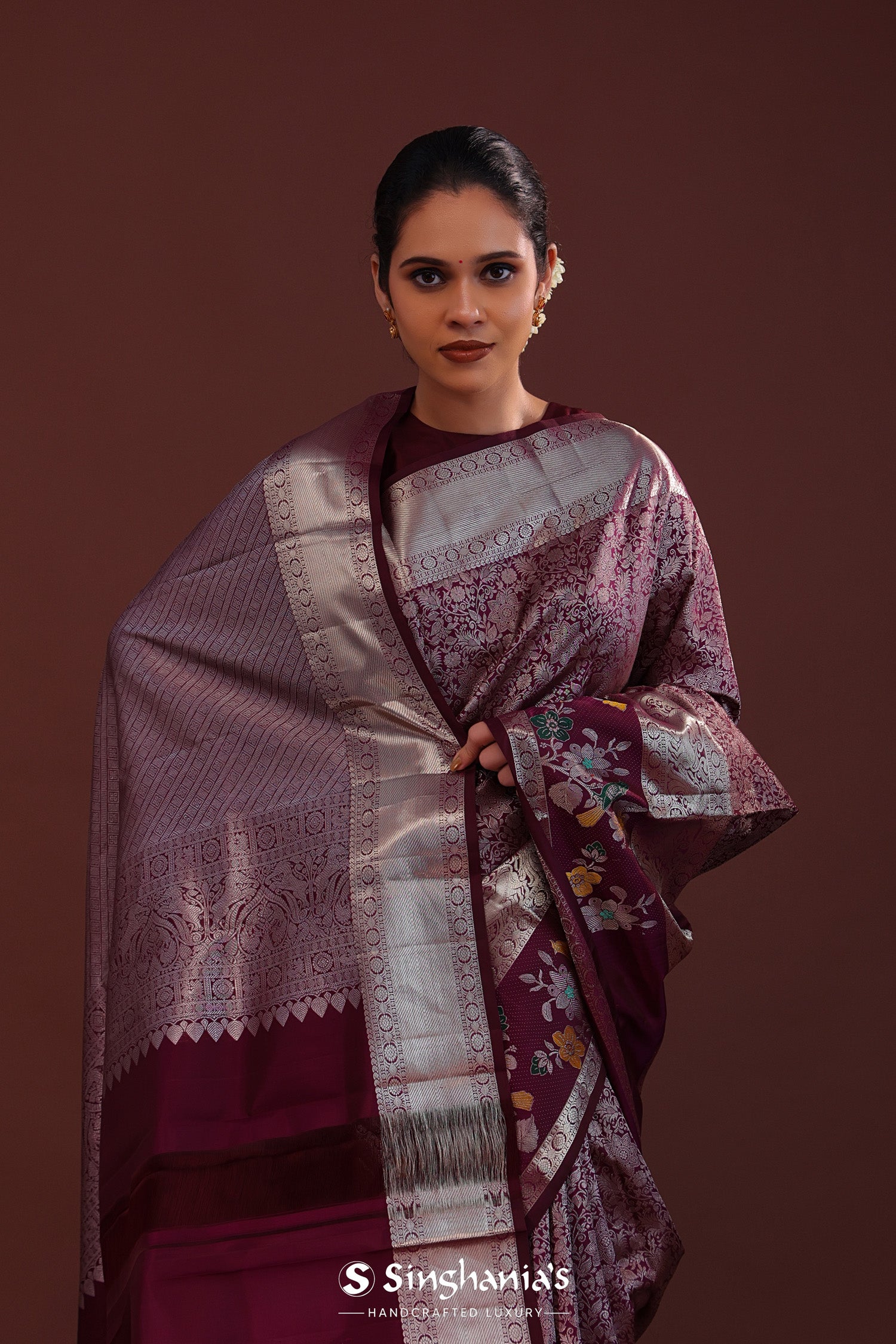 Gondola Magenta Red Kanjivaram Silk Saree With Floral Jaal