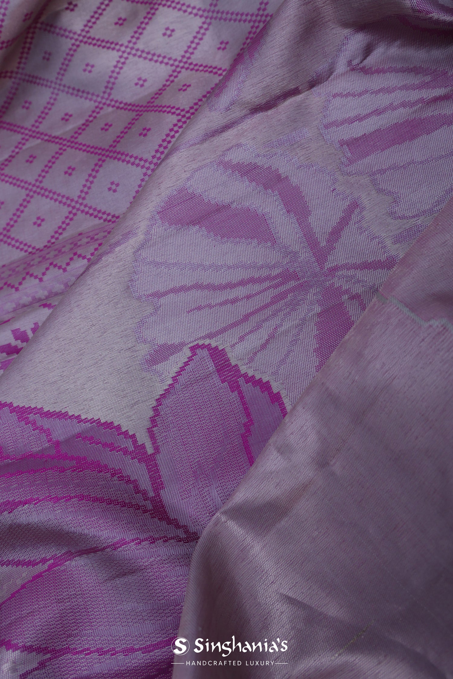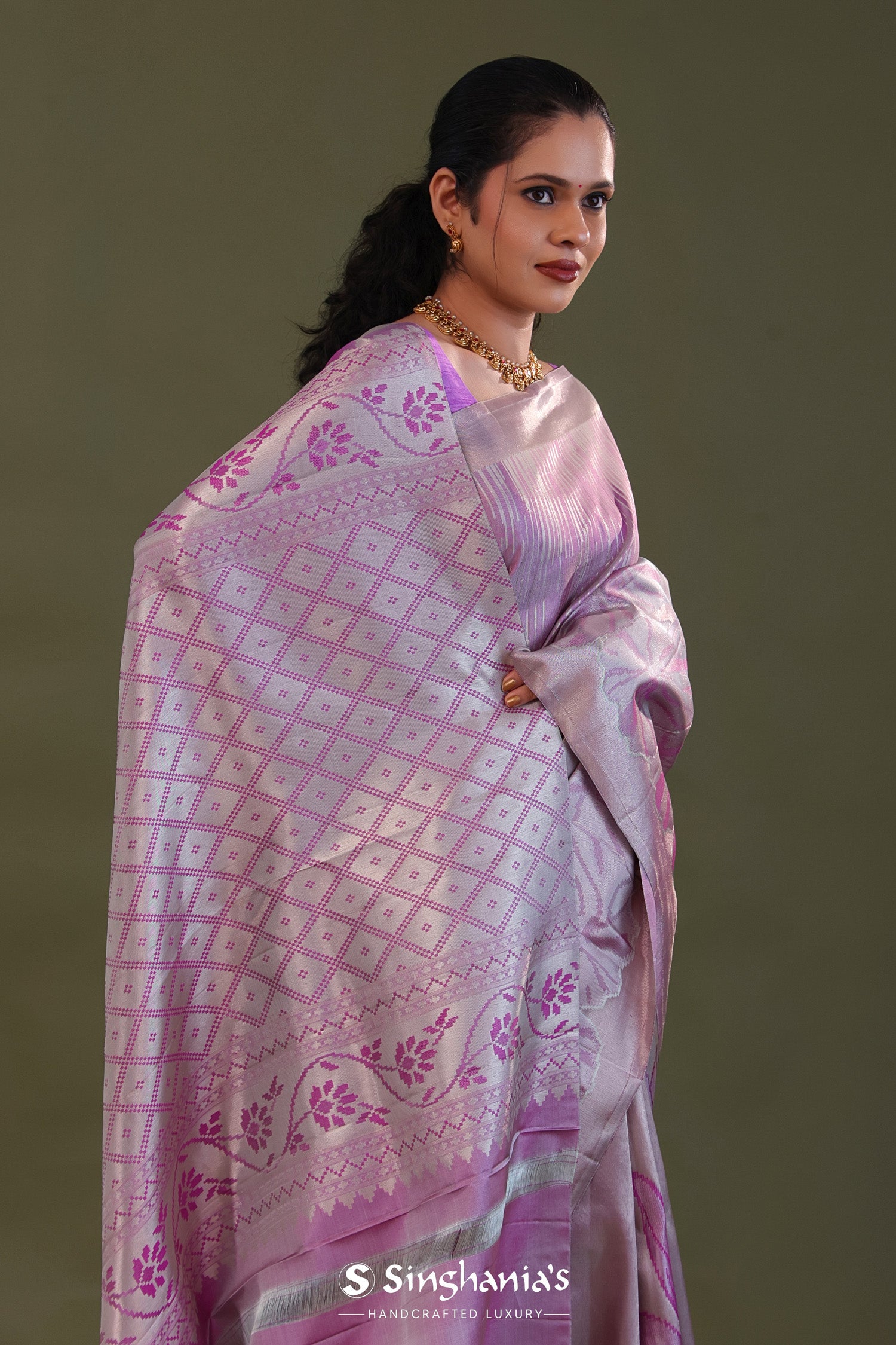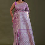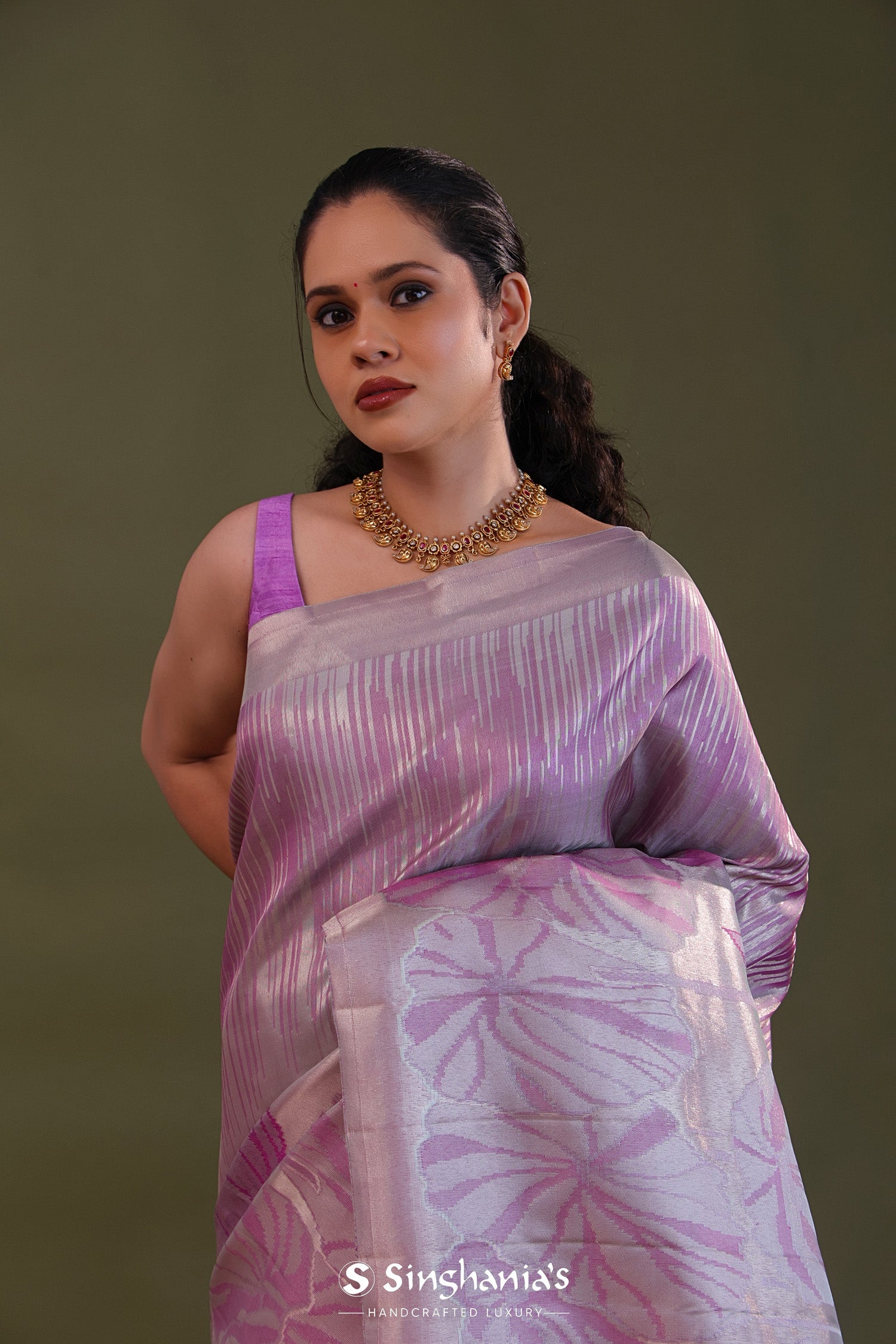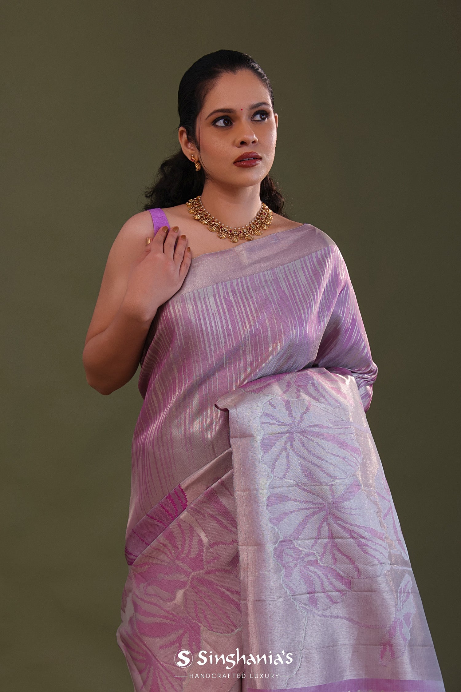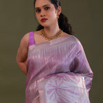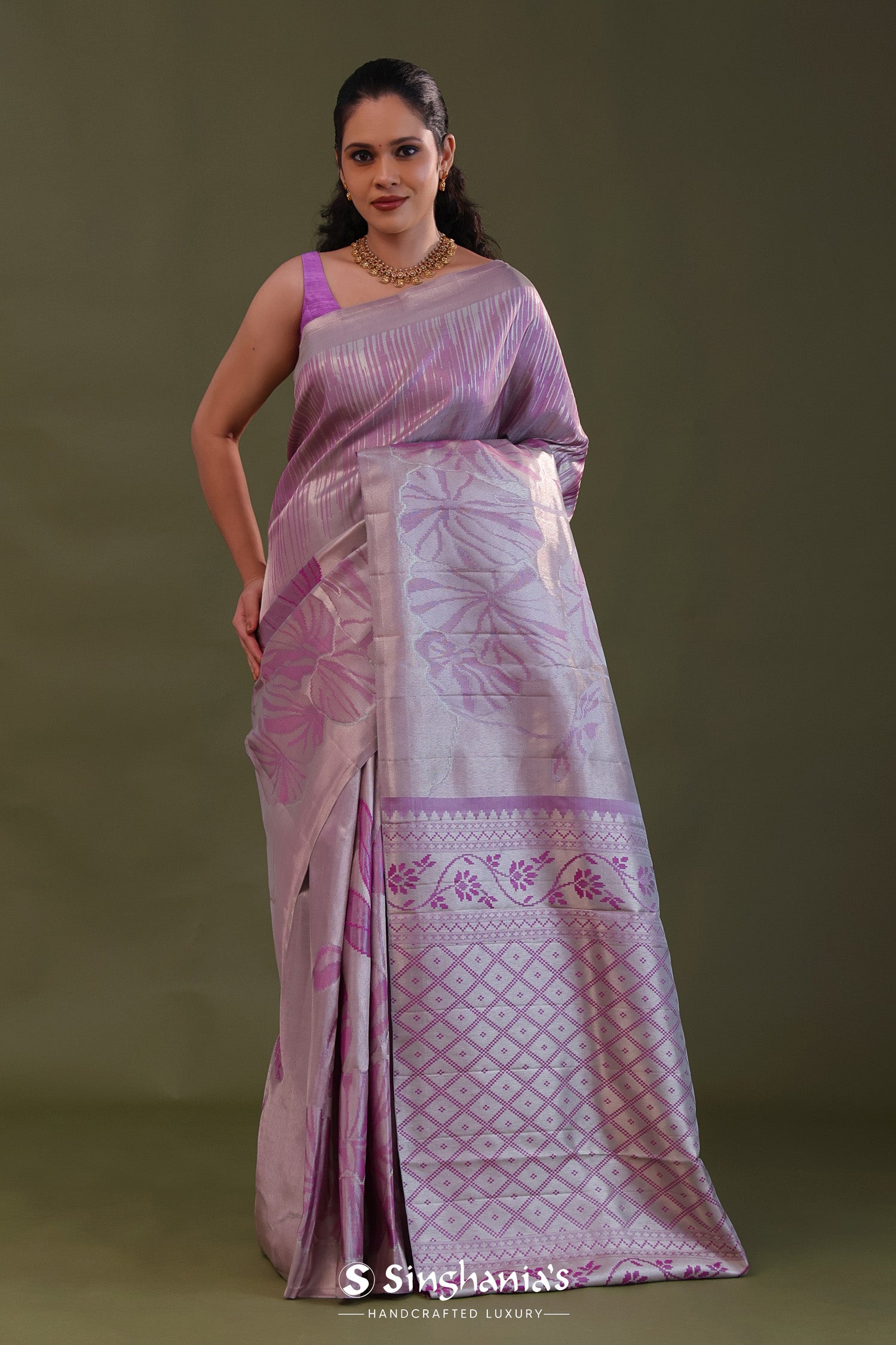 The blend of floral and abstract design woven on the body of Lilac kanjivaram tissue designer saree complemented with unstitched blouse