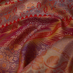 The floral meenakari design woven with gold zari diagonally on Multi-color kanjivaram tissue saree complemented with meenakari floral border and unstitched blouse