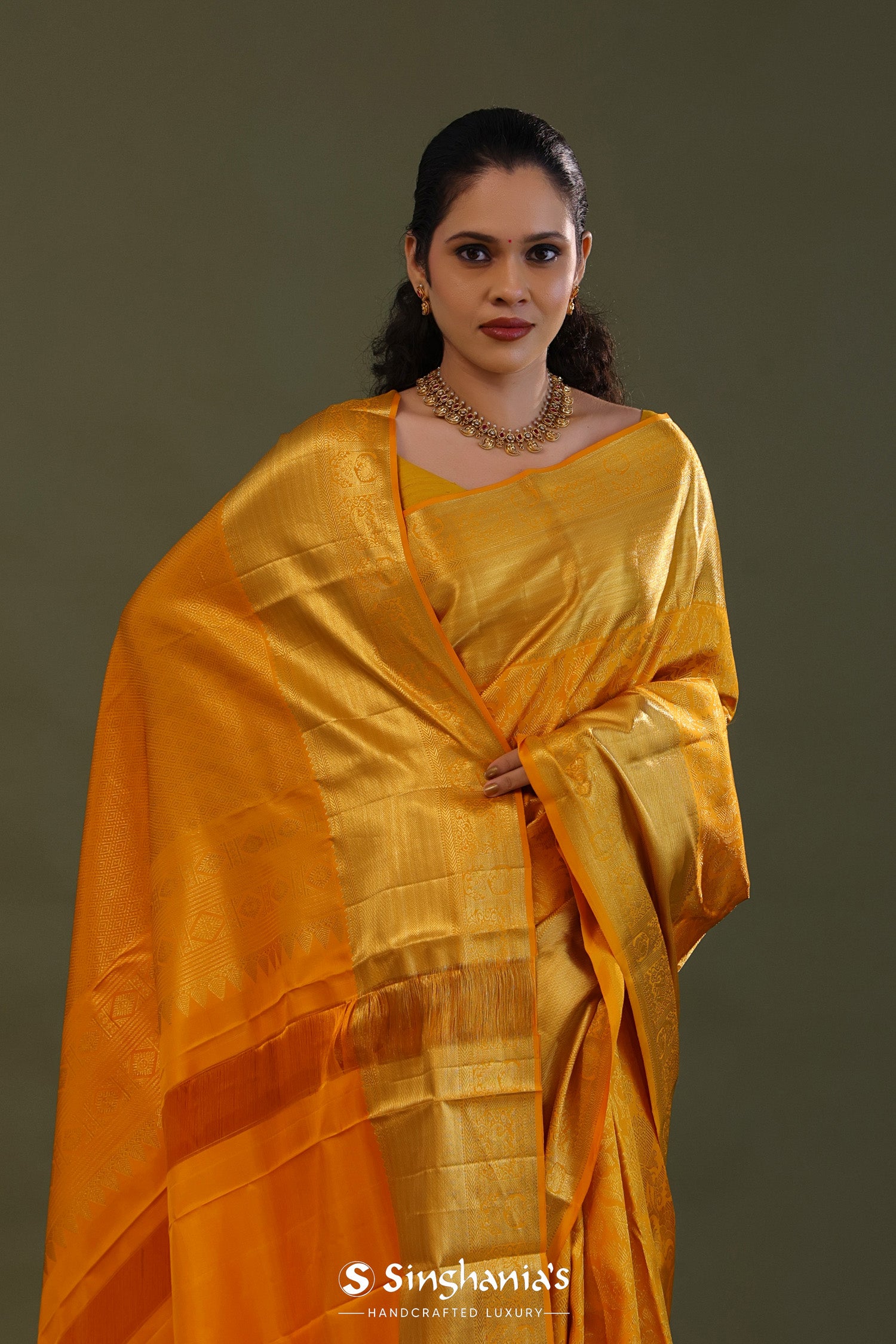 Ochre Yellow Kanjivaram Silk Saree With Brocade