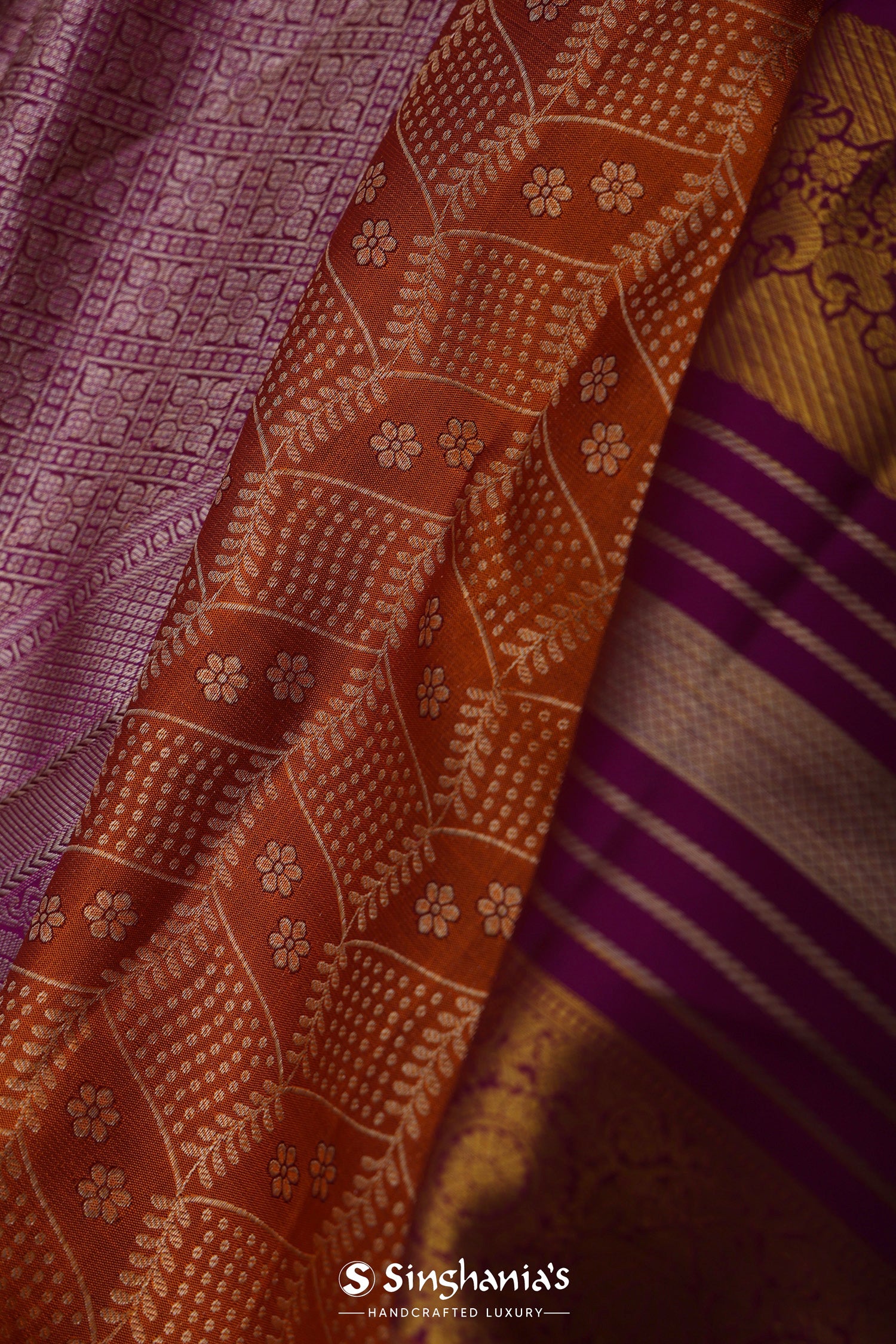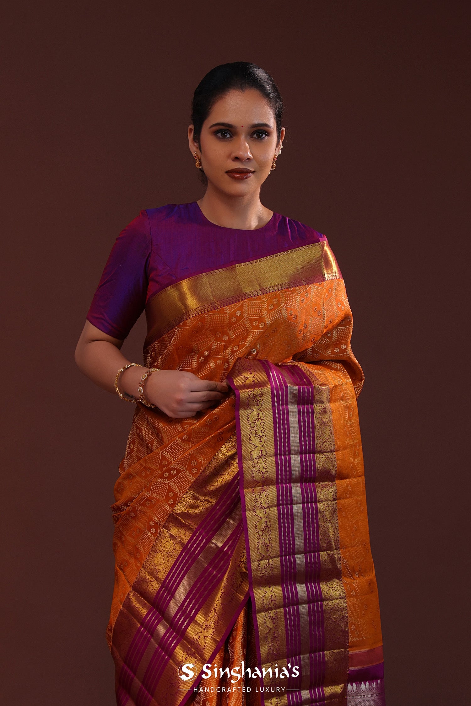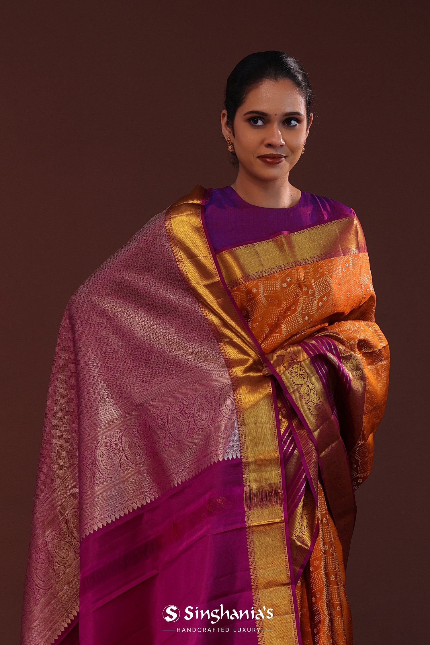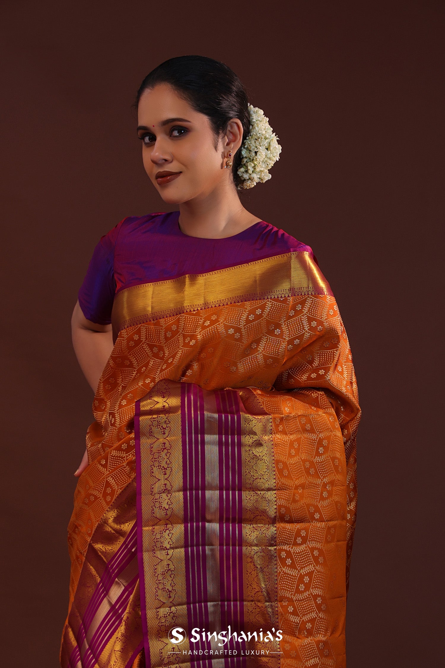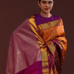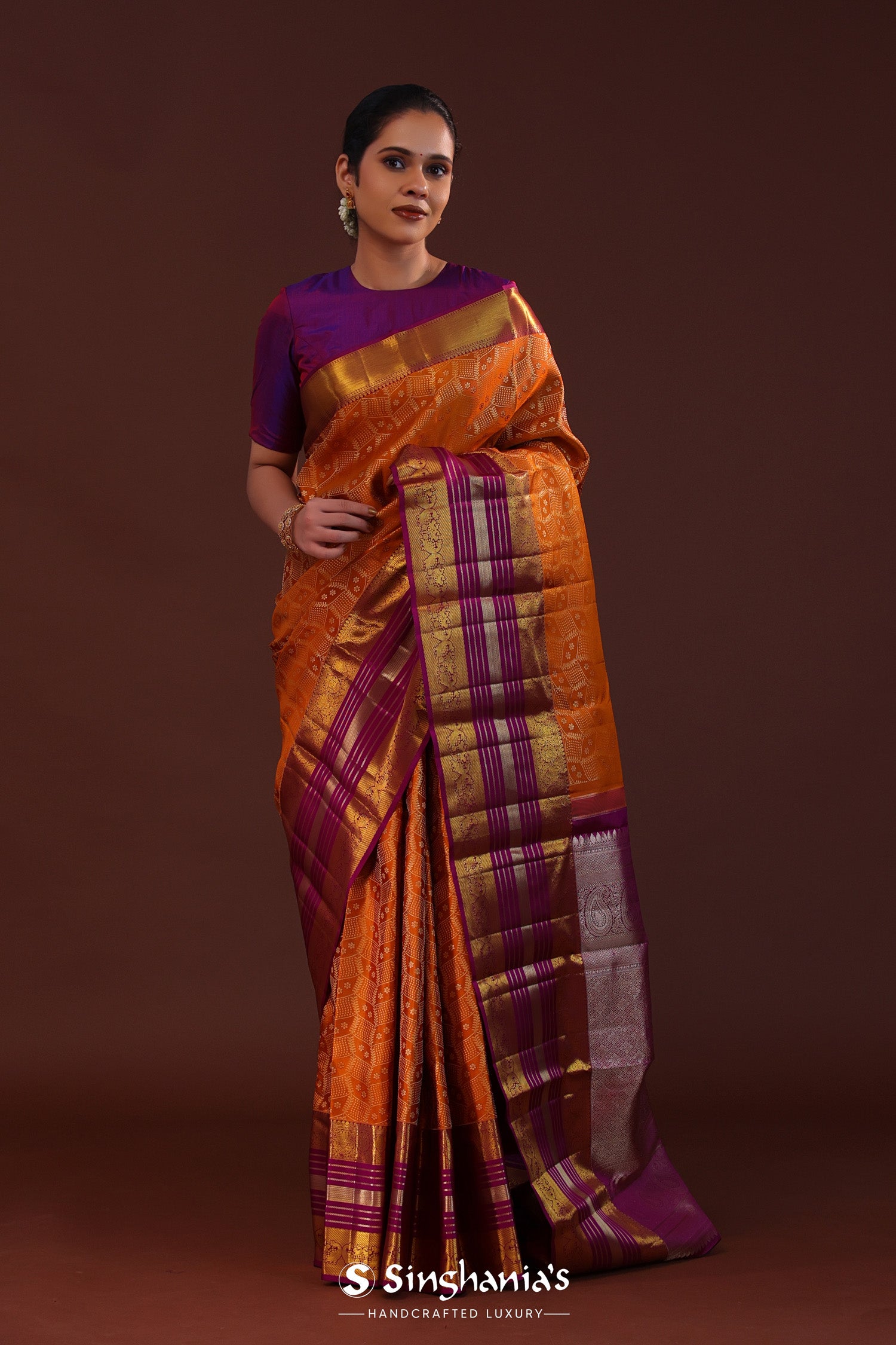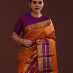 Orange Copper Kanjivaram Silk Saree With Contrast Border