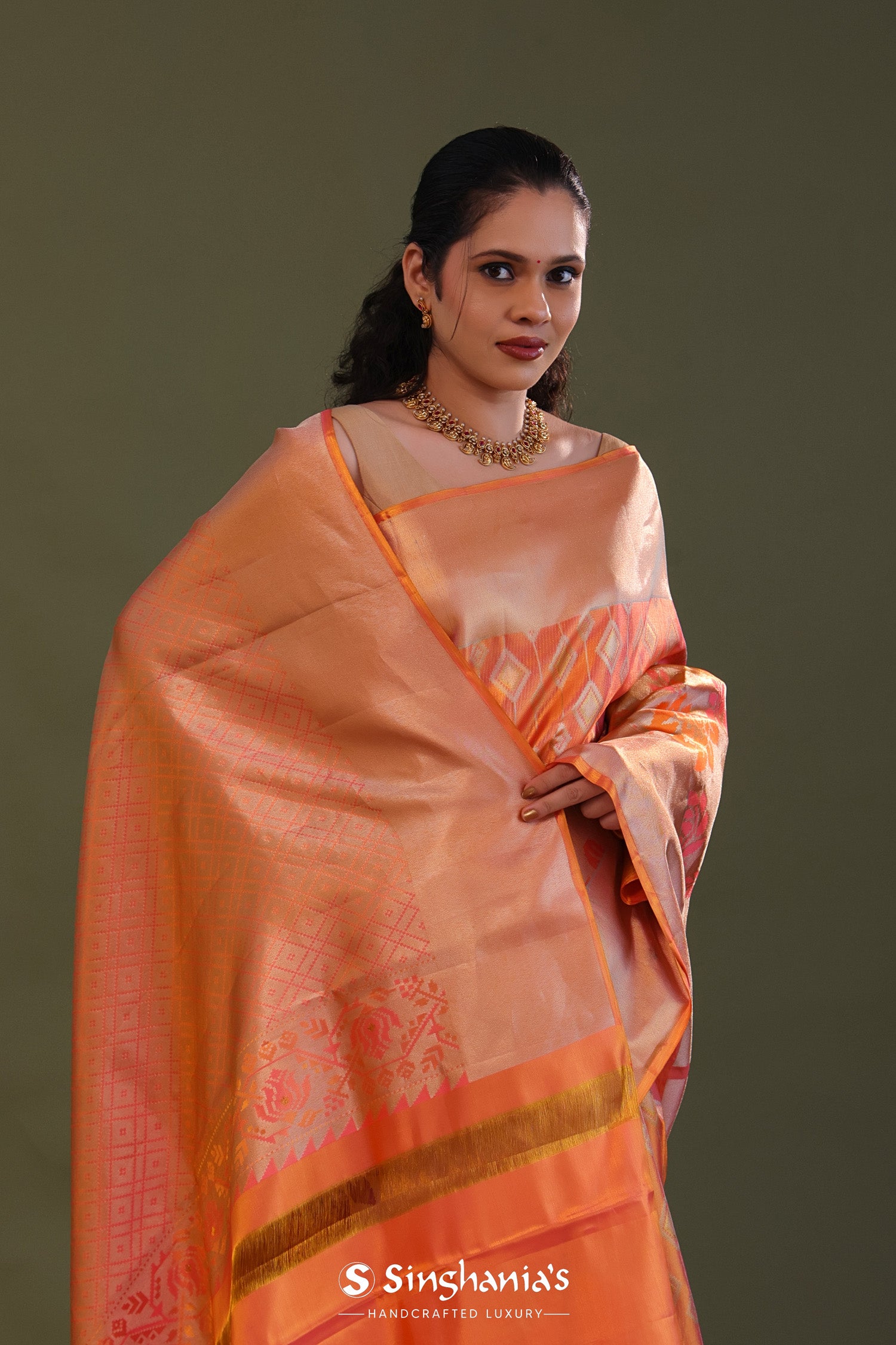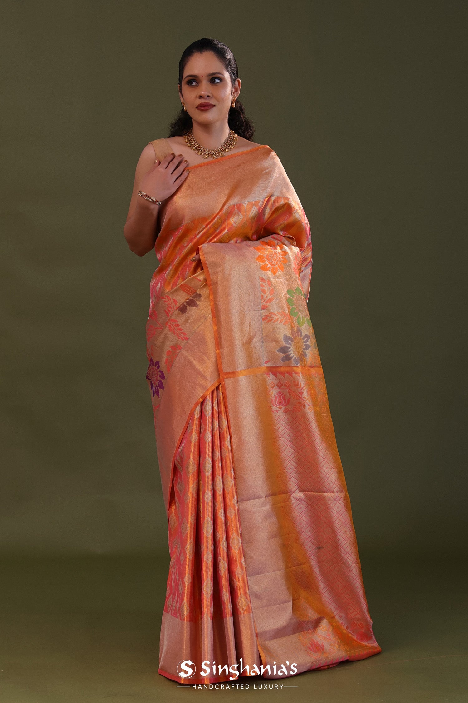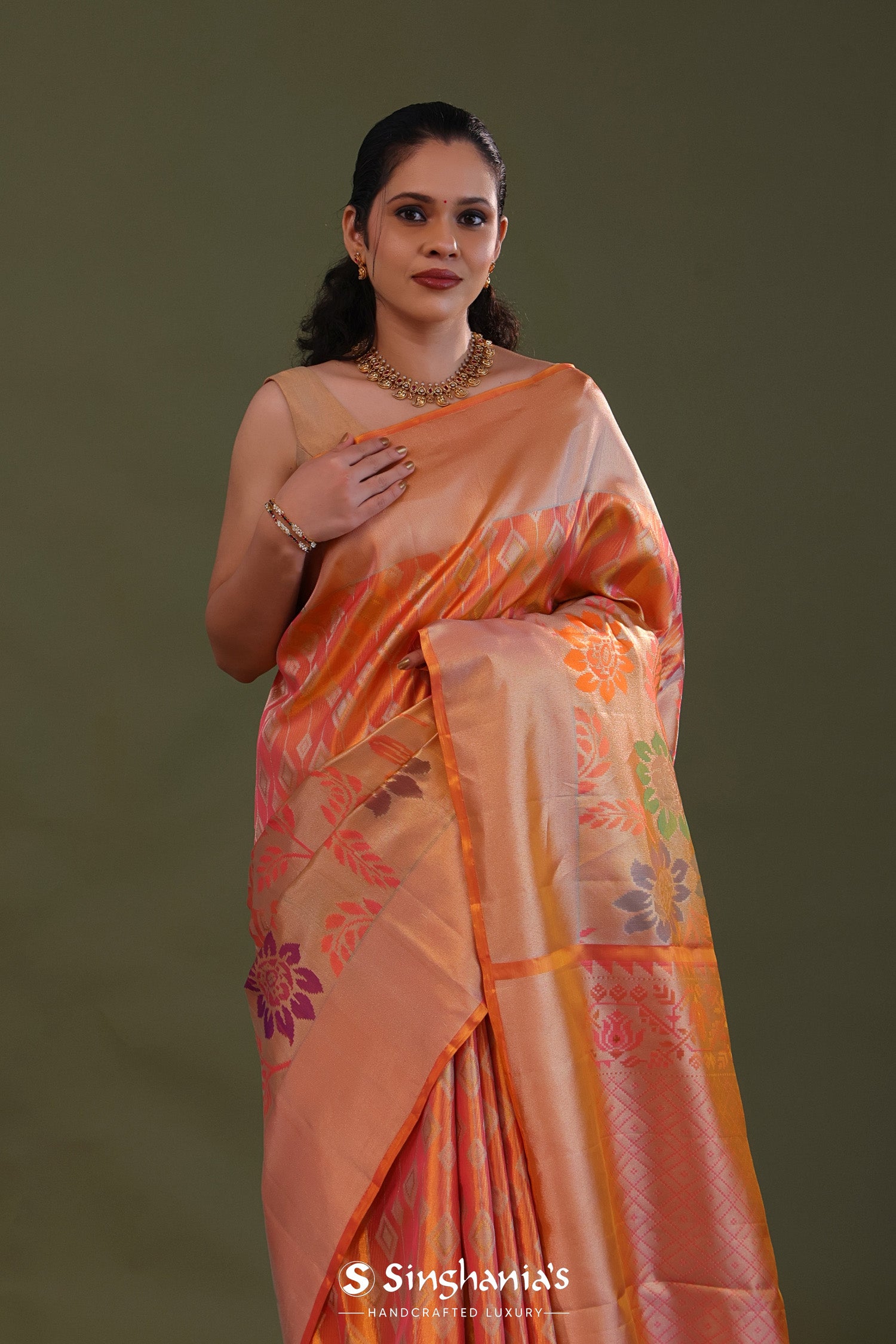 Orange Kanjivaram Tissue Saree With Meenakari Design
