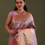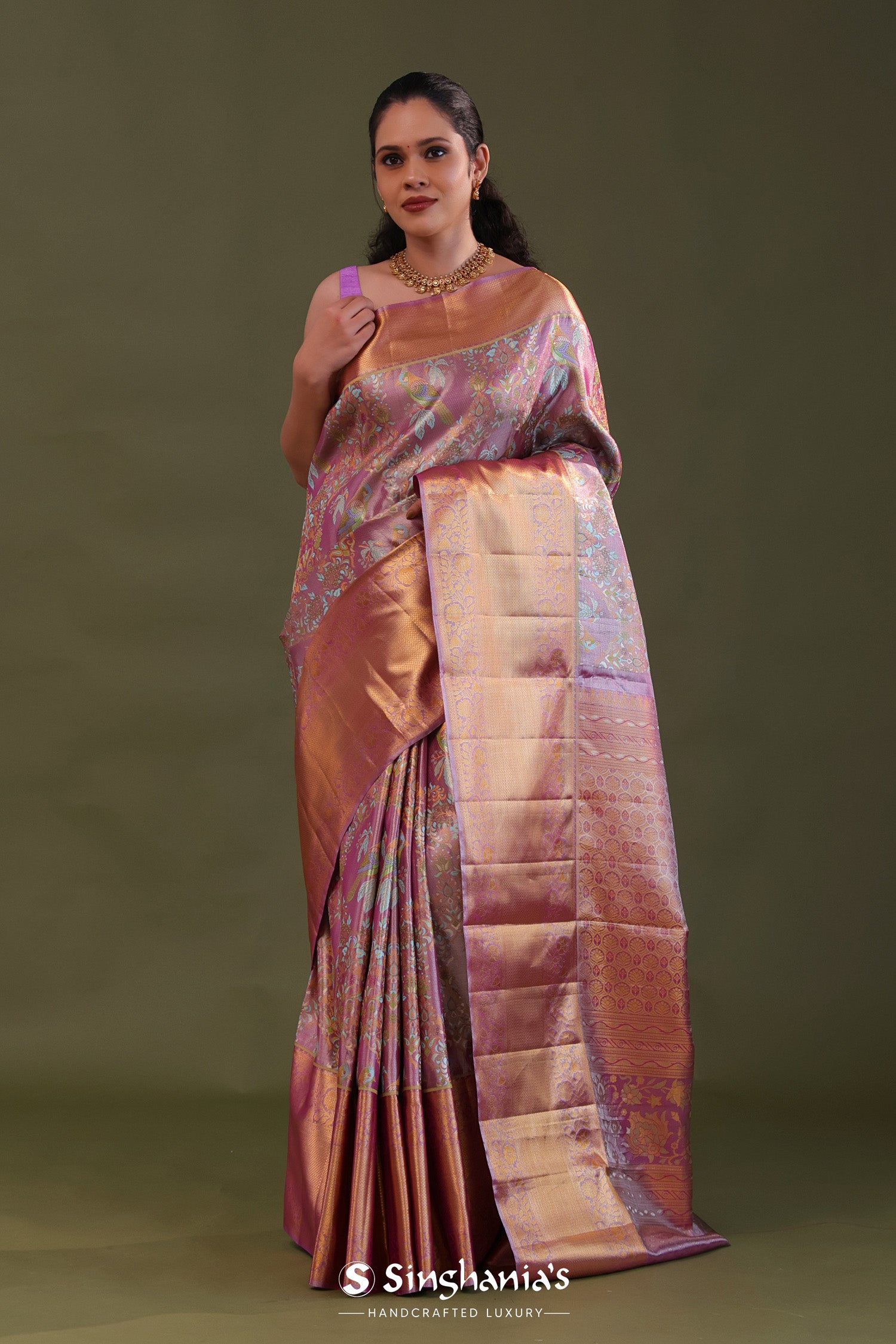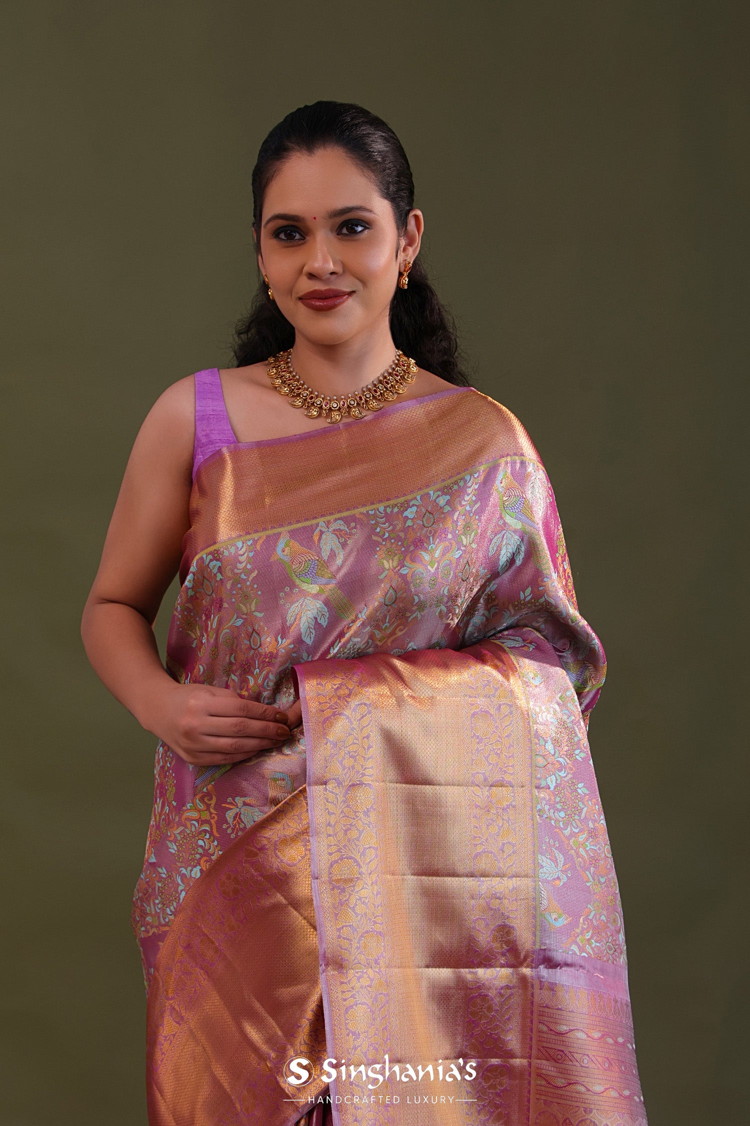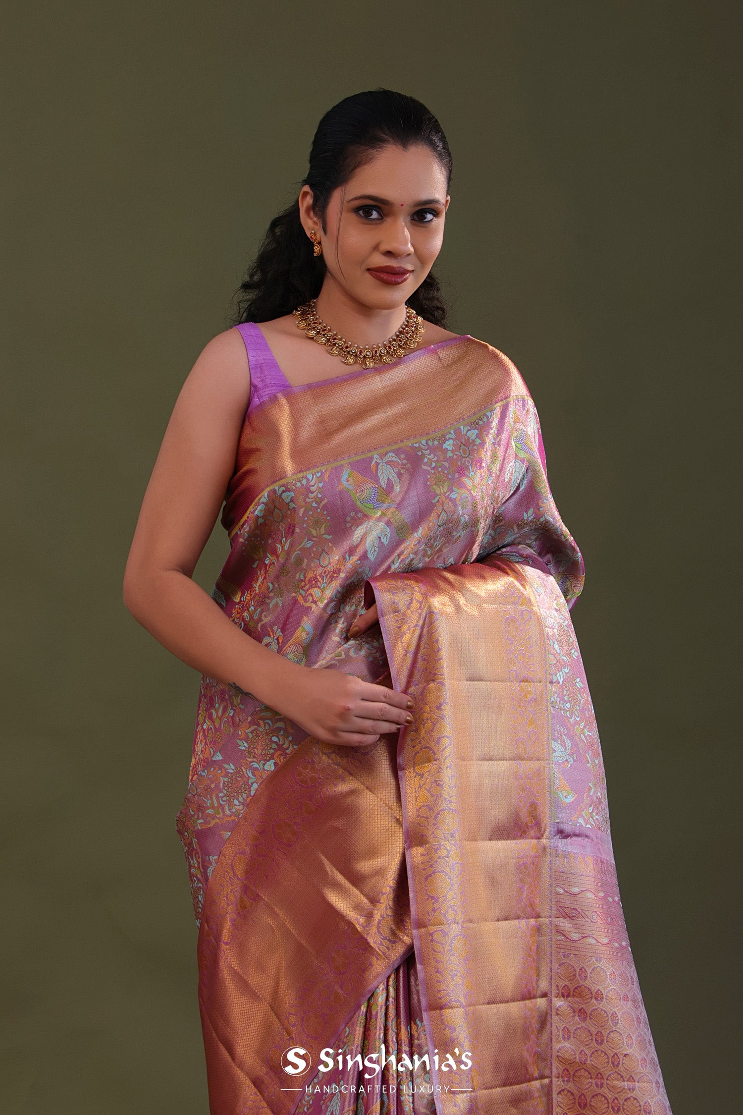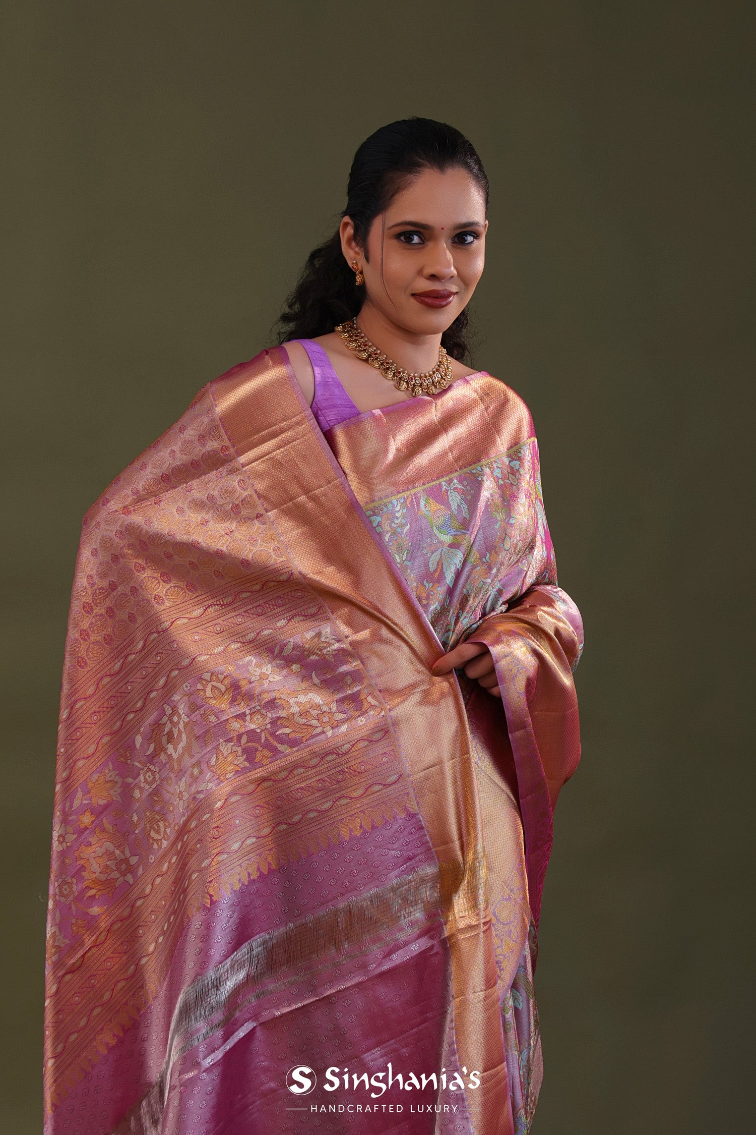 Persian Pink Kanjivaram Tissue Saree With Traditional Border