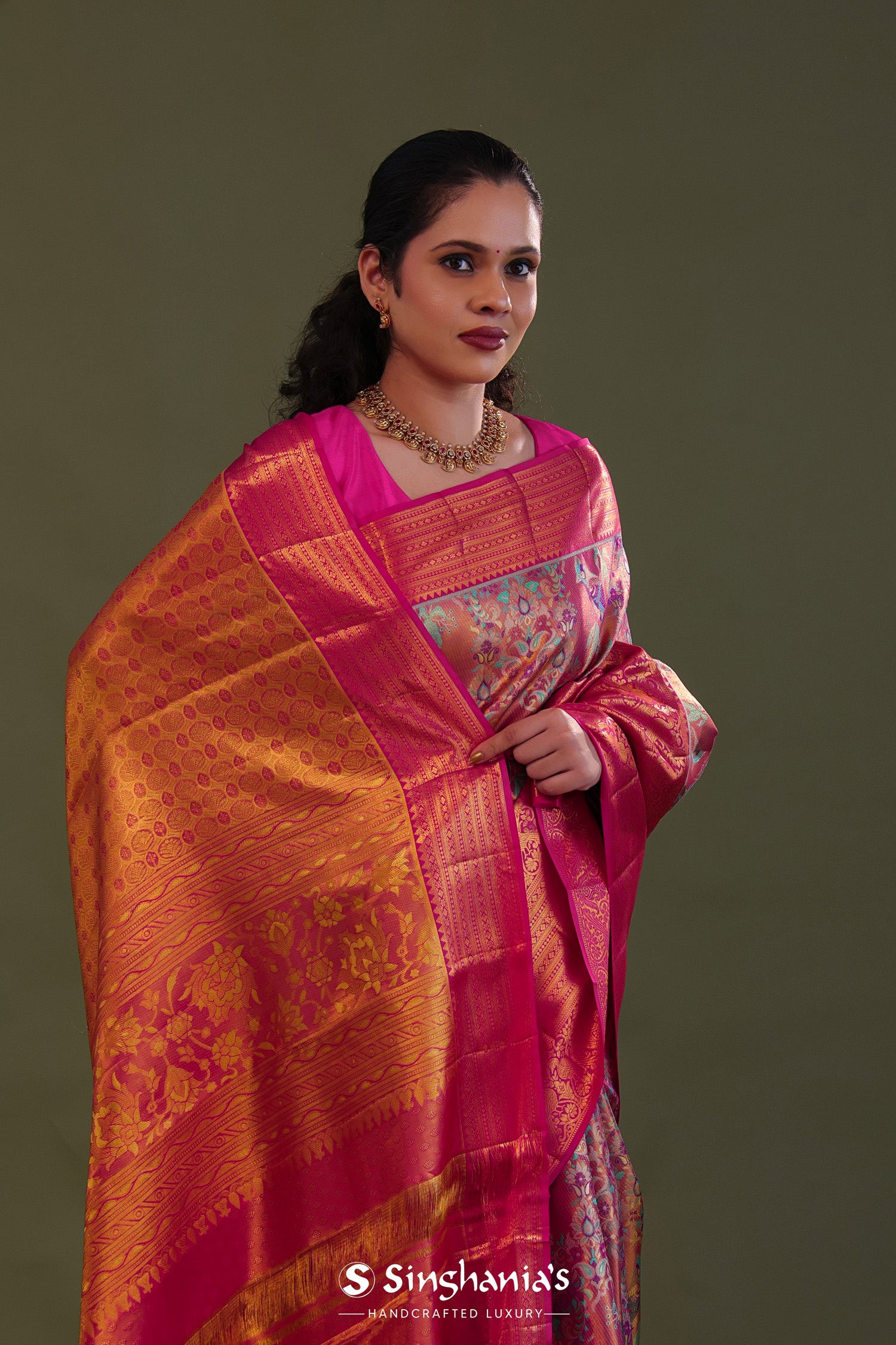 Pink Kanjivaram Tissue Saree With Meenakari Design