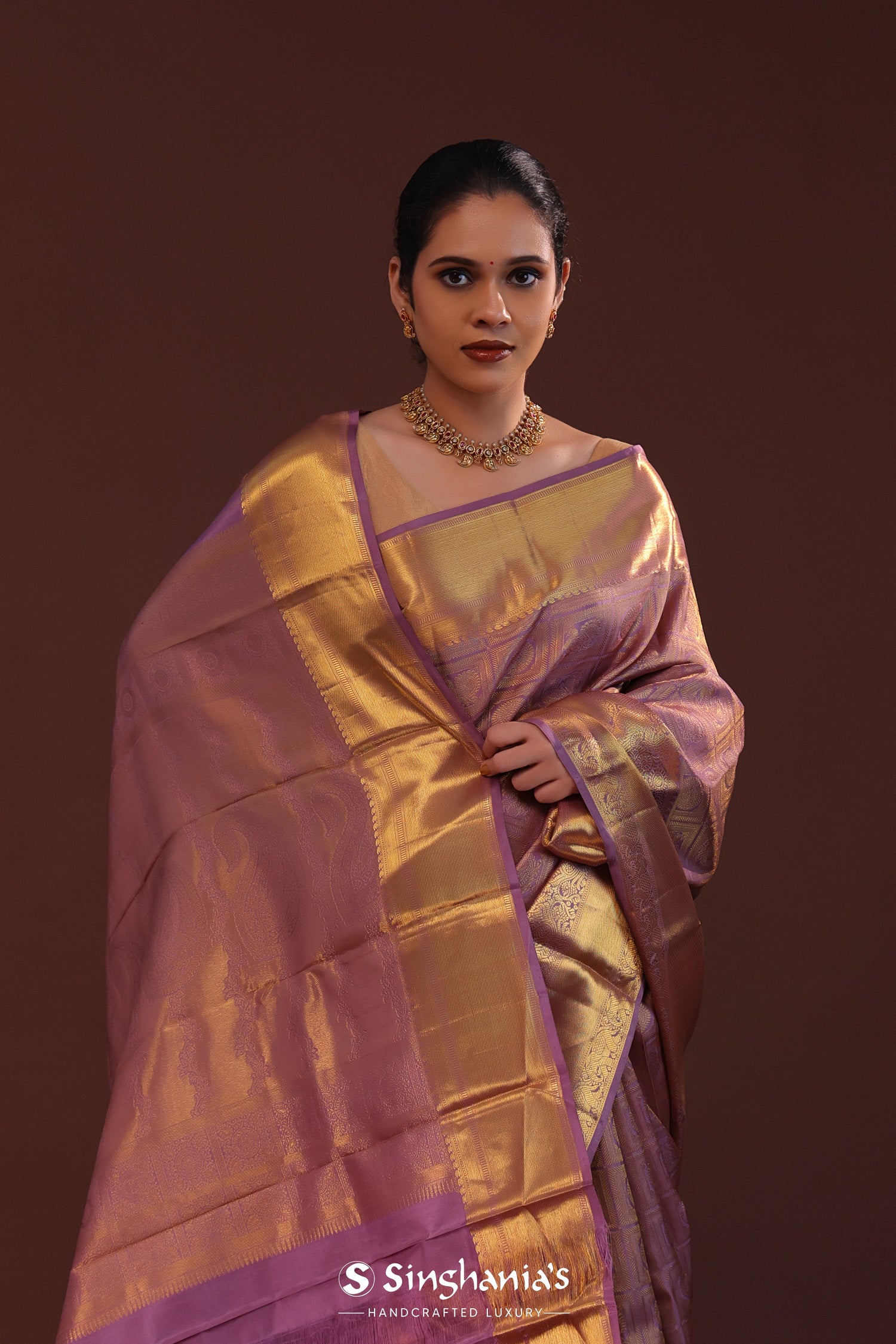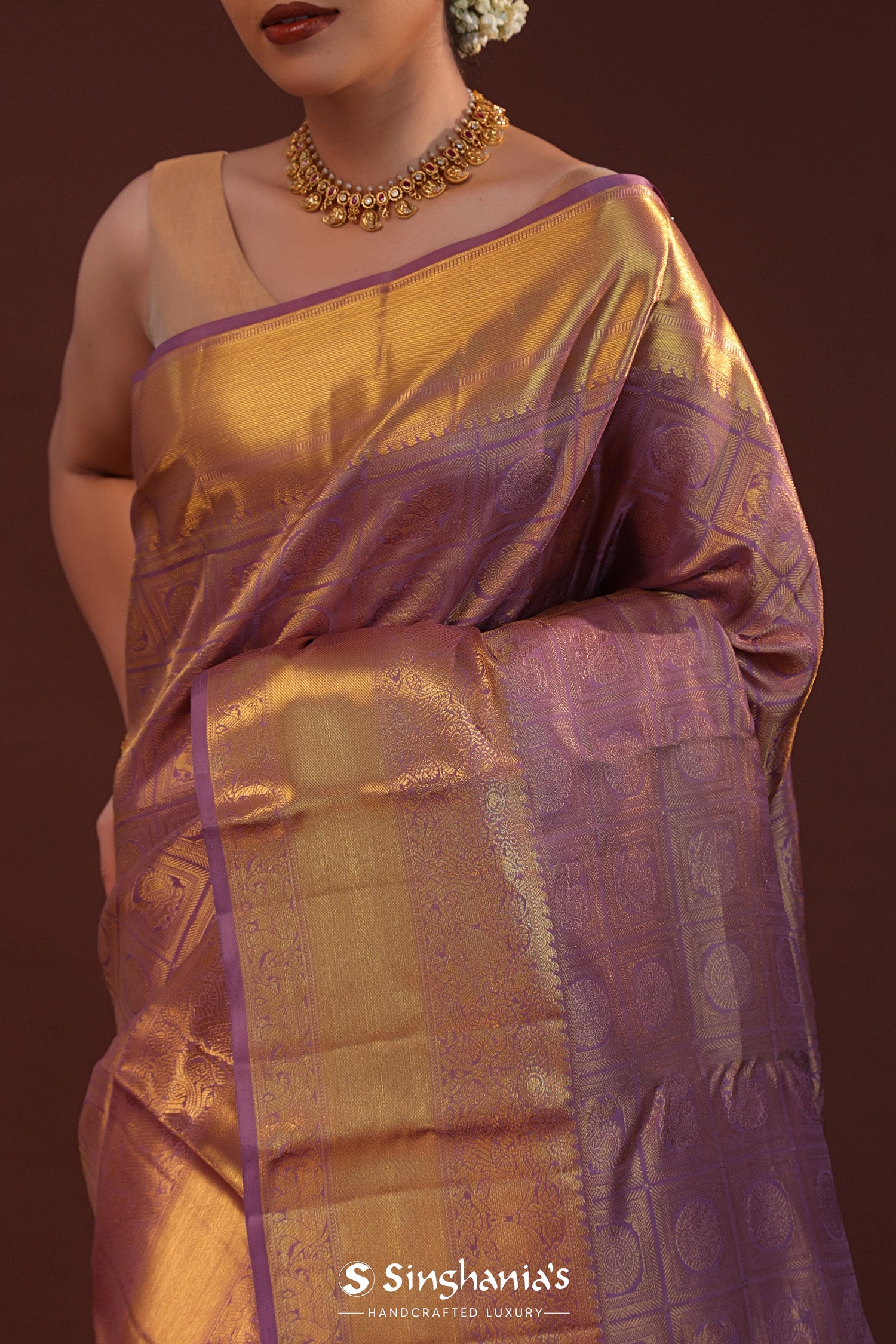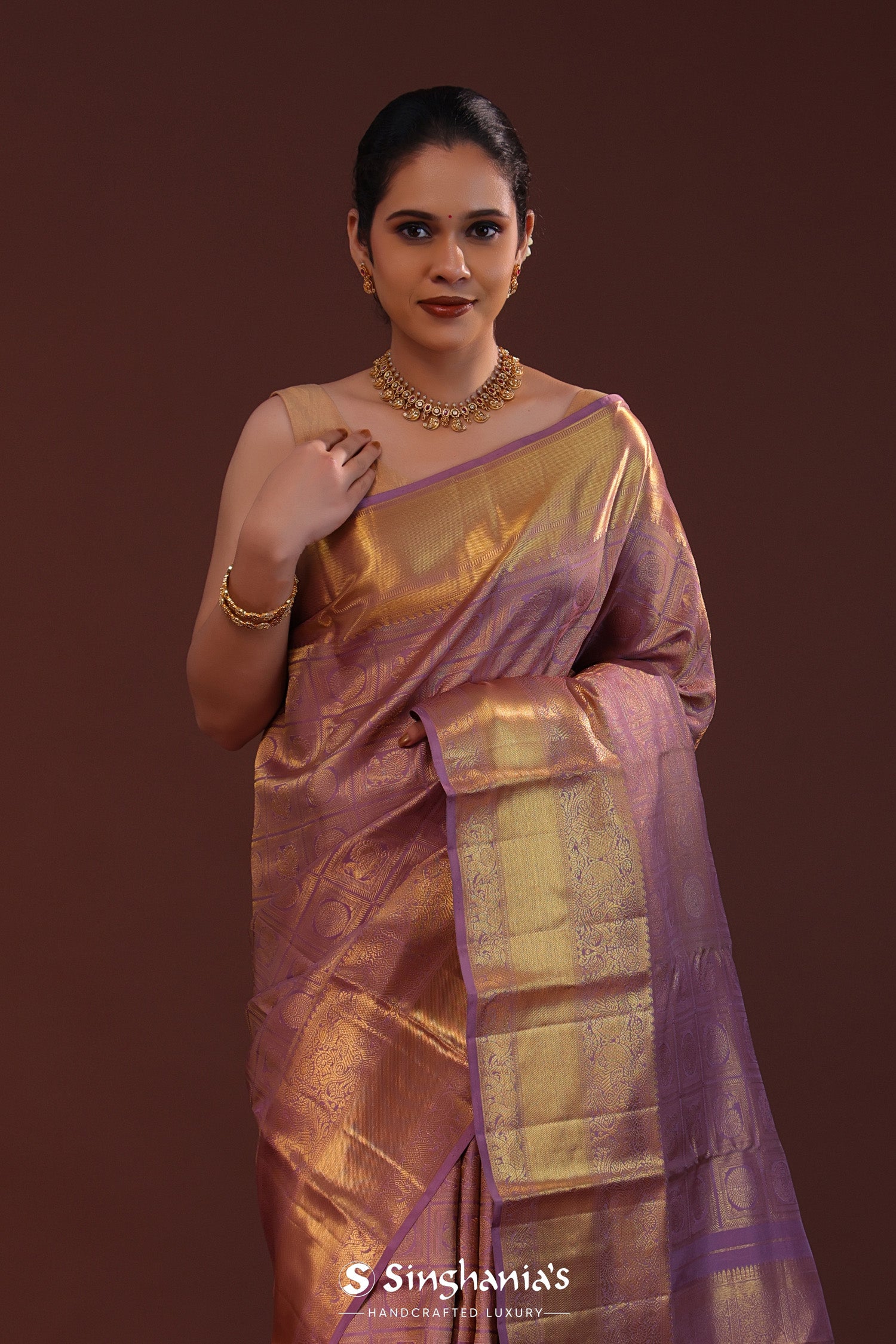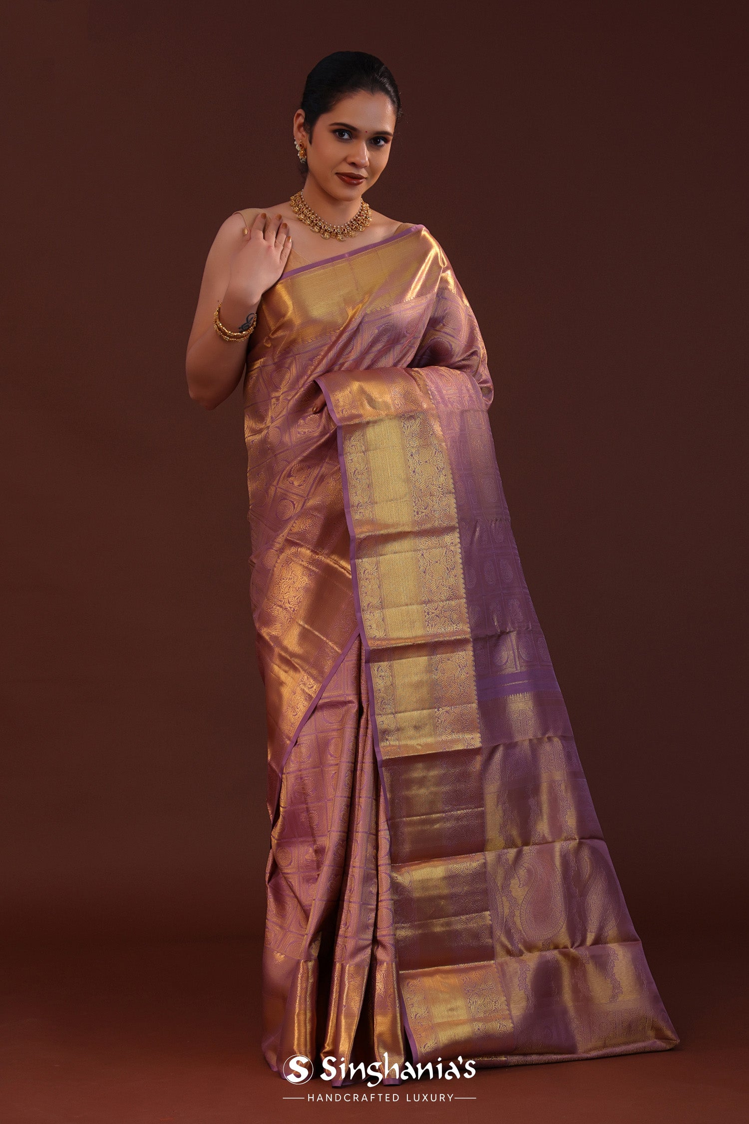 Plum Purple Kanjivaram Silk Saree With Peacock Motifs
