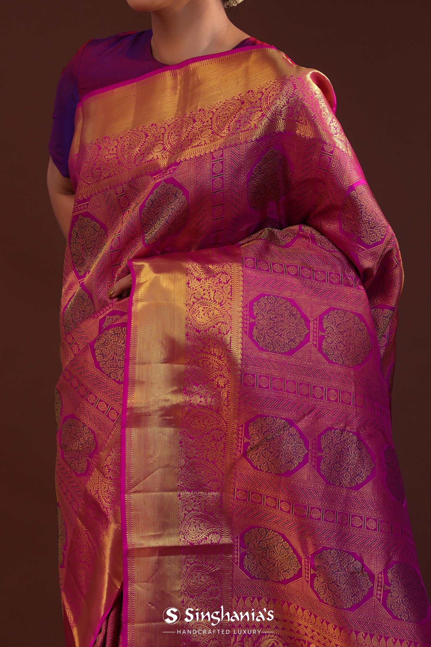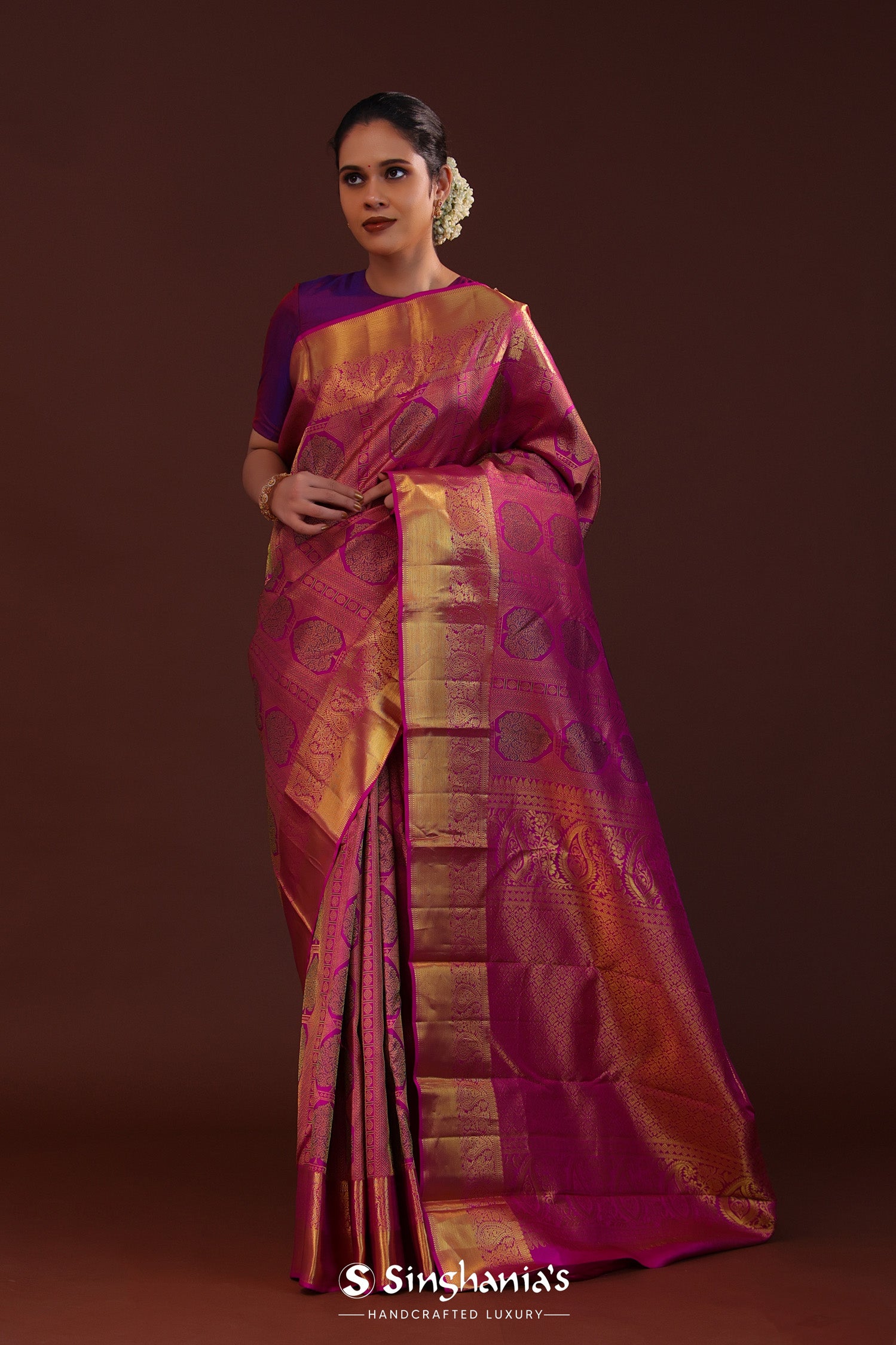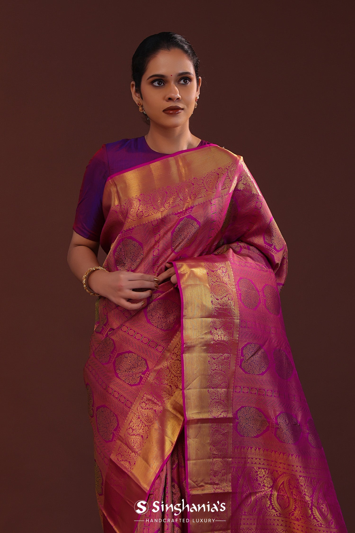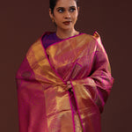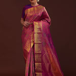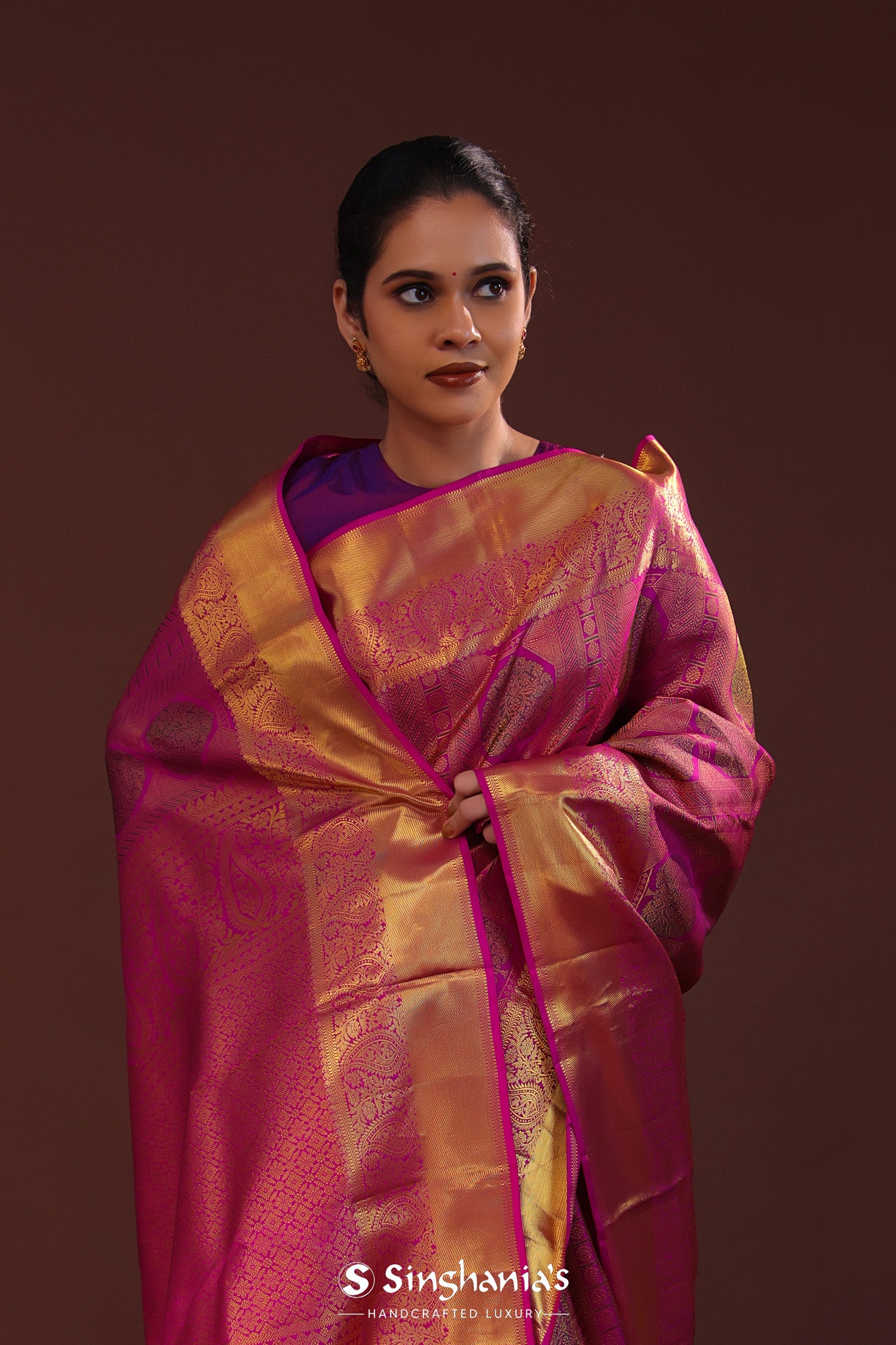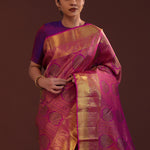 Plum Velvet Kanjivaram Silk Saree With Self Border