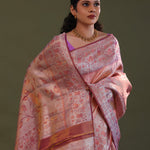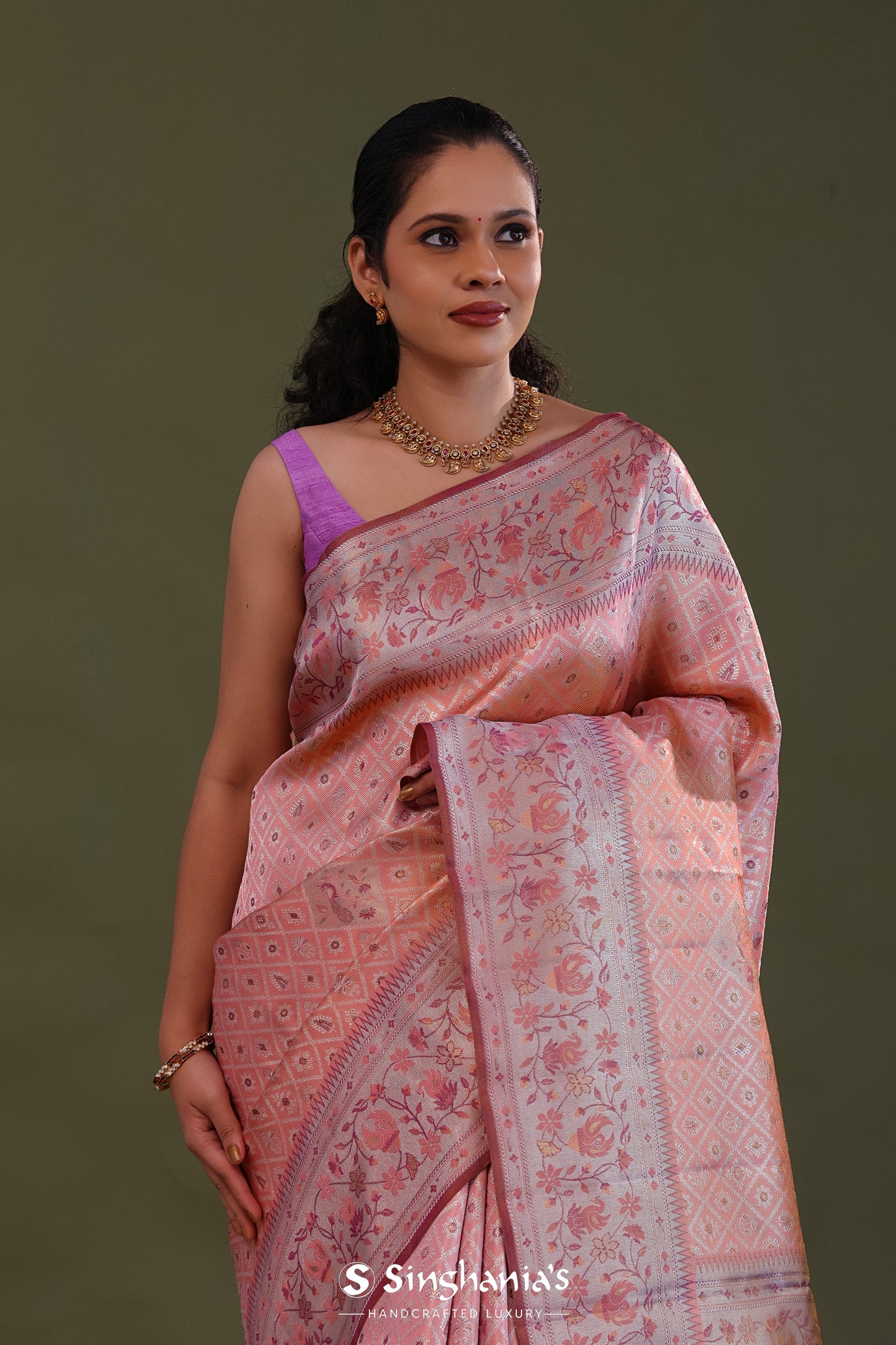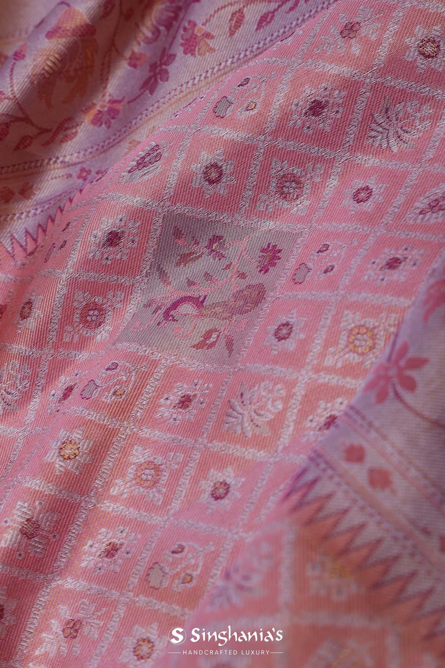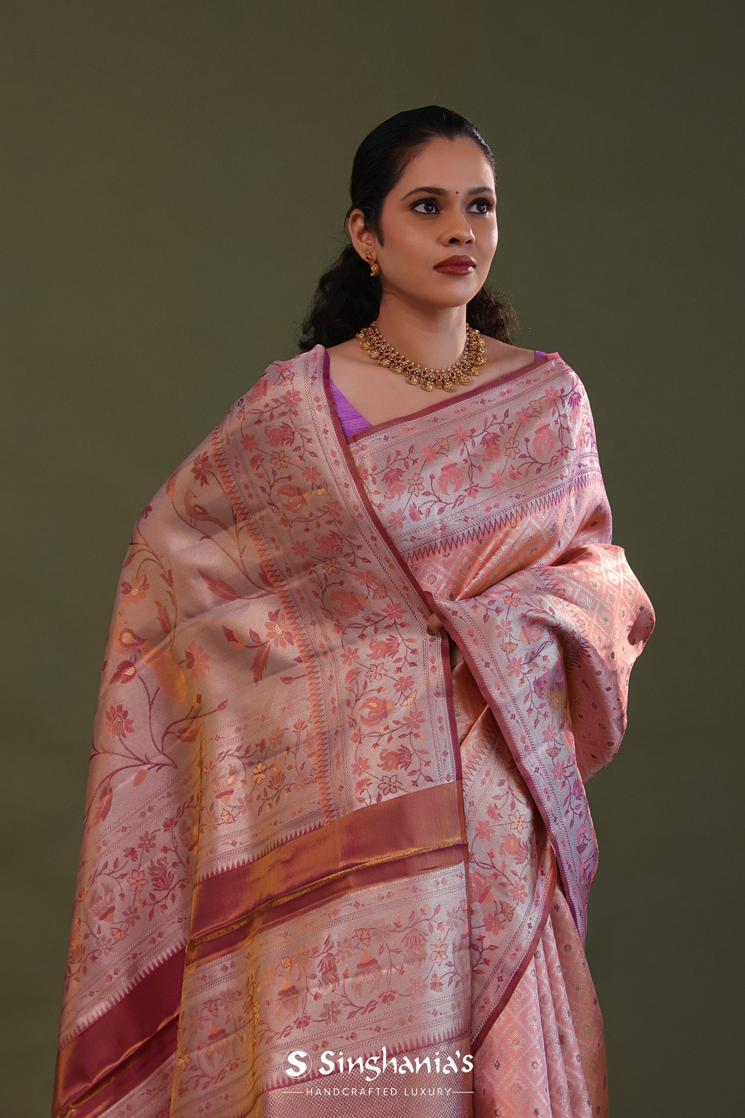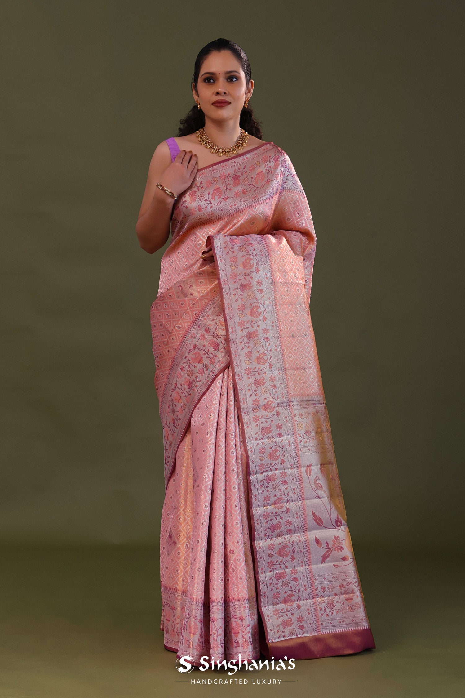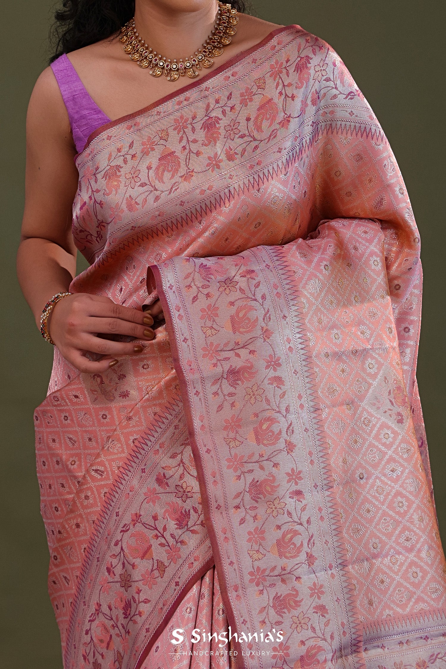 Soft Pink Kanjivaram Tissue Saree With Checks Pattern