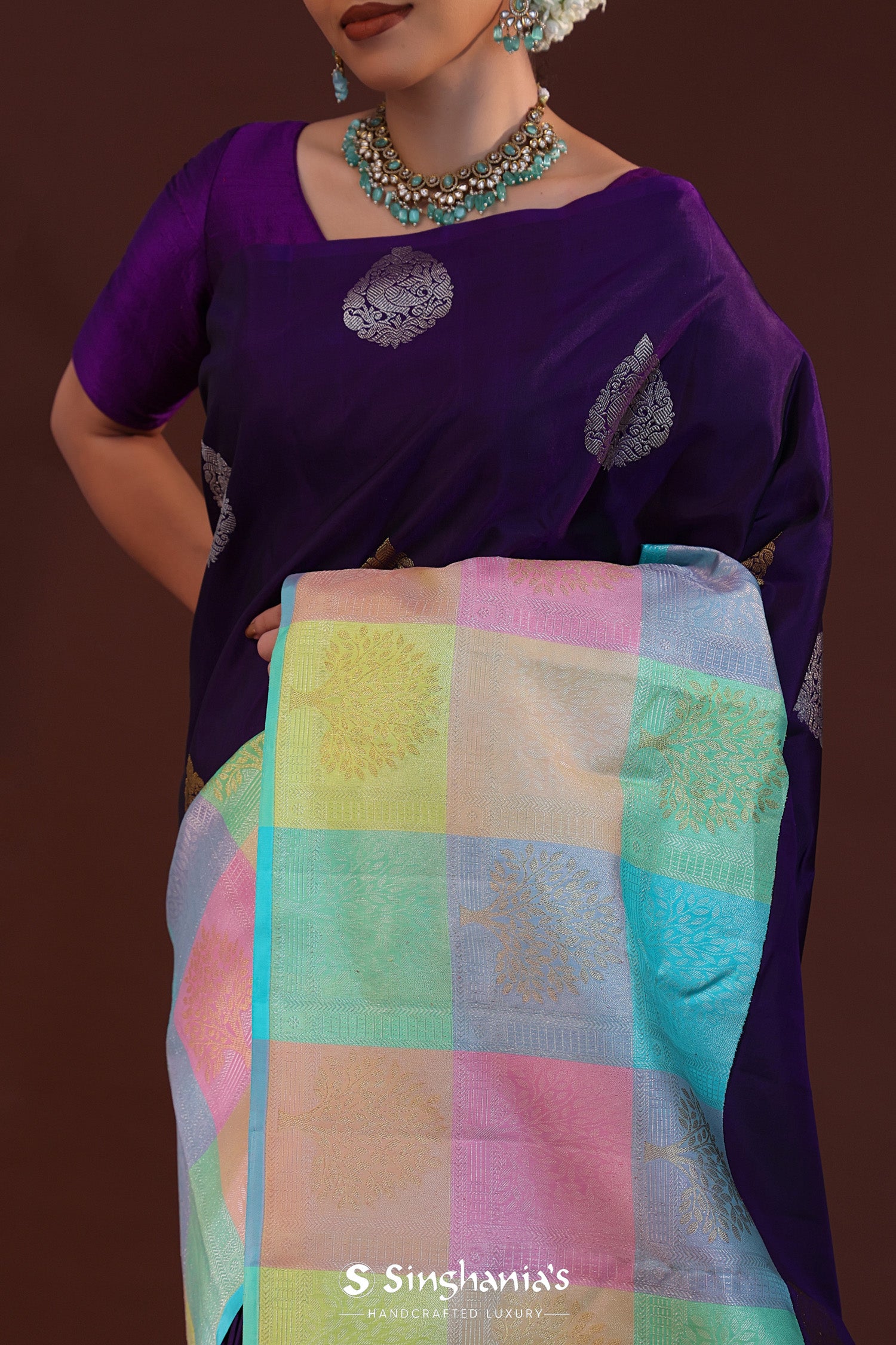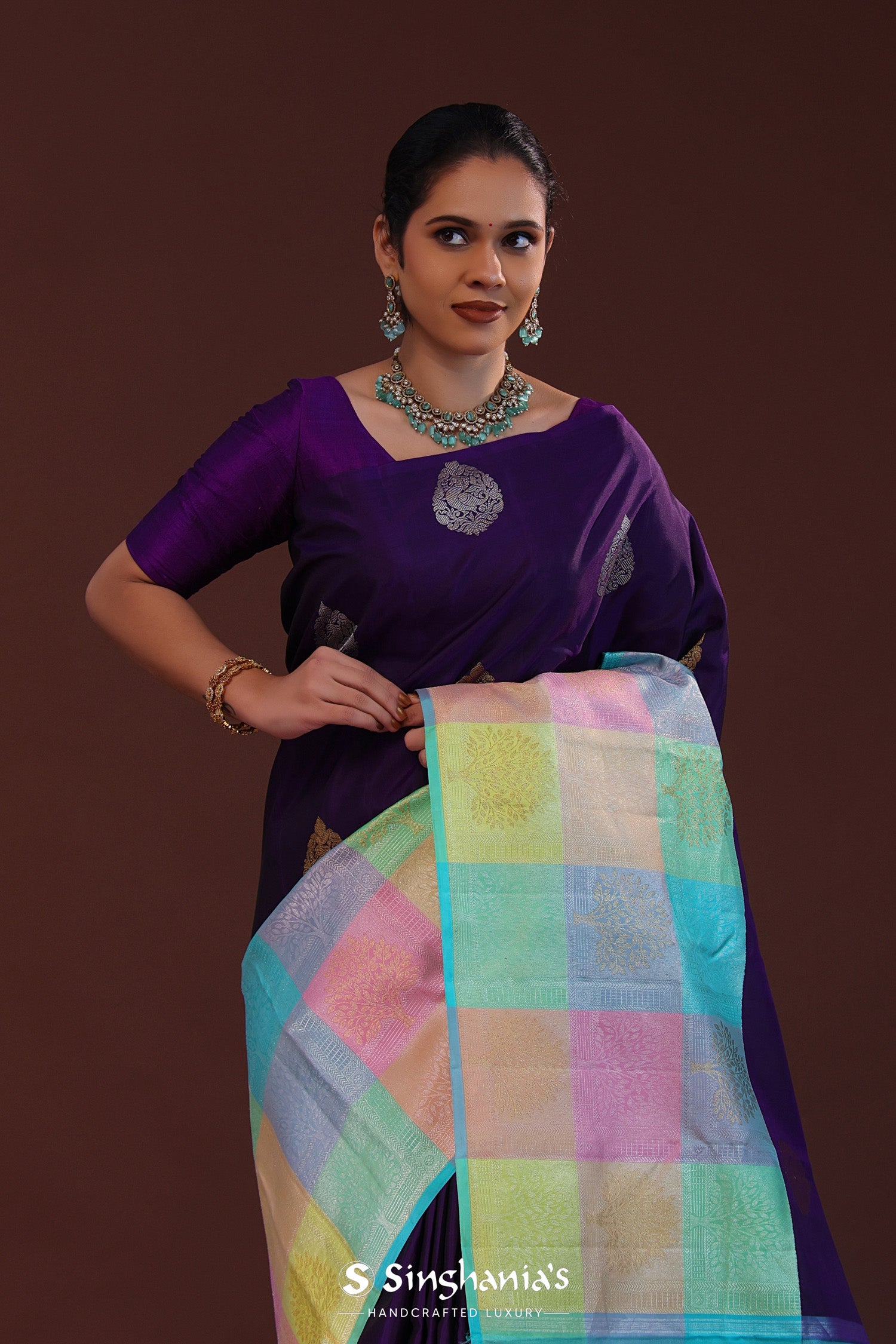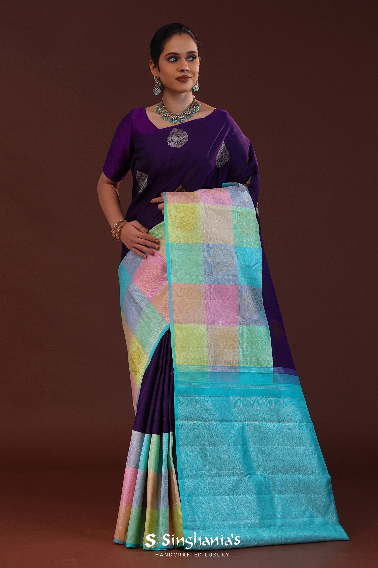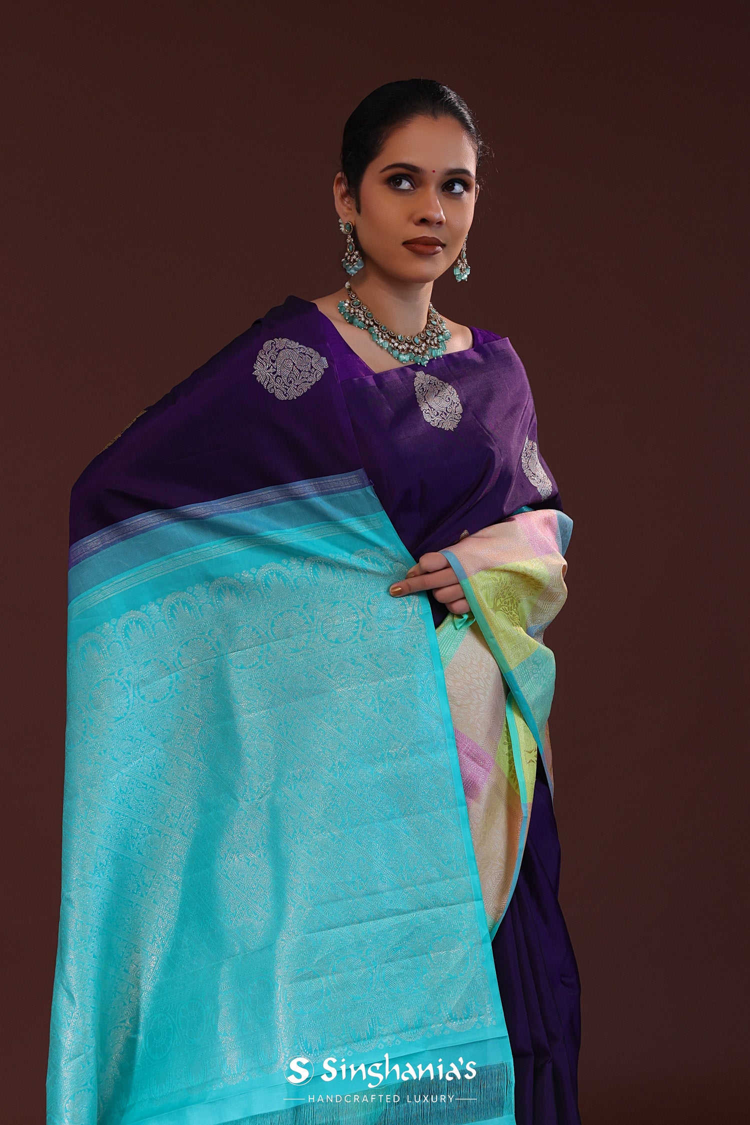 Very Dark Purple Kanjivaram Silk Saree With Peacock Motifs