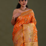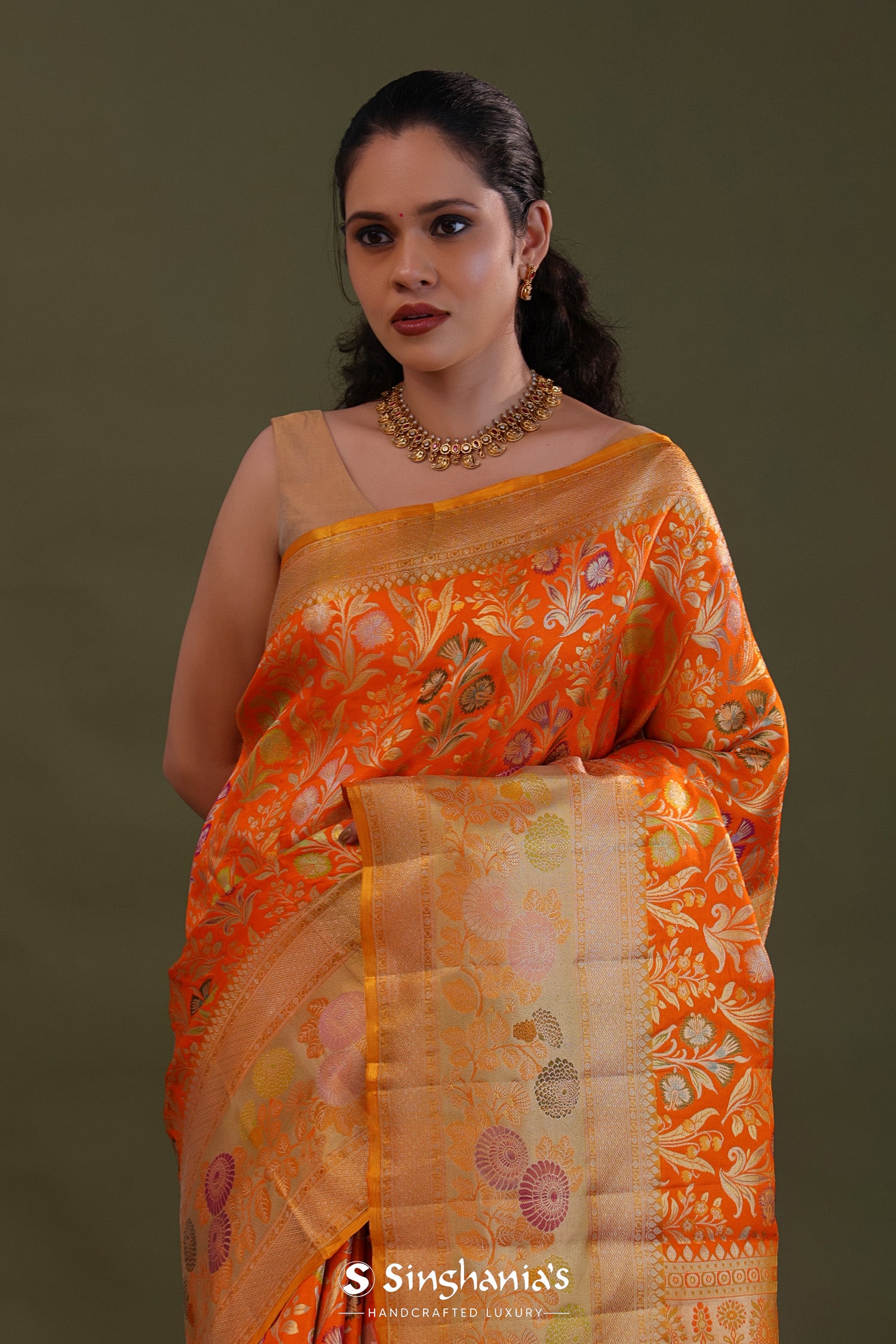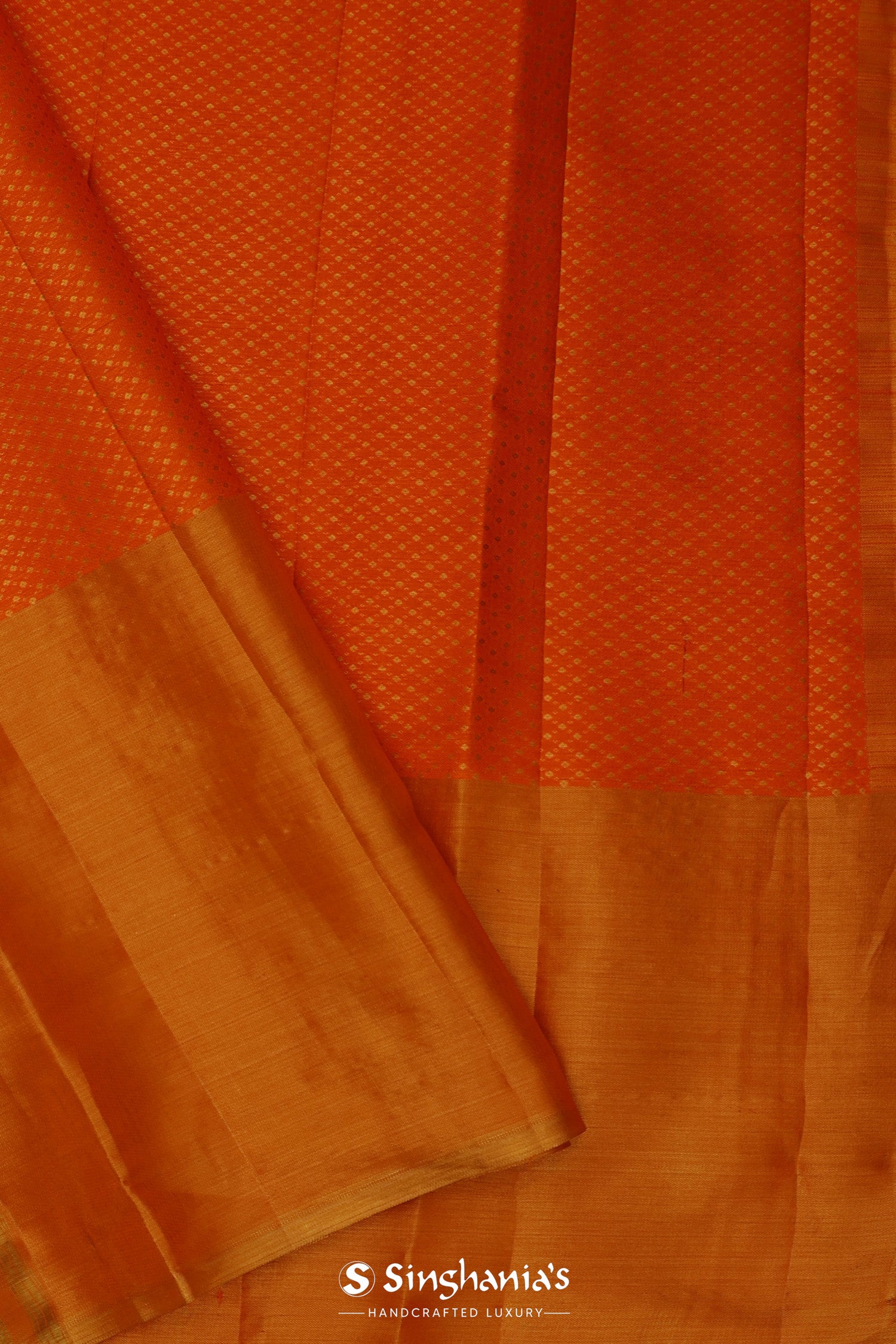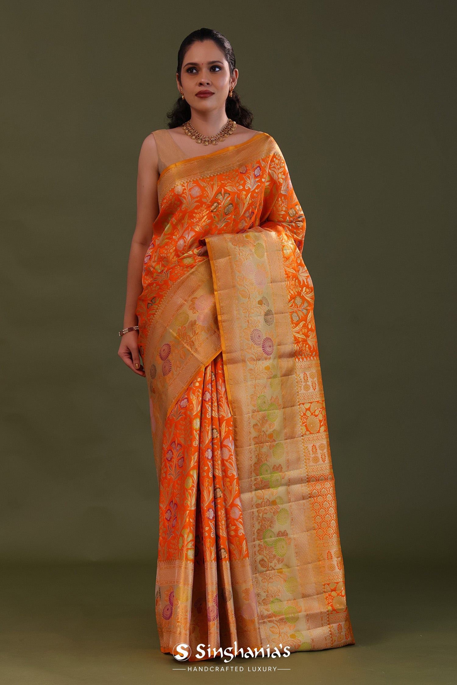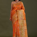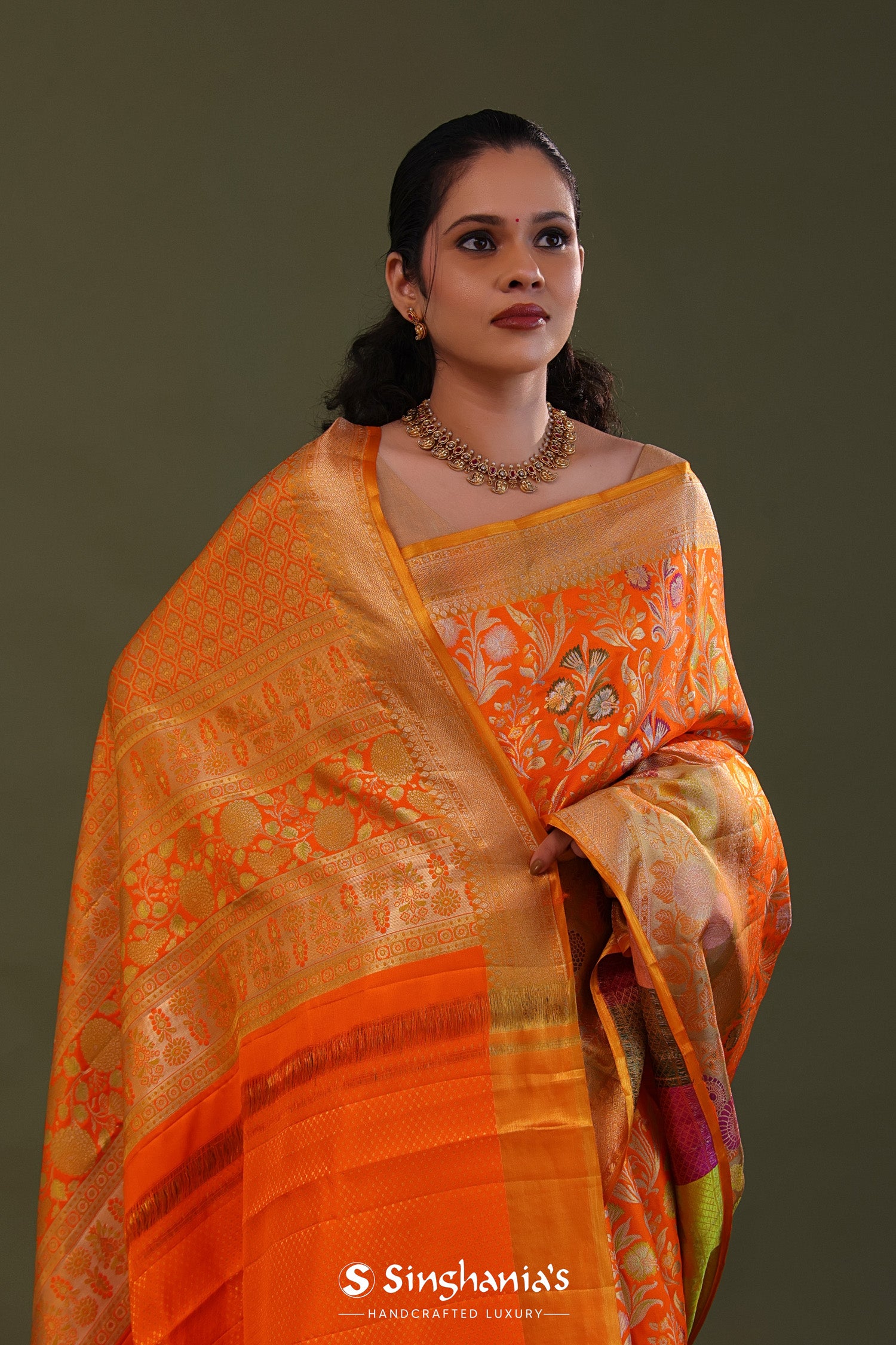 Vibrant Orange Kanjivaram Silk Saree With Meenakari Border