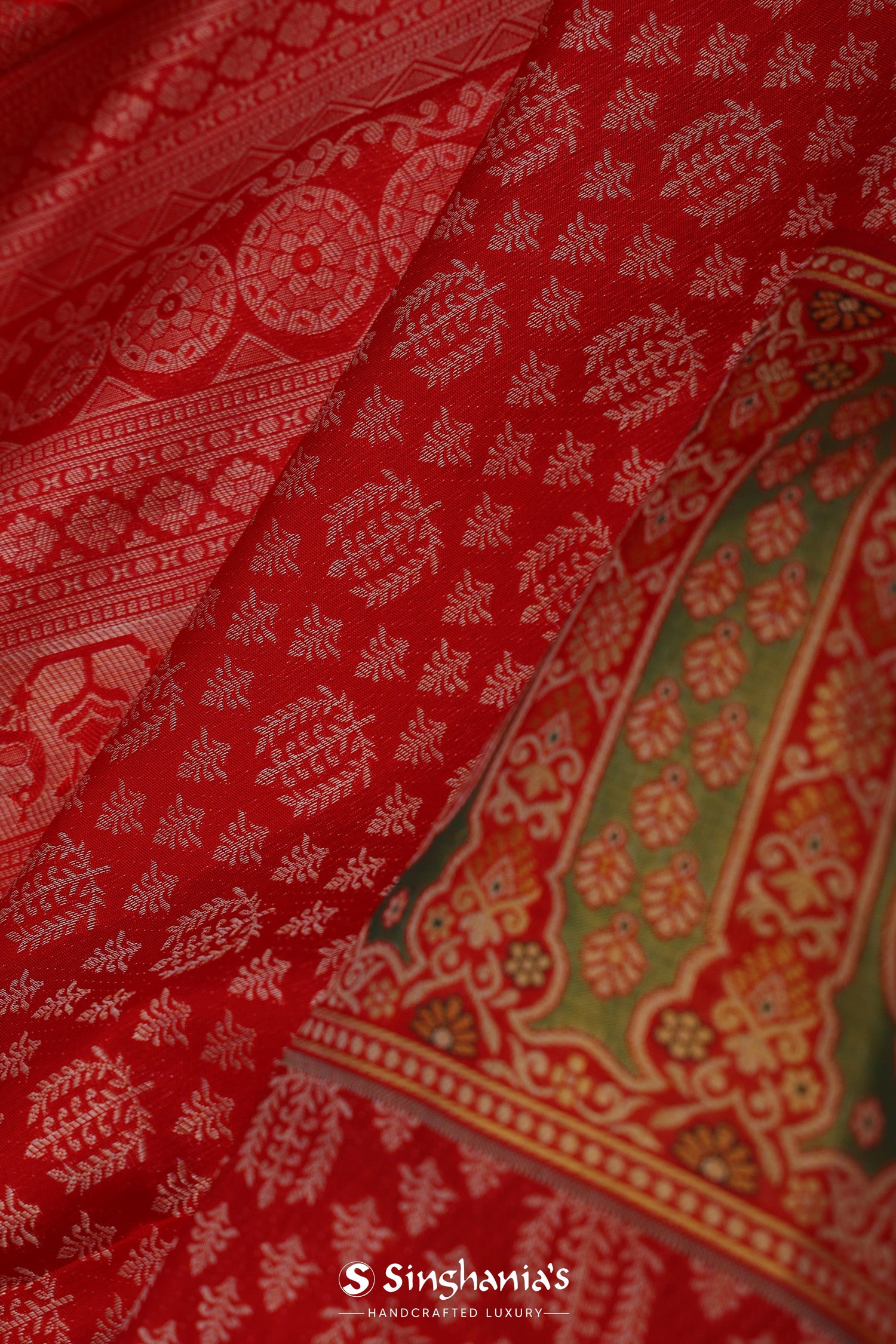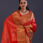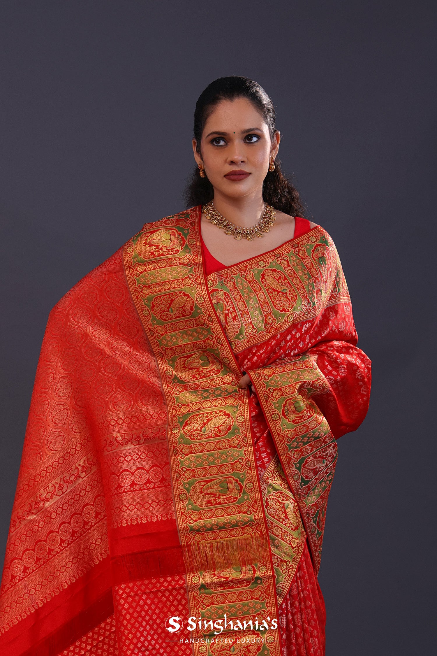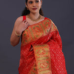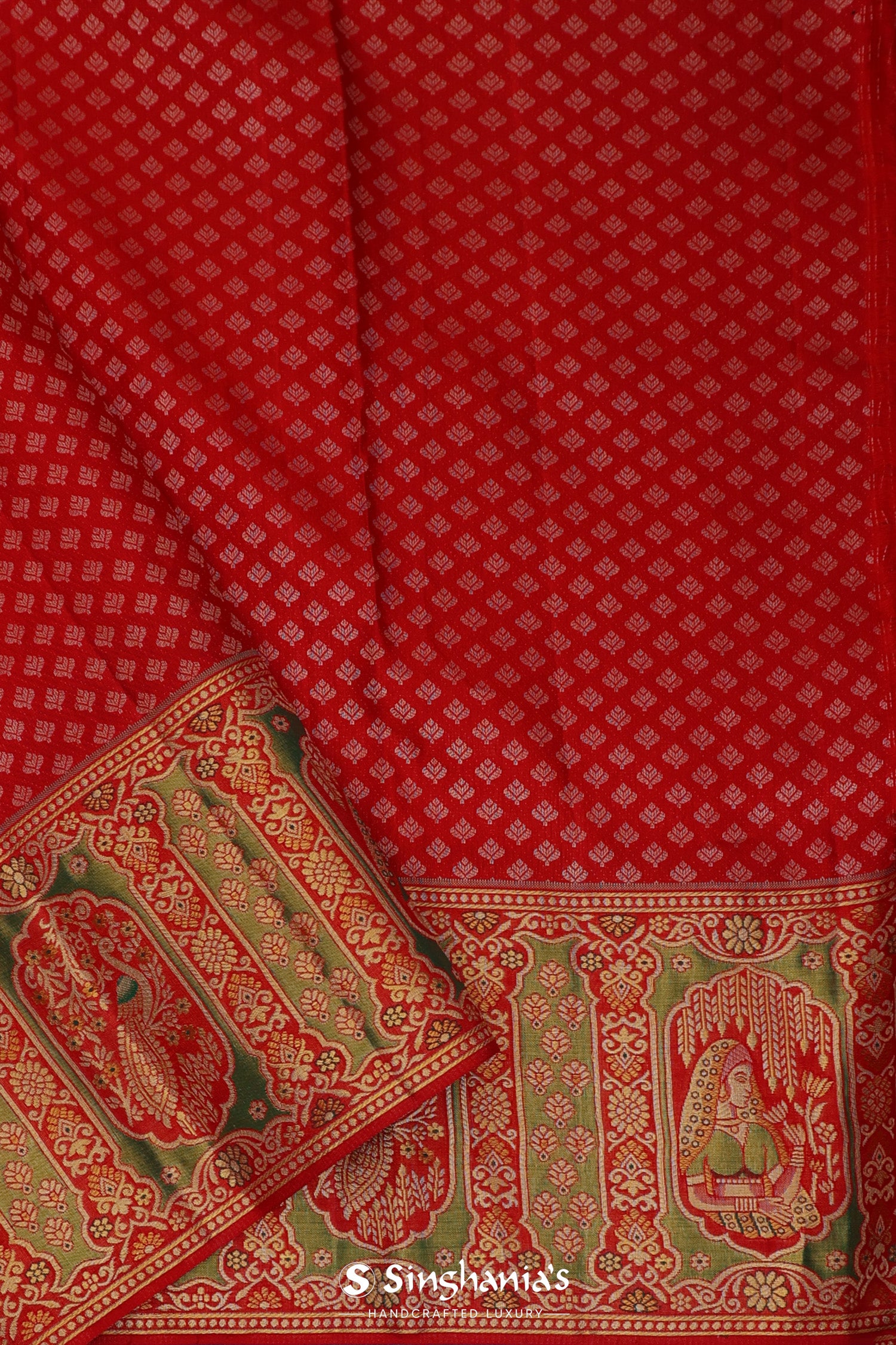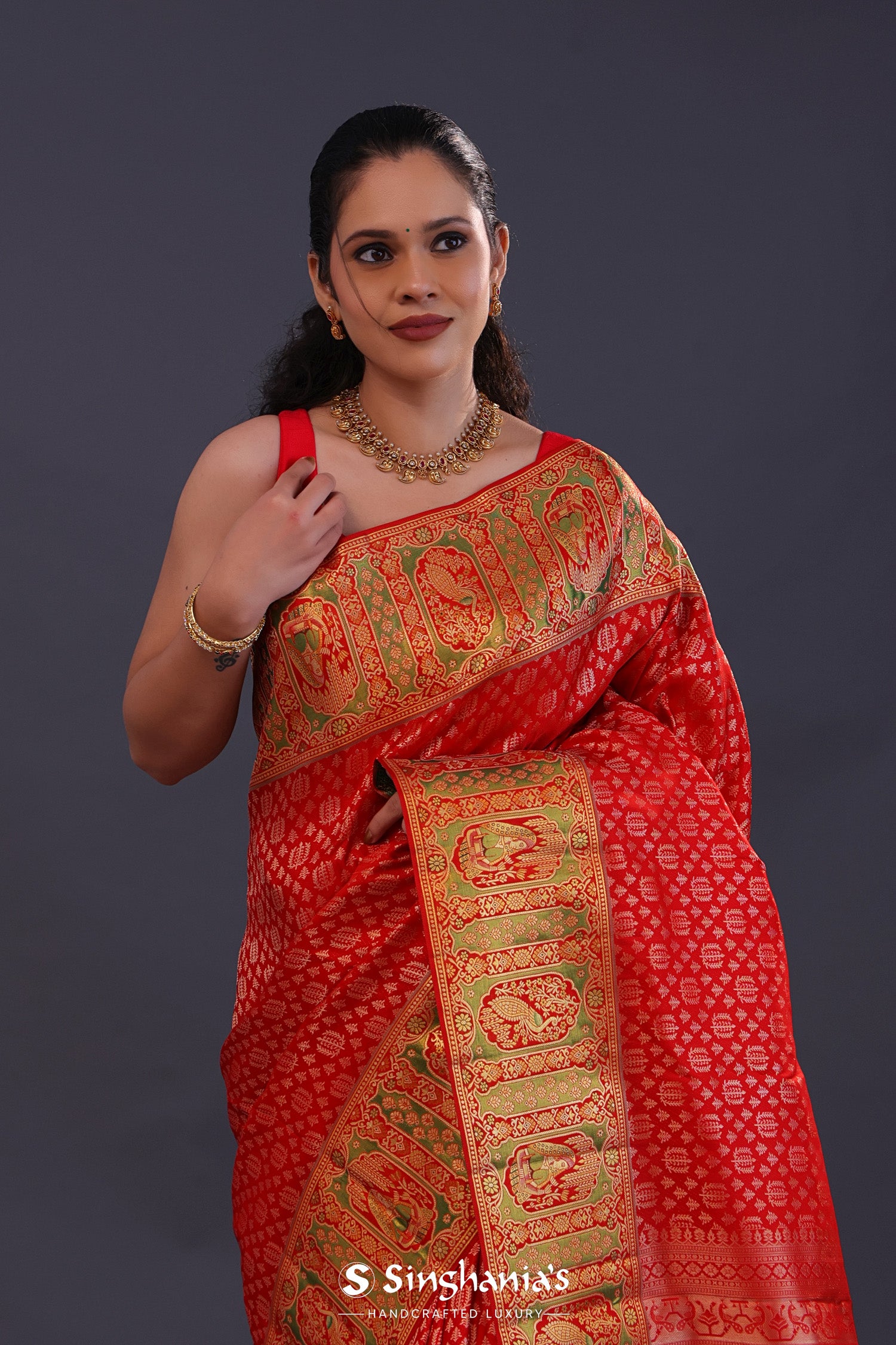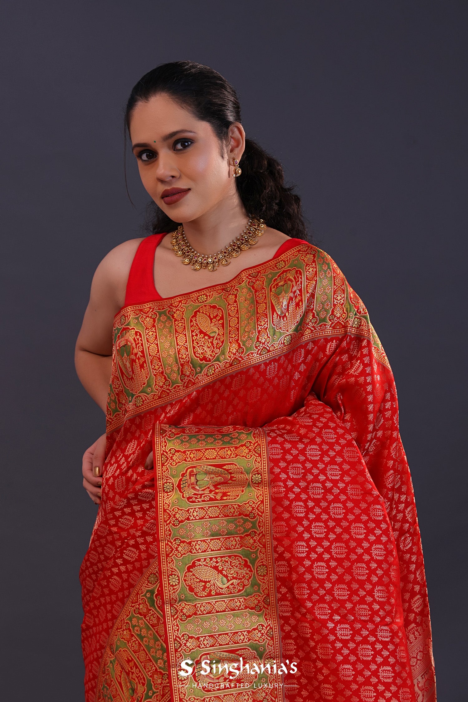 Vibrant Red Kanjivaram Silk Saree With Tissue Border
