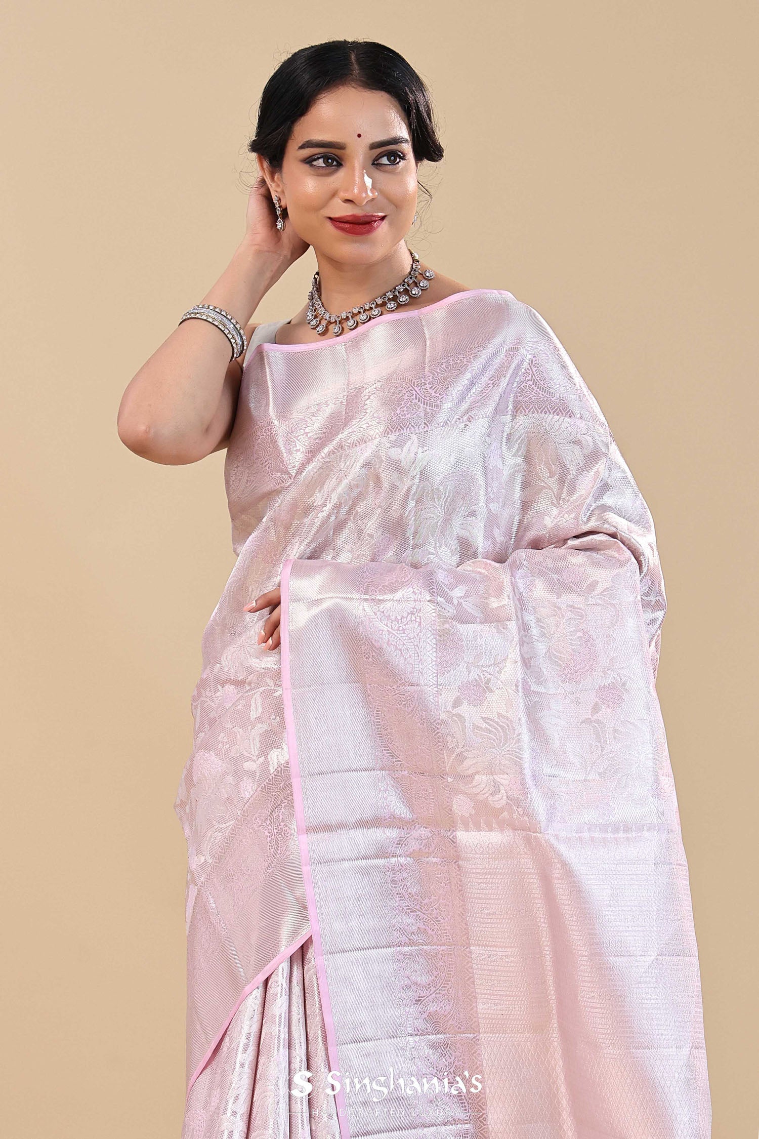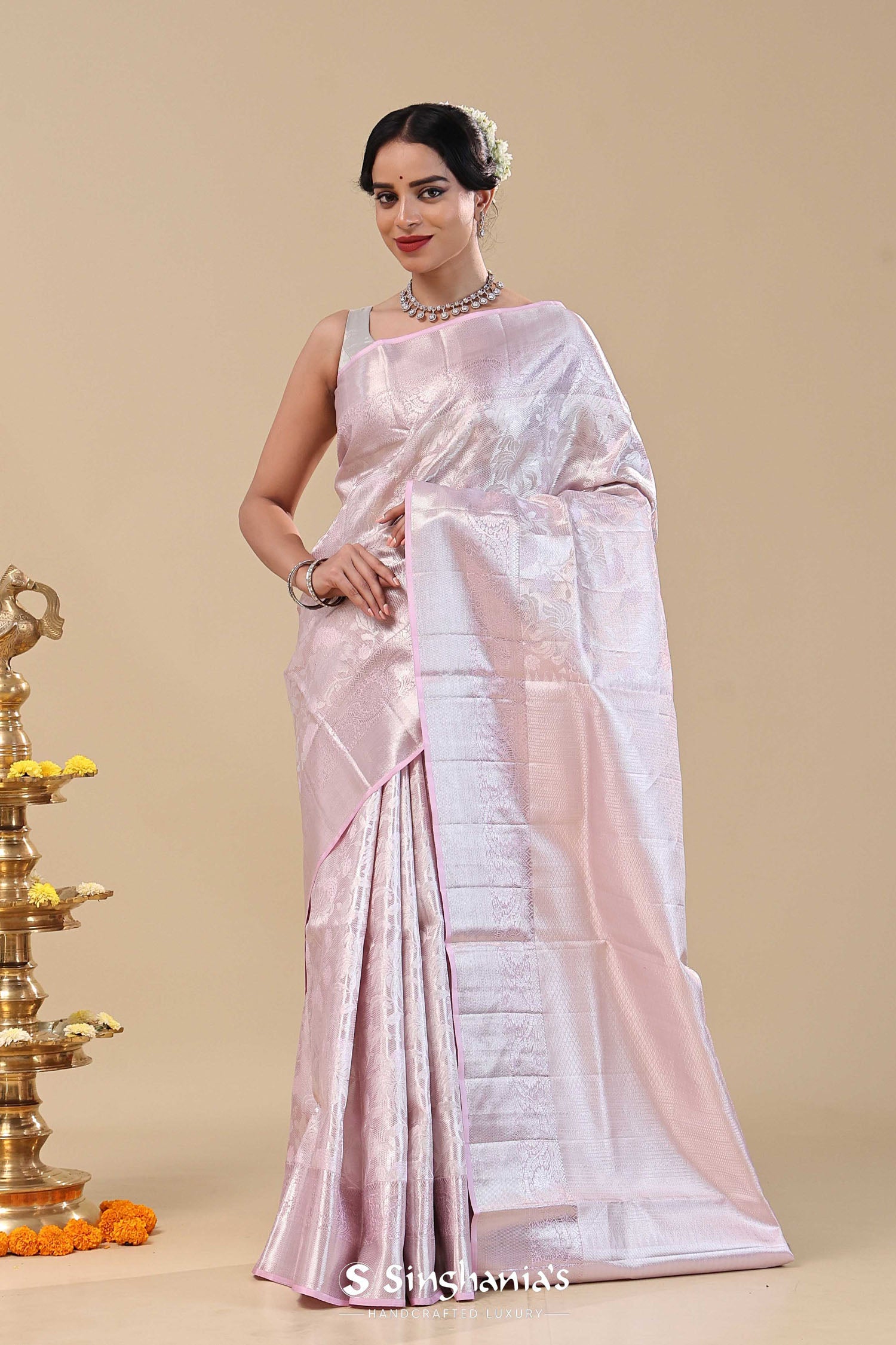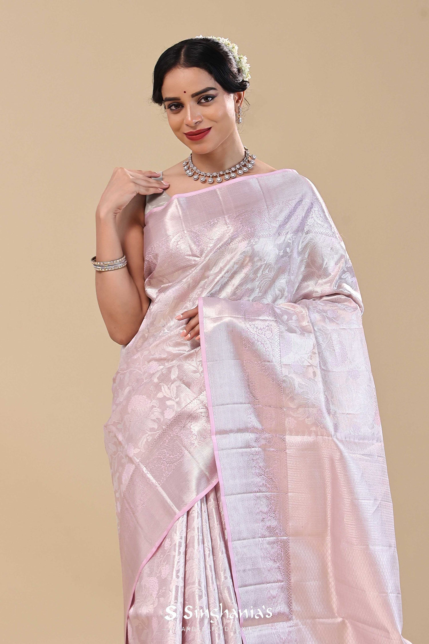 Wisteria Purple Kanjivaram Saree With Silver Zari