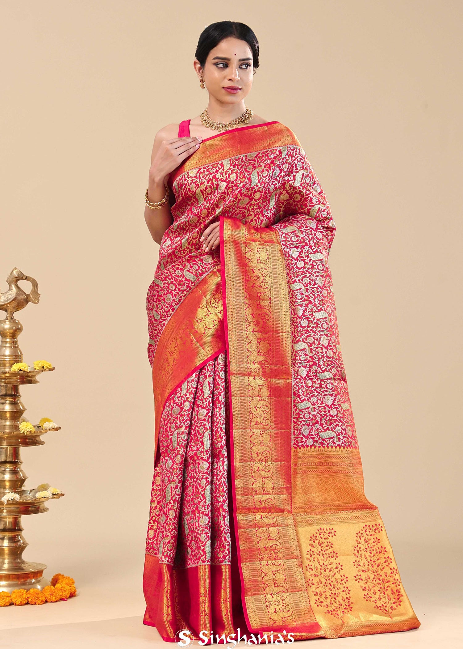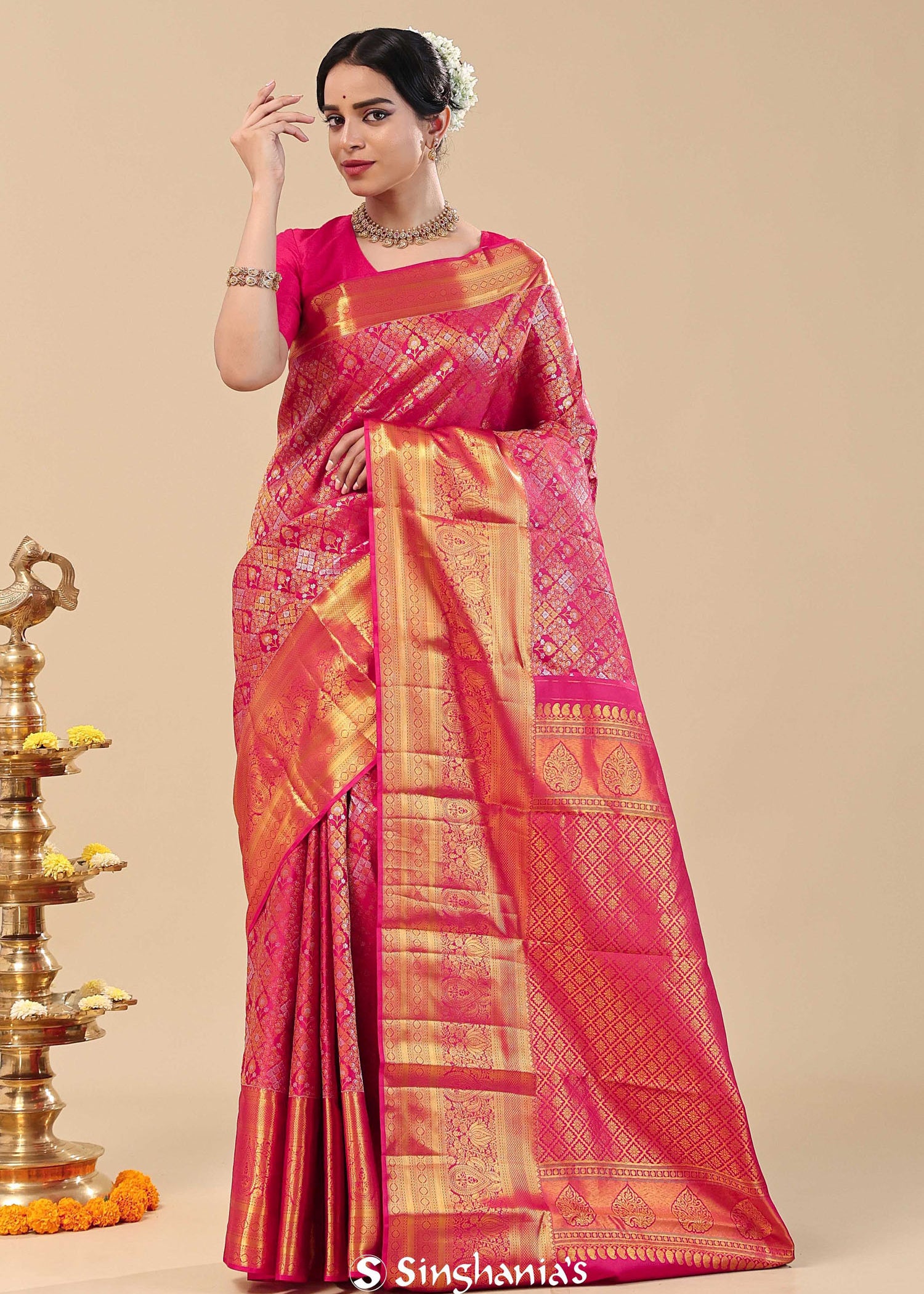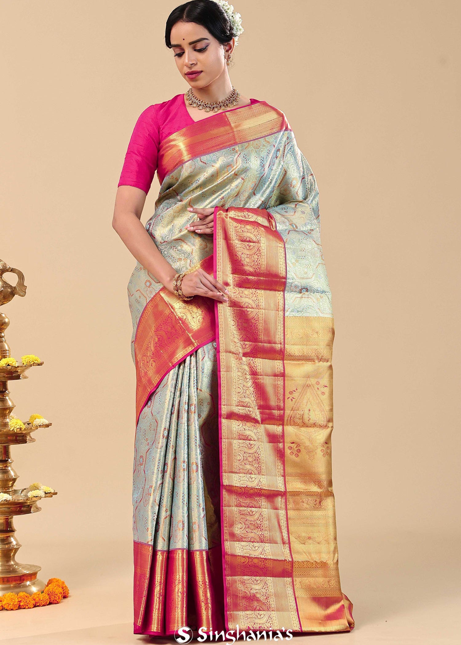 Kanchipuram Silk Sarees are exquisite traditional silk sarees from Tamil Nadu, known for their rich texture and vibrant colors. They are handcrafted by skilled artisans with intricate designs inspired by nature and temple art. These sarees reflect the timeless elegance and heritage of Indian craftsmanship. With their lustrous sheen and beautiful drape, Kanchipuram Silk / Pattu Sarees are a symbol of pride and grace for women across India.