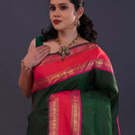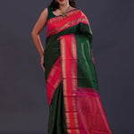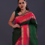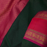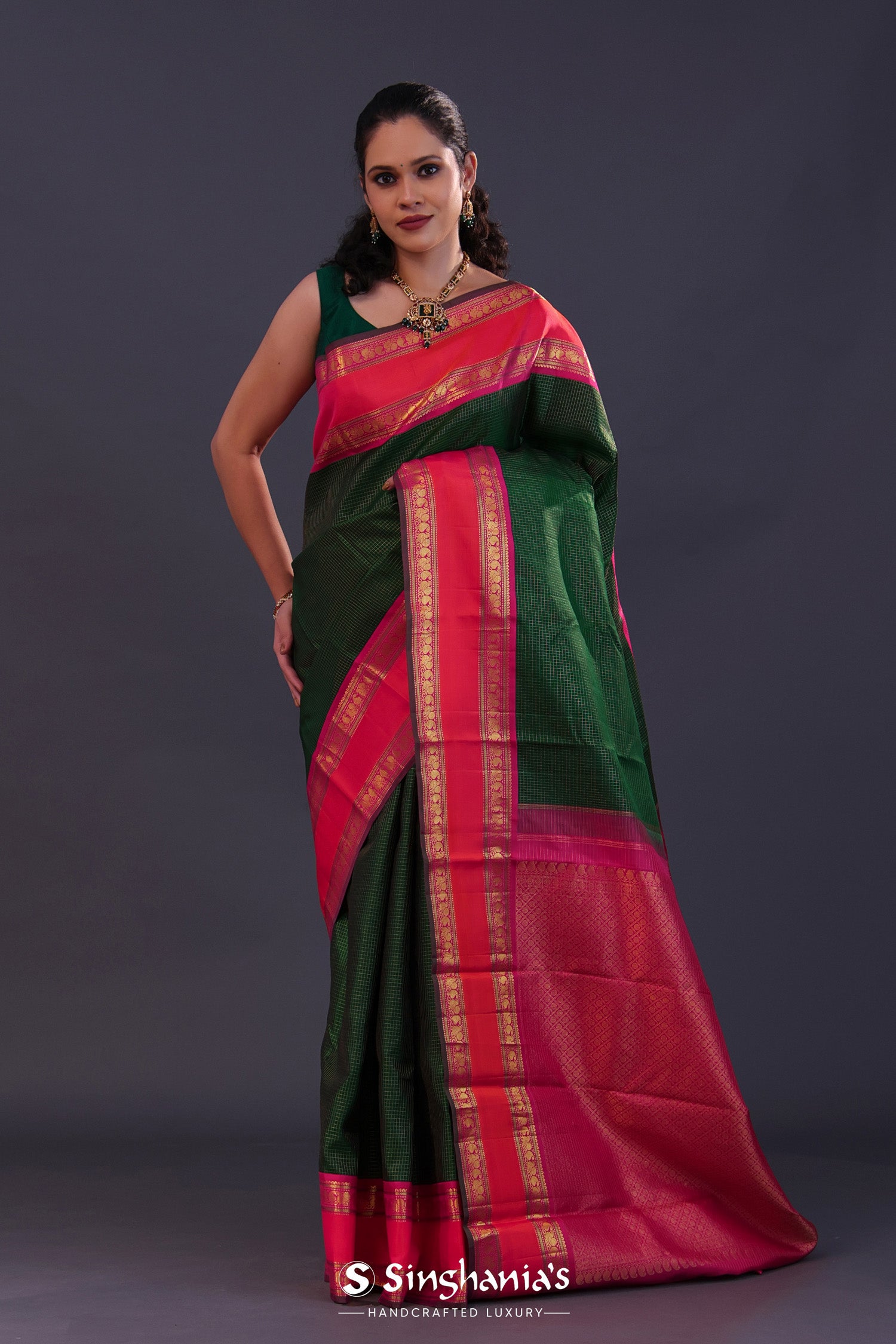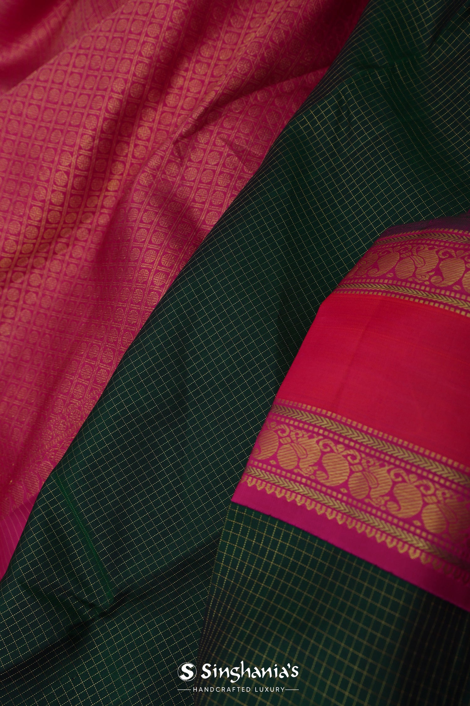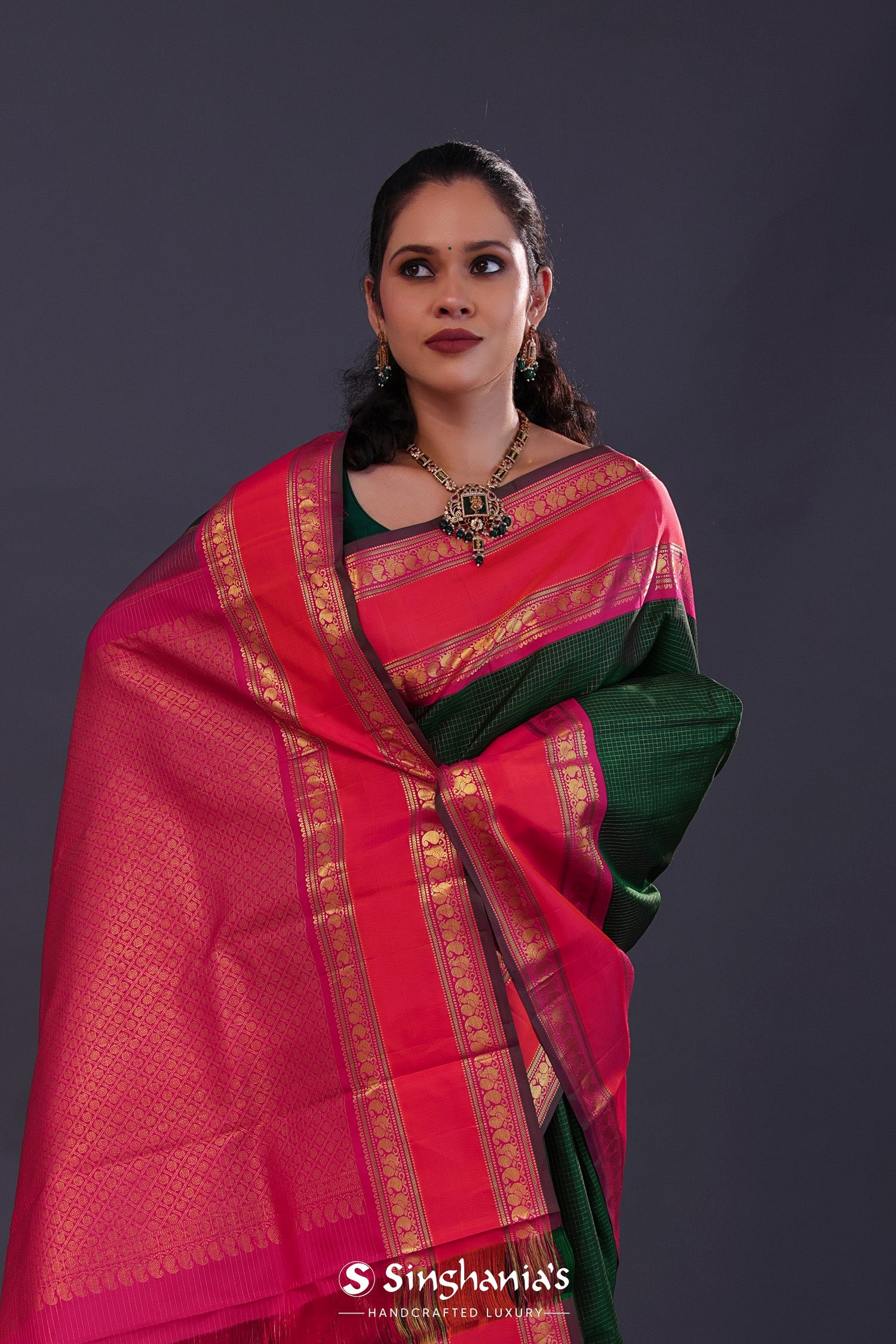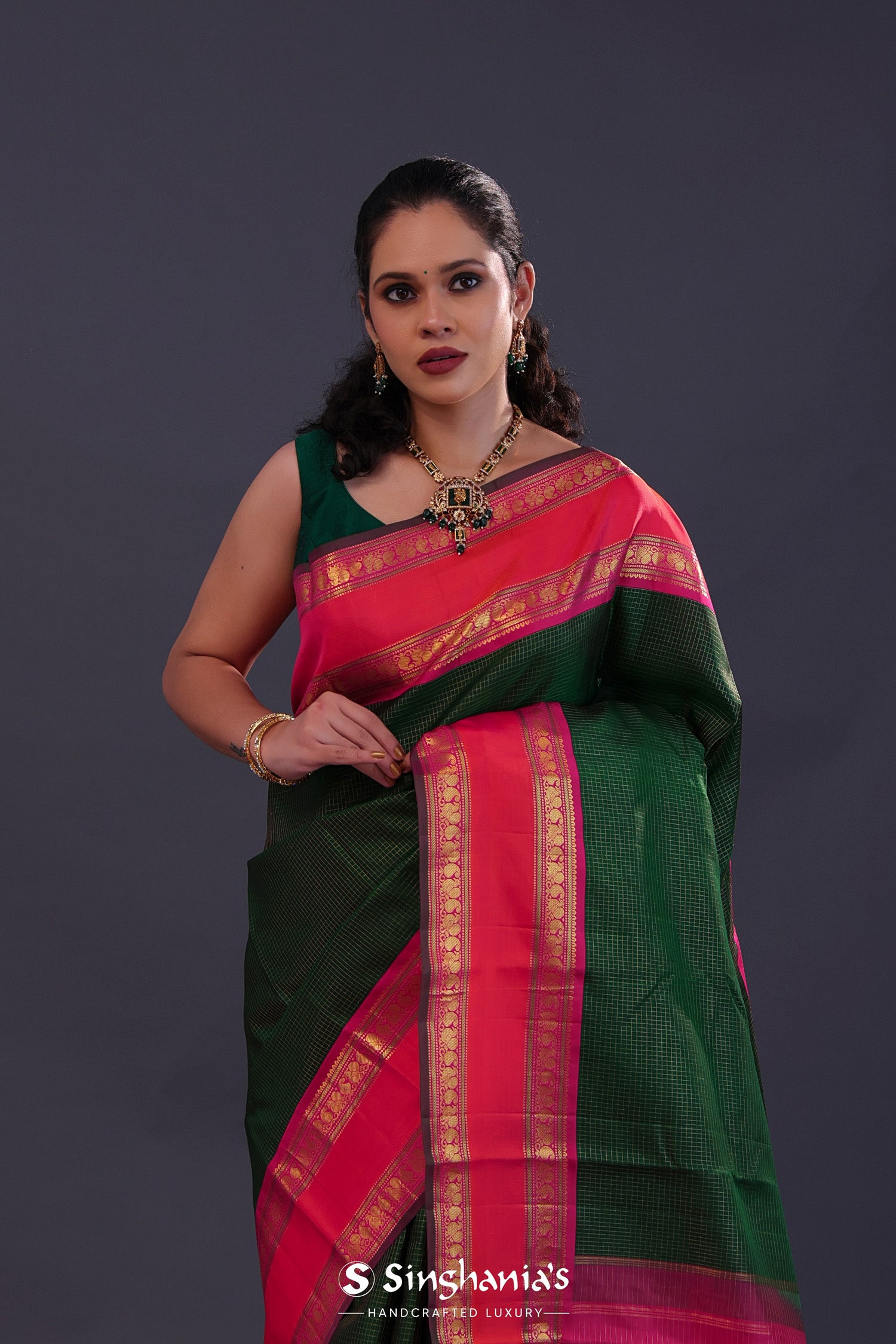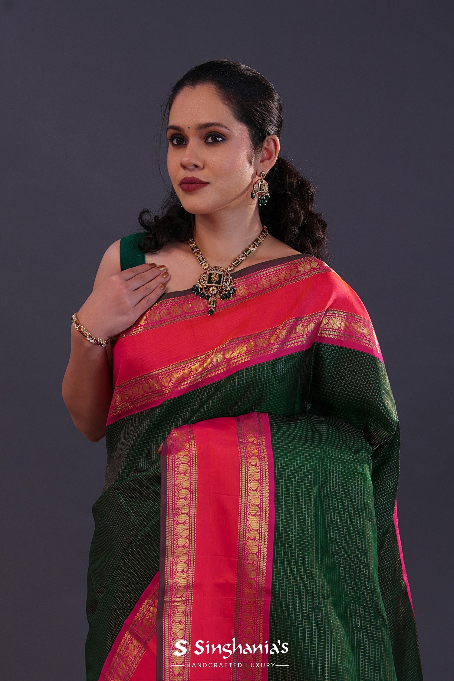Bottle Green Kanjivaram Silk Saree With Checks Pattern