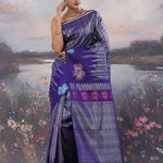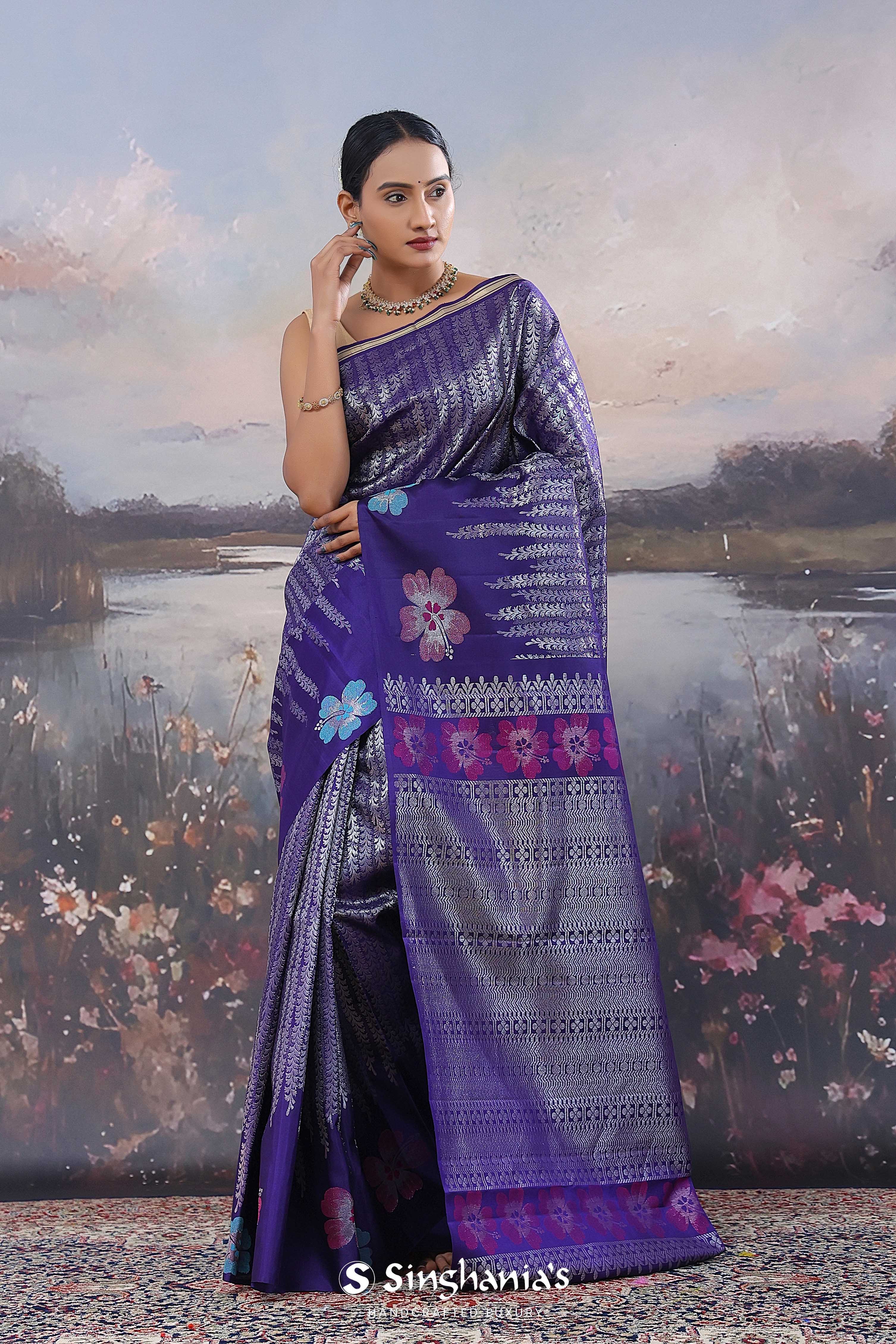Deep Violet Kanjivaram Saree With Gold Zari Design