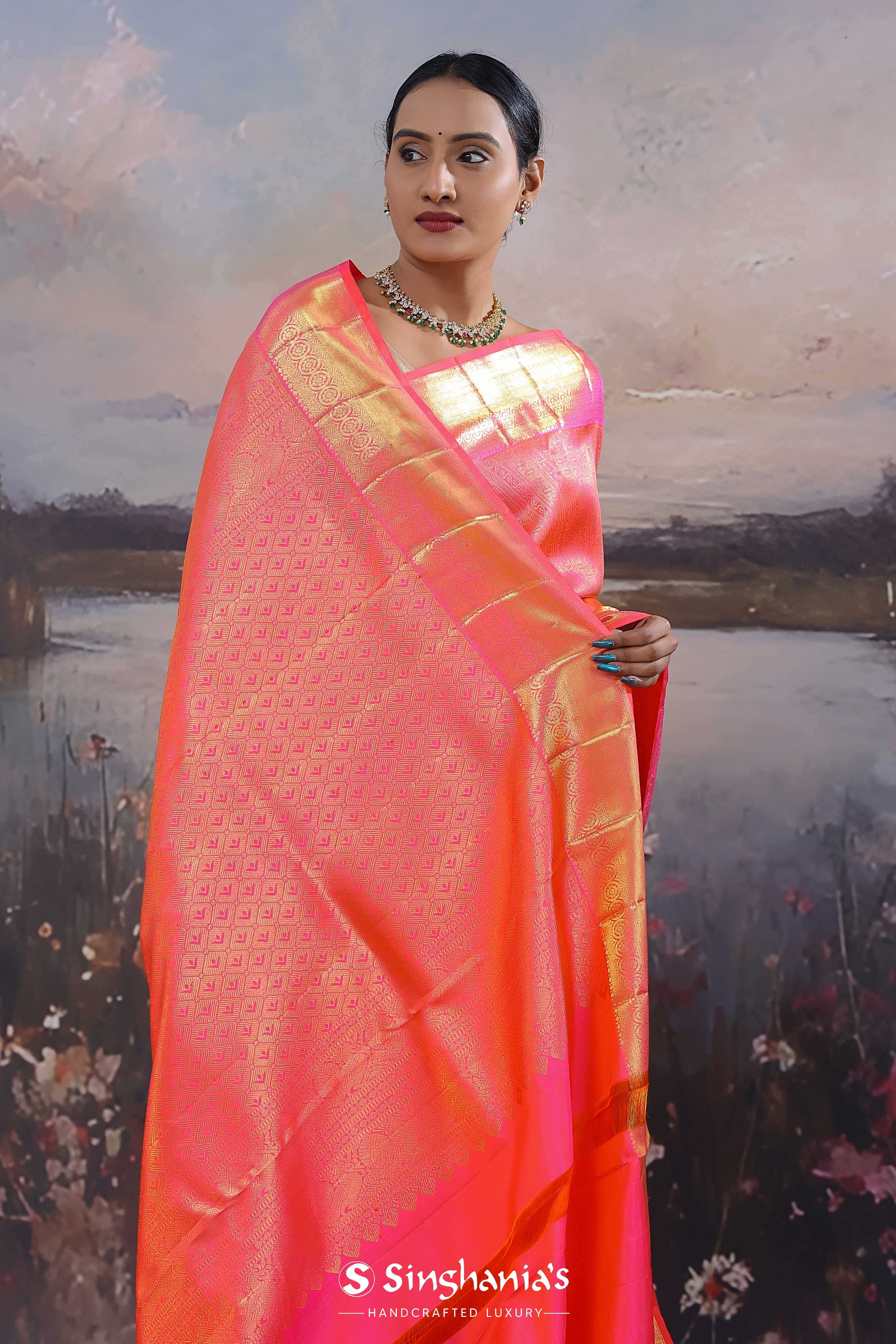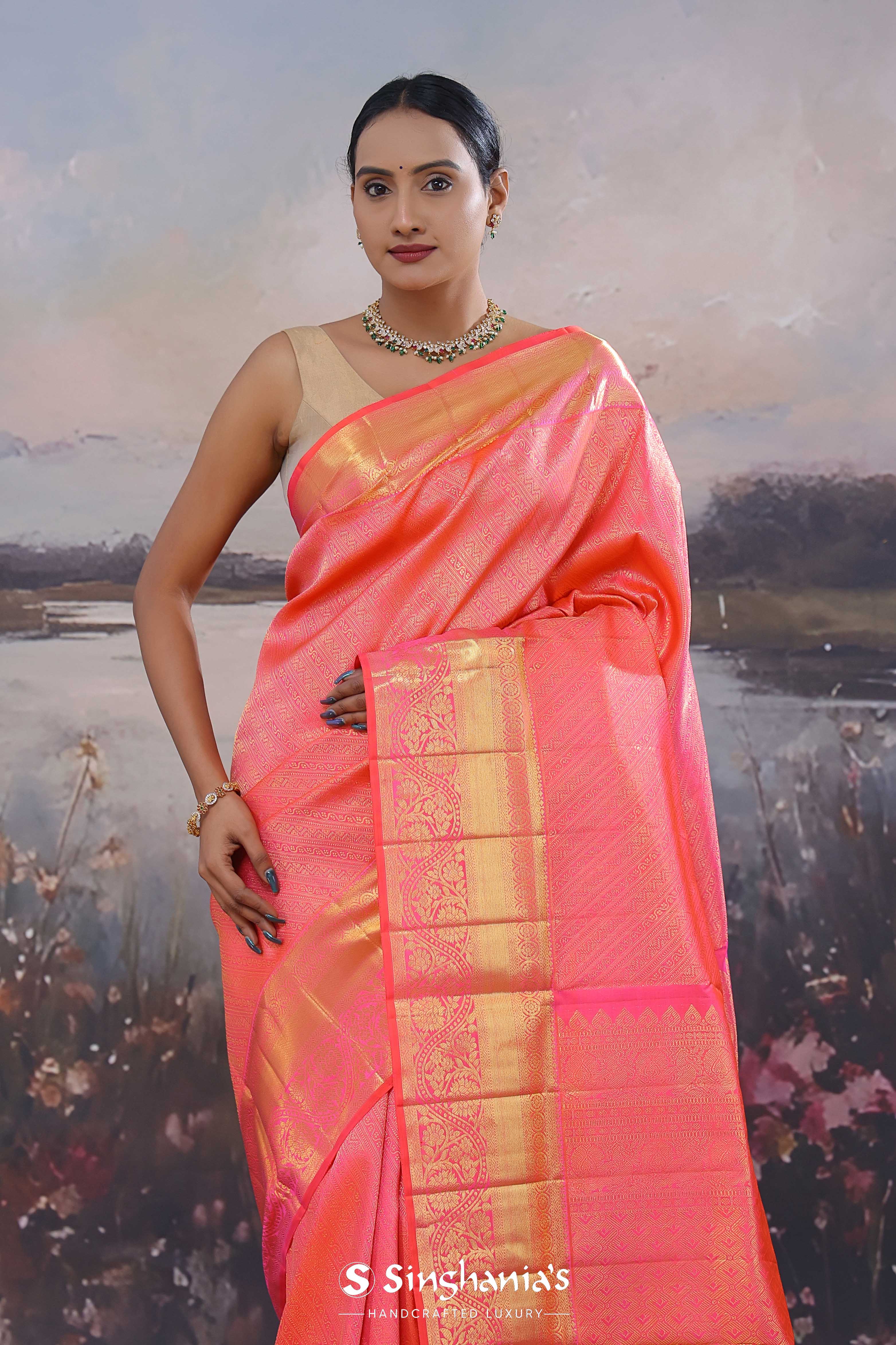 French Rose Kanjivaram Saree