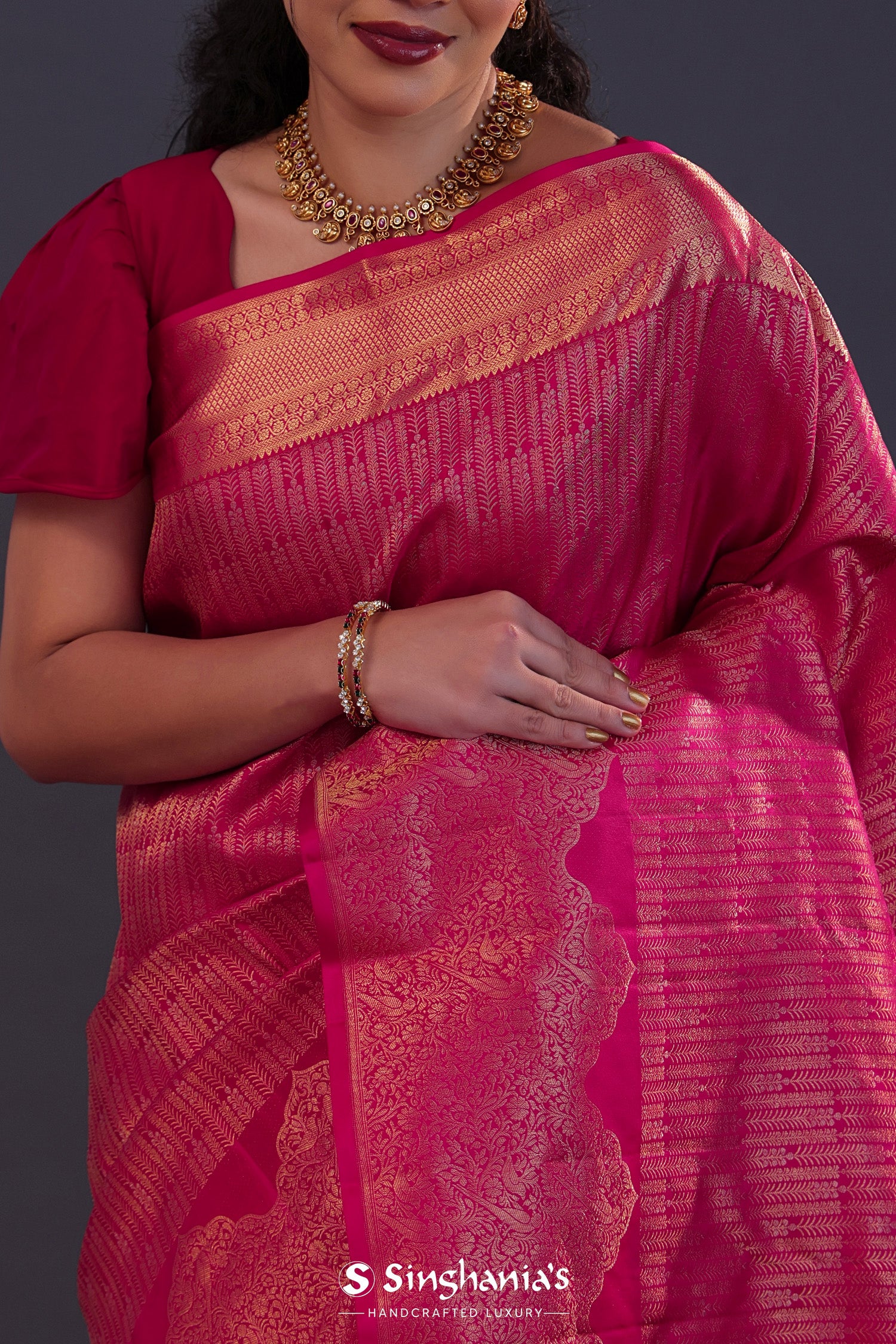 Purple Red Kanjivaram Silk Saree With Designer Border