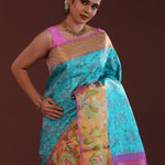 Sky Blue Kanjivaram Silk Saree With Designer Border