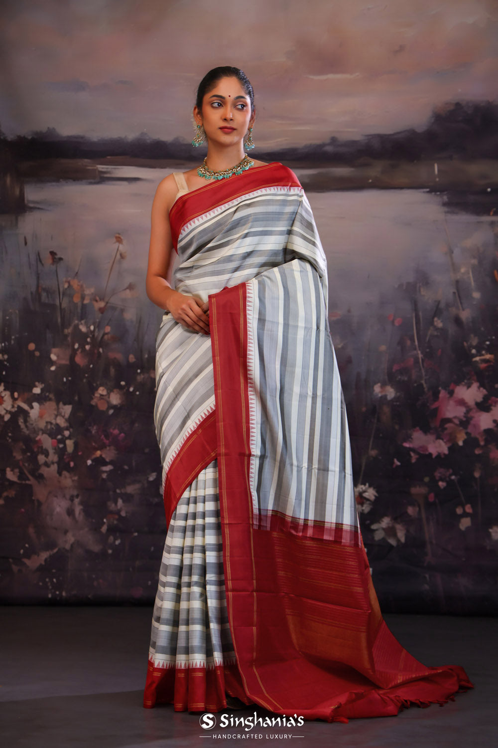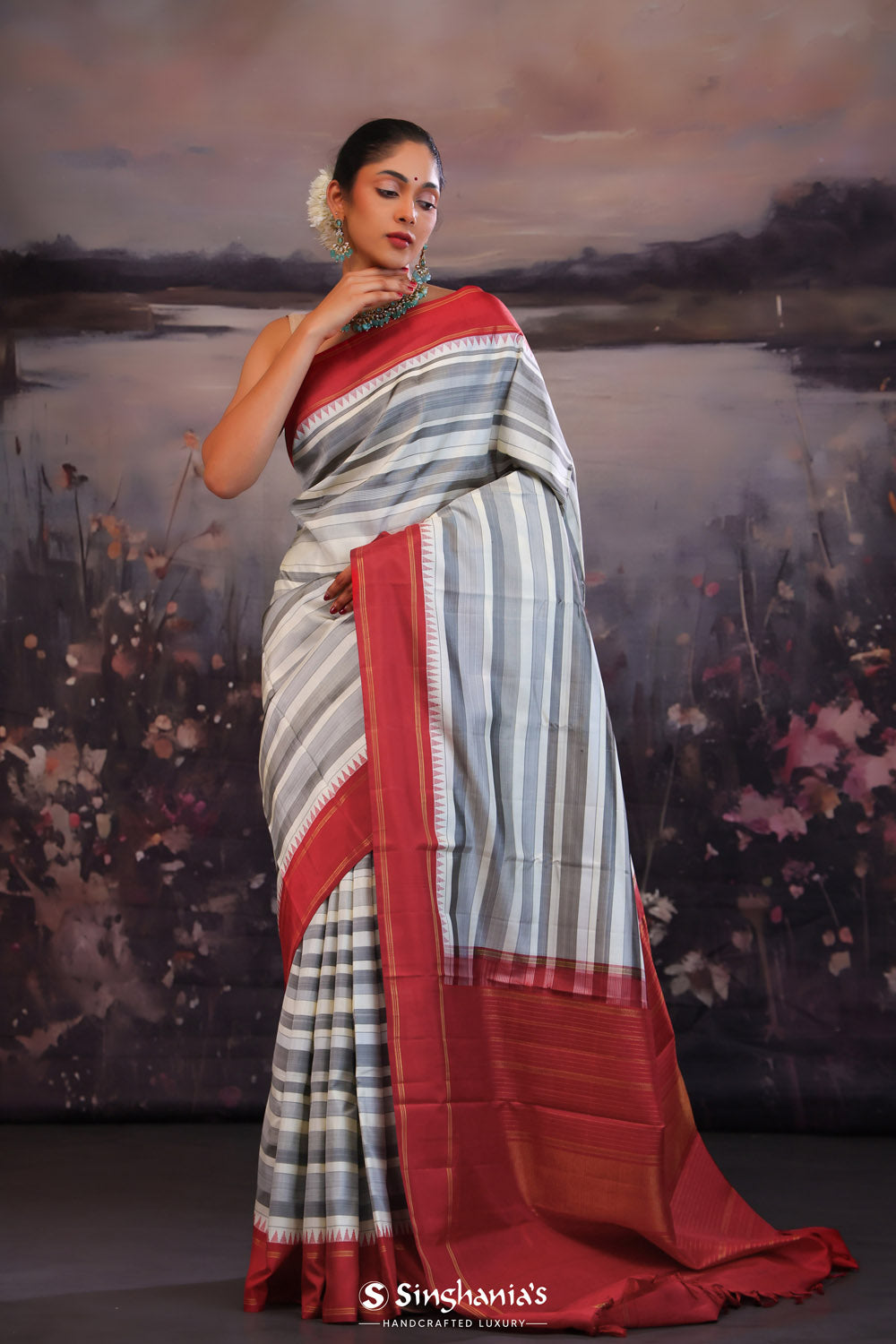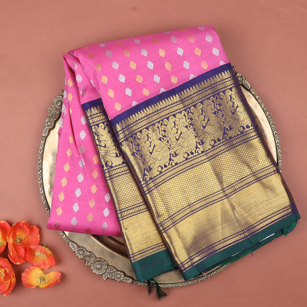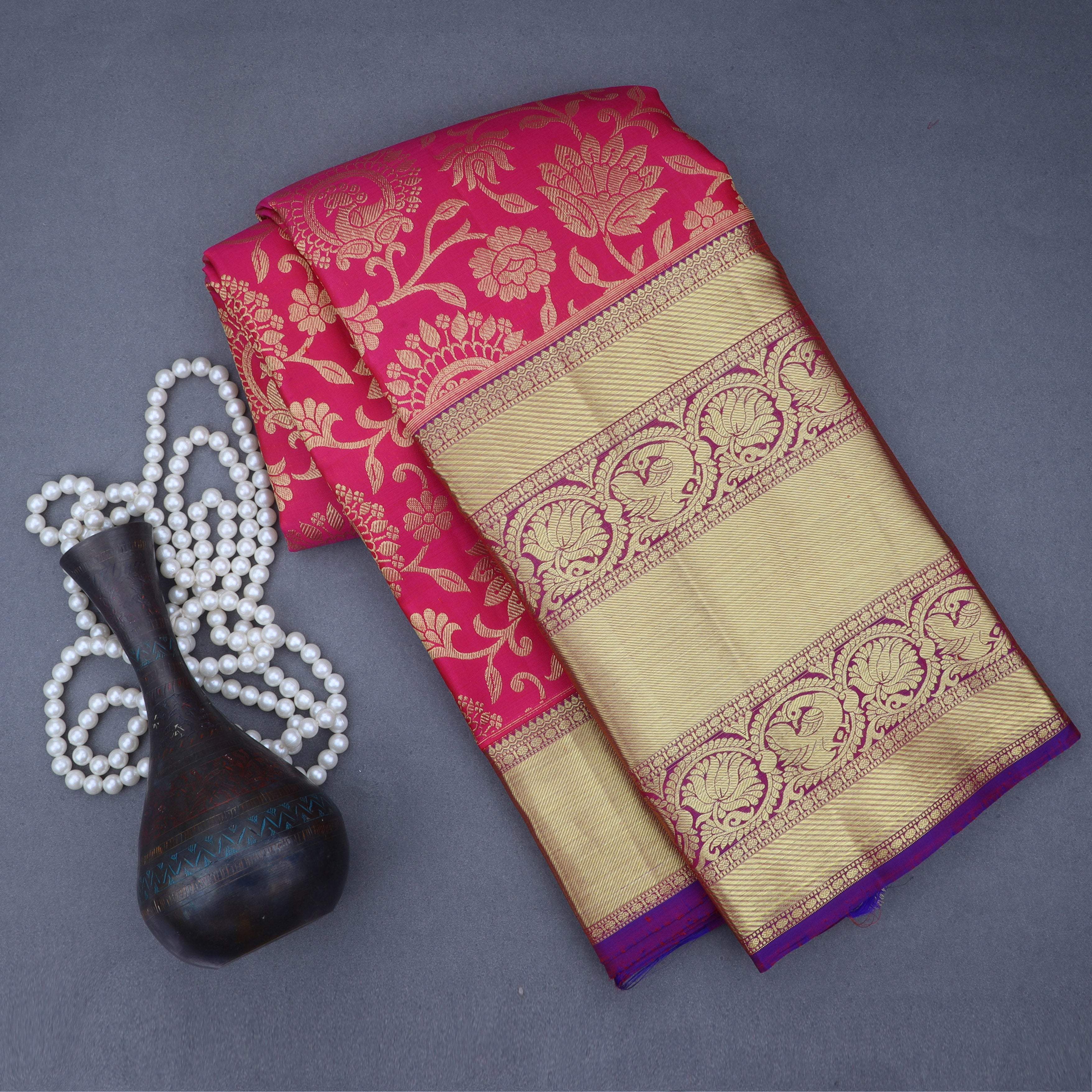 Discover the strength and unique technique of Korvai Kanjivaram Silk Sarees at Singhania's. These hand-loomed beauties are a cherished asset, favored by women for their rich cultural significance. Made with high-quality silk and intricate craftsmanship, the korvai Kanchipuram sarees showcase the best of traditional handloom work. Adorned with exquisite zari work of gold and silver, the silver zari kanjivaram sarees with korvai border silk sarees are a symbol of elegance. For authentic korvai silk sarees online shopping, choose Singhania's. Explore our comprehensive range and experience the timeless beauty of these exquisite sarees.