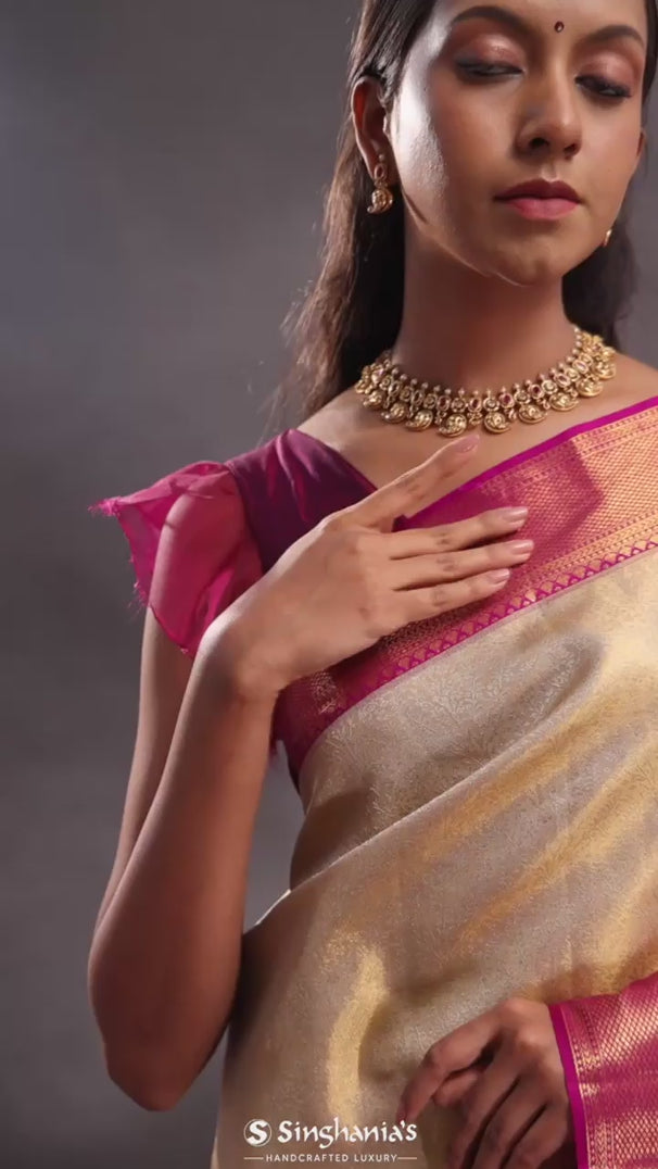 Beige Kanjivaram Tissue Silk Saree With Magenta Border