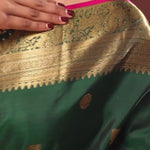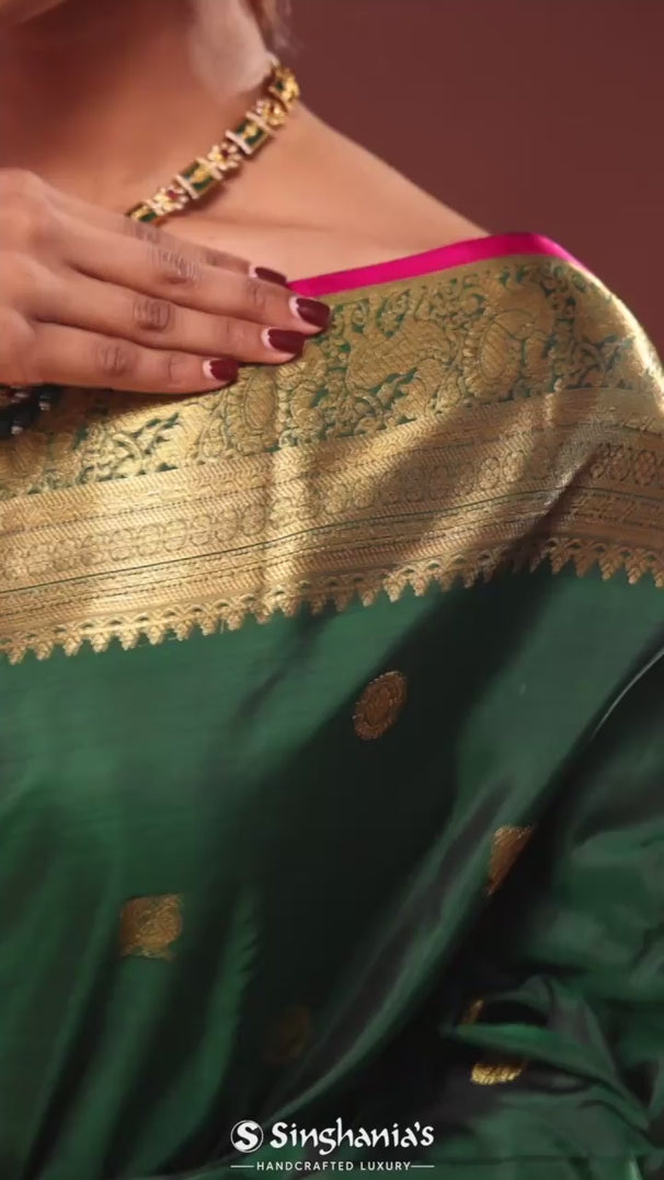 Bottle Green Kanjivaram Saree With Gold Zari Border