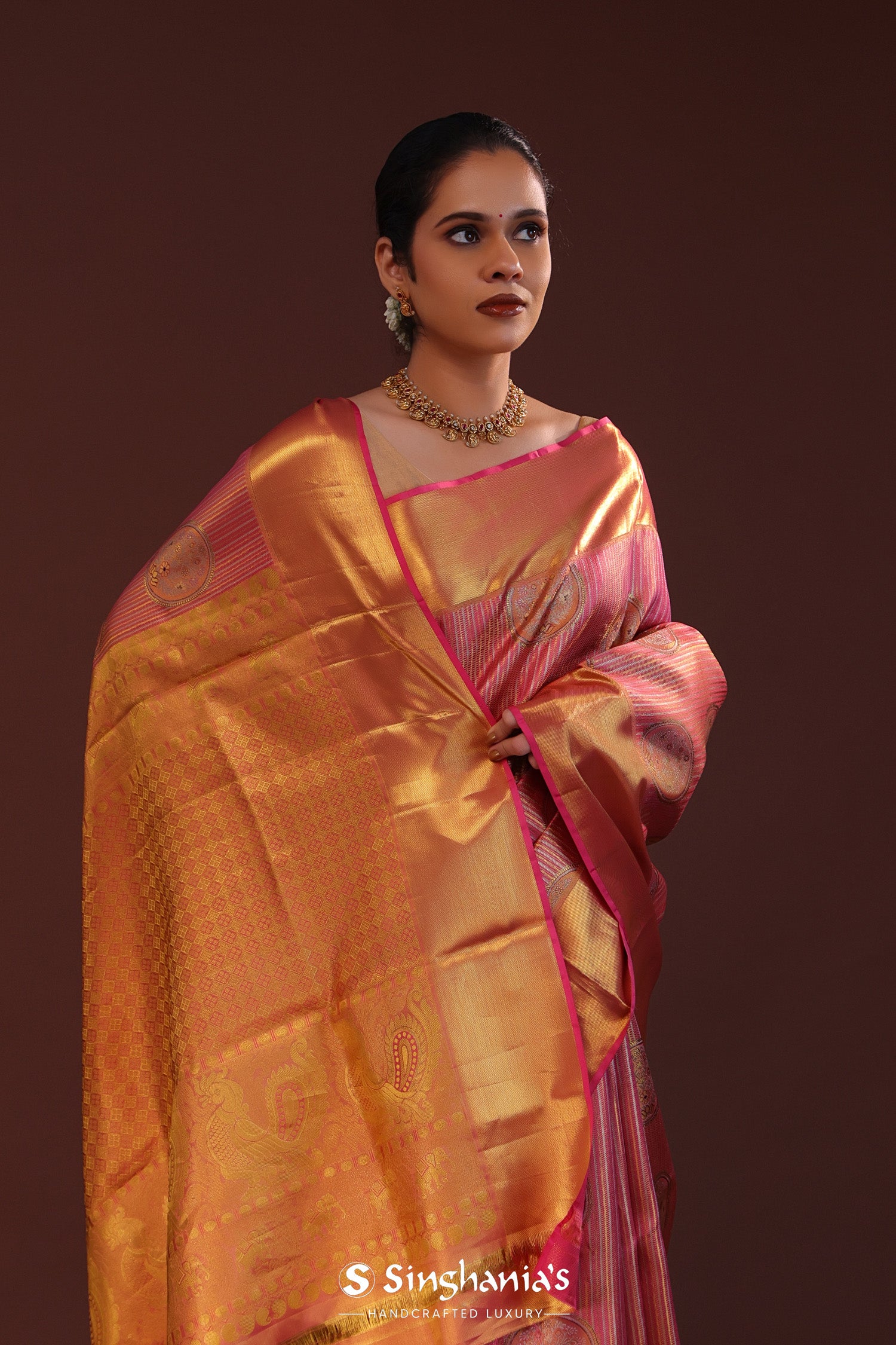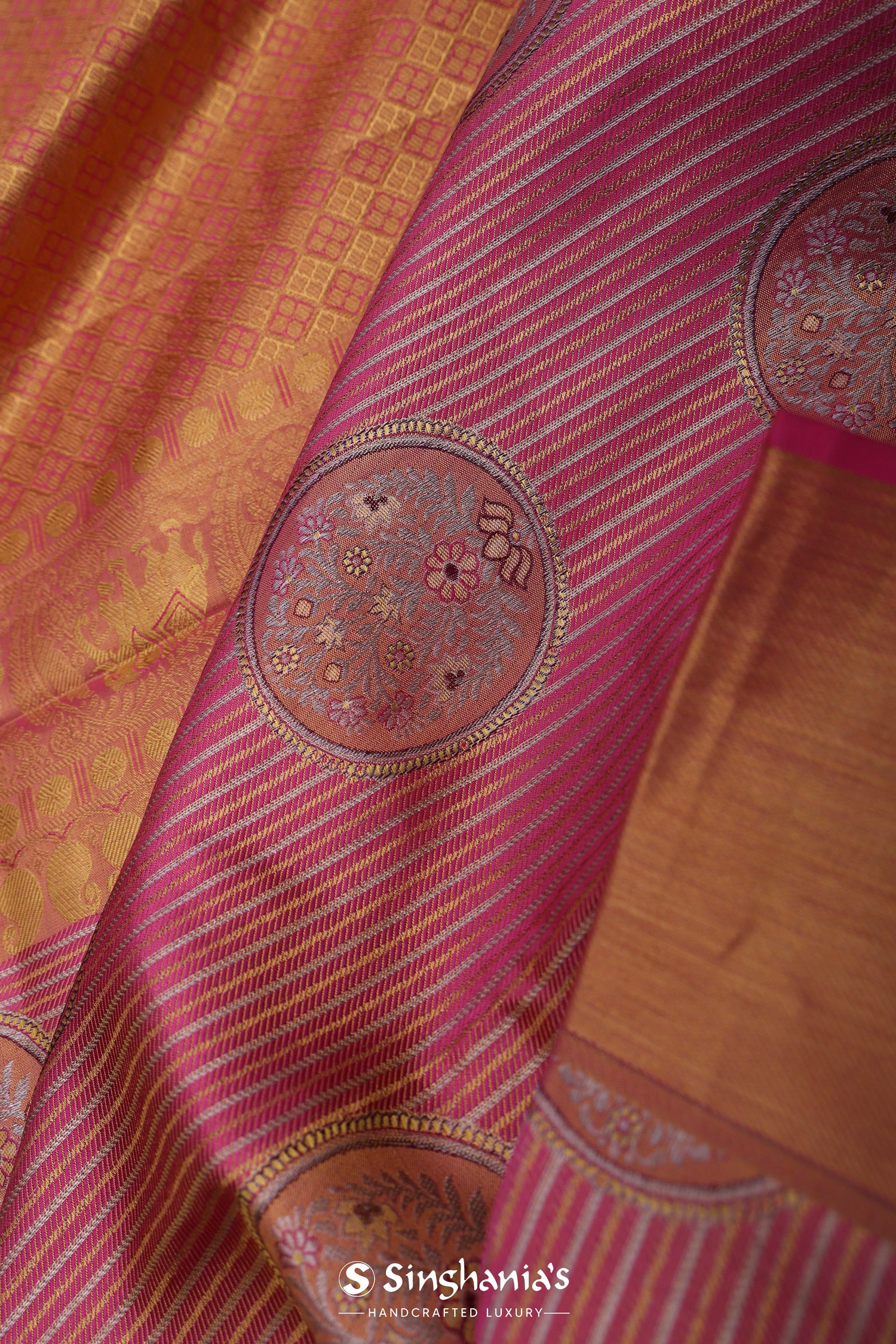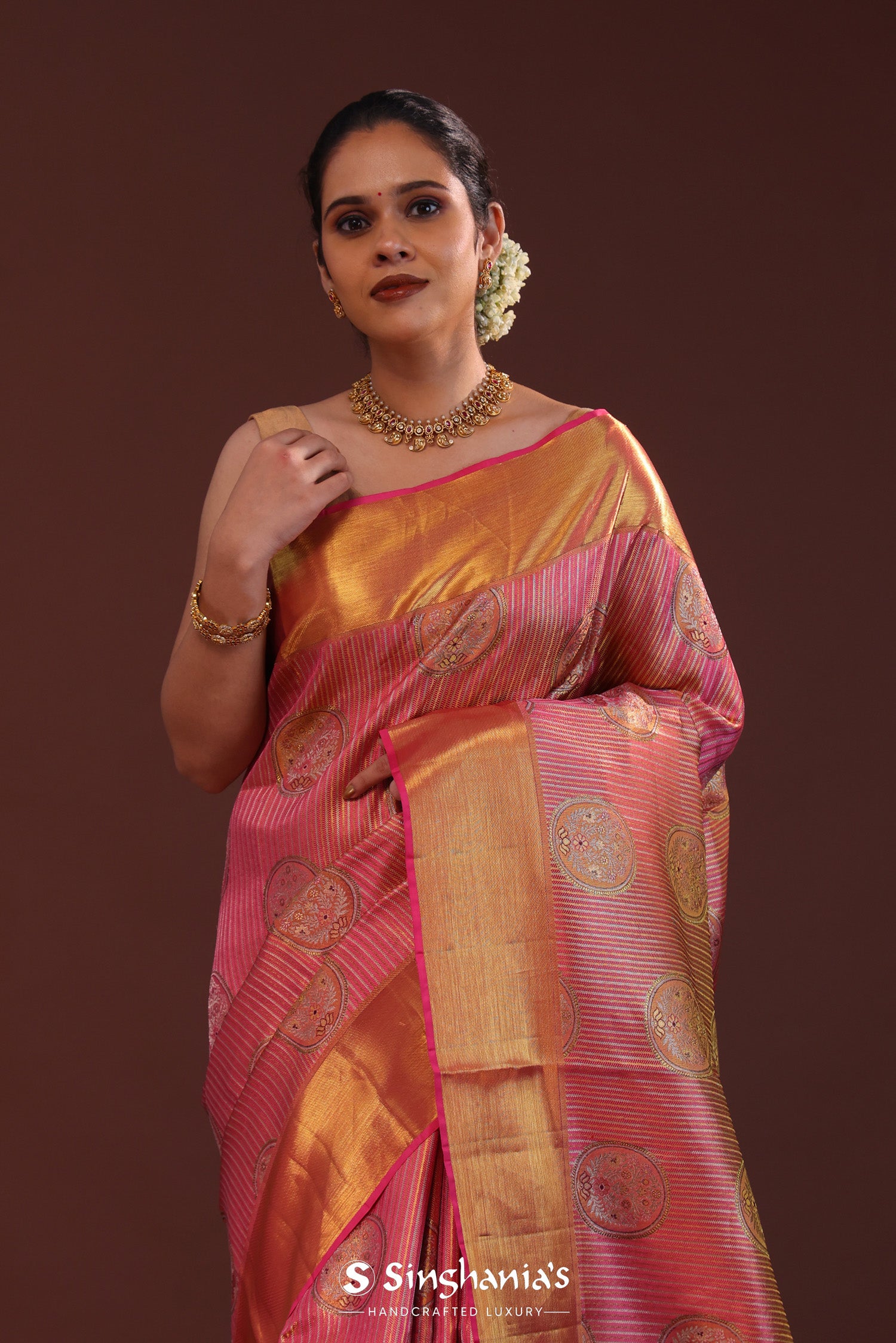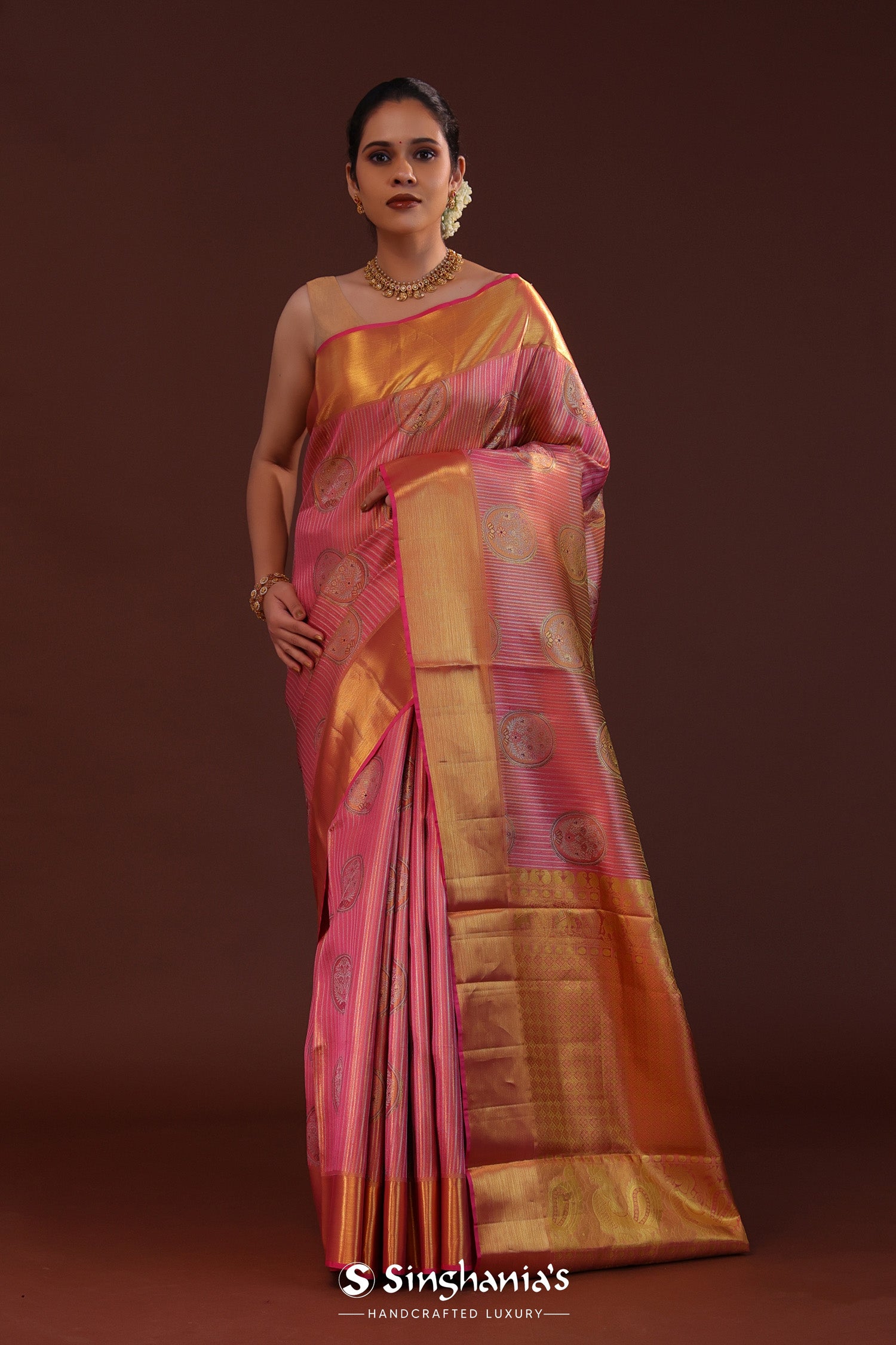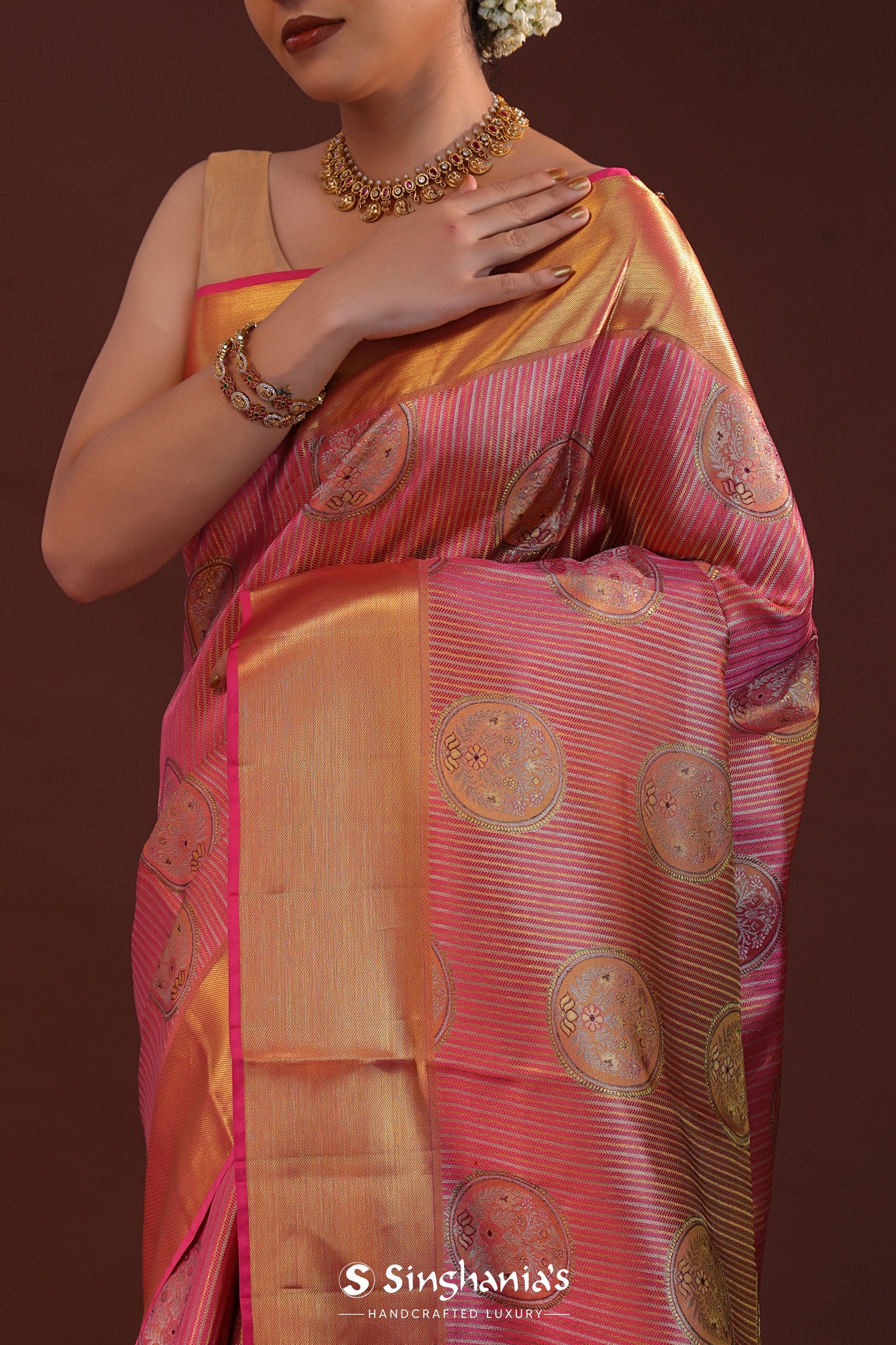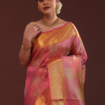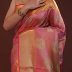 Deep Pink Kanjivaram Tissue Saree With Stripes