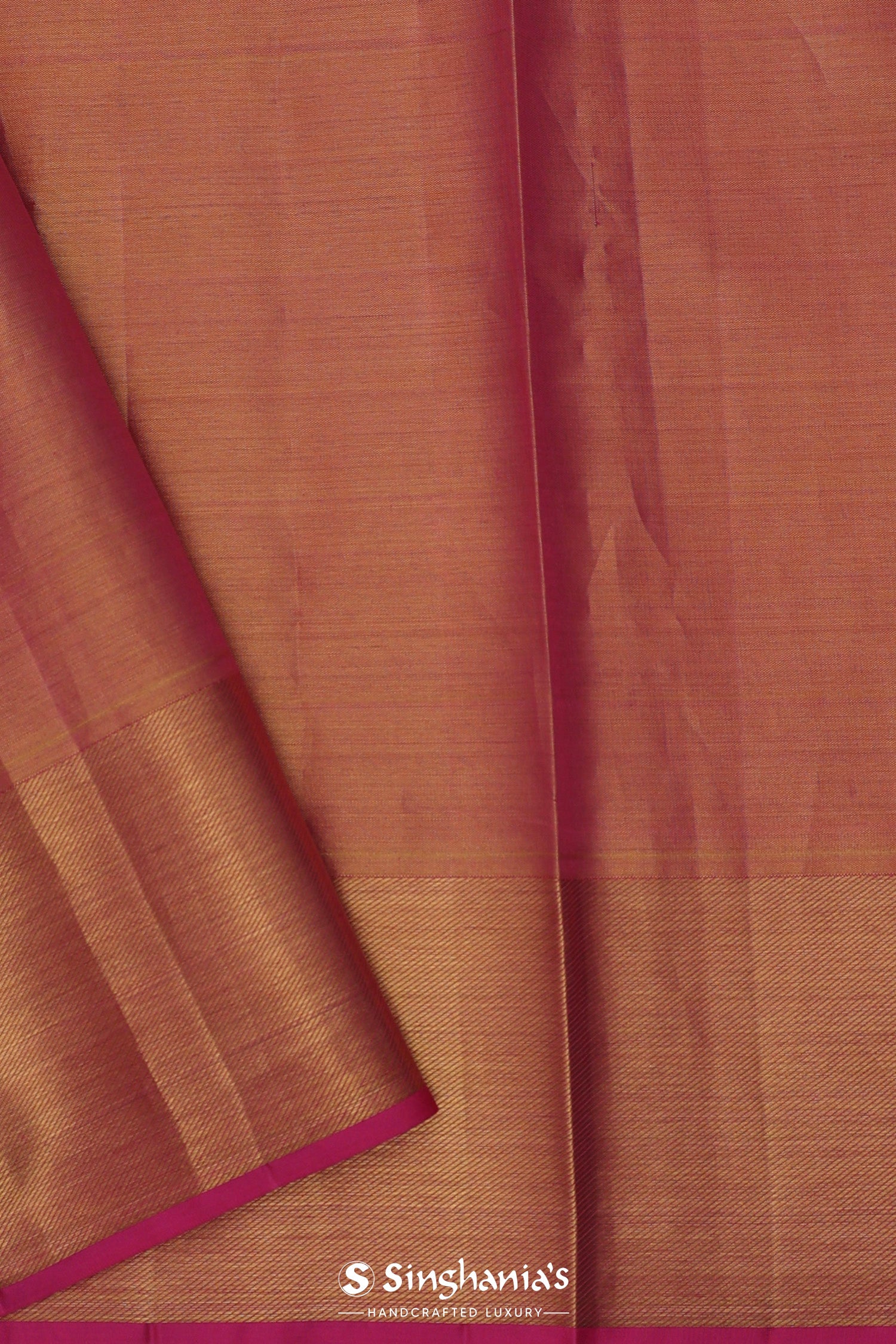 The stripes woven with gold and silver zari on entire body along with geometrical figure of Deep pink kanjivaram tissue saree features gold zari border and unstitched blouse