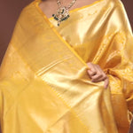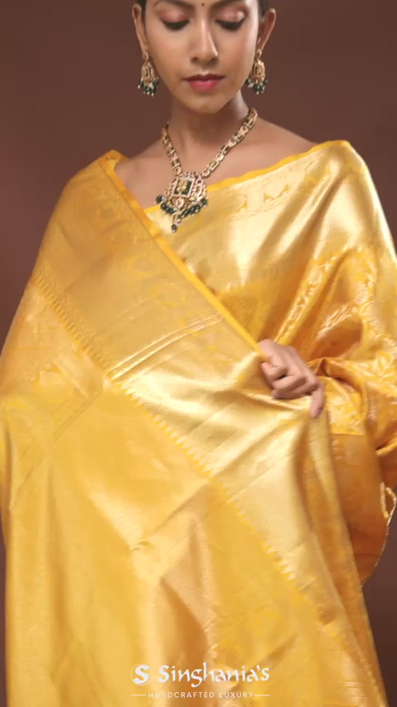 Golden Yellow Kanjivaram Saree With Gold Zari Border