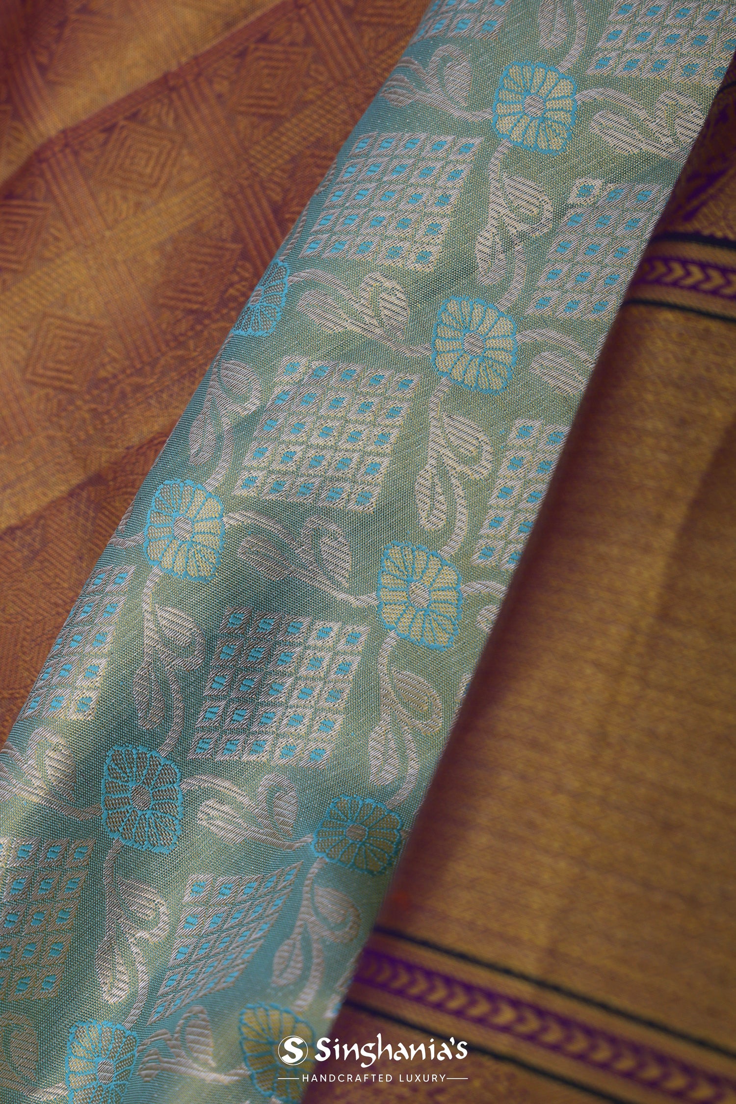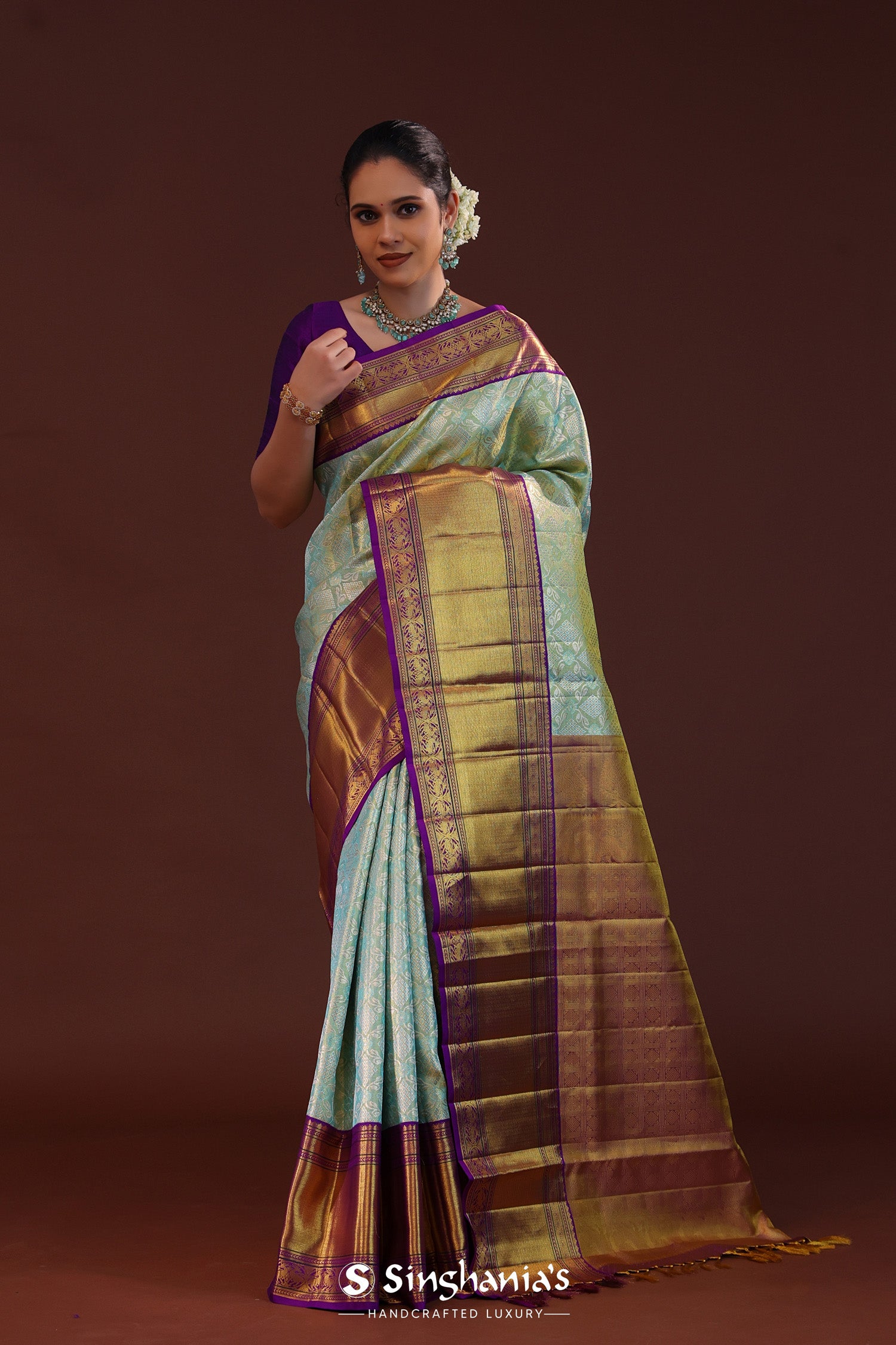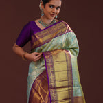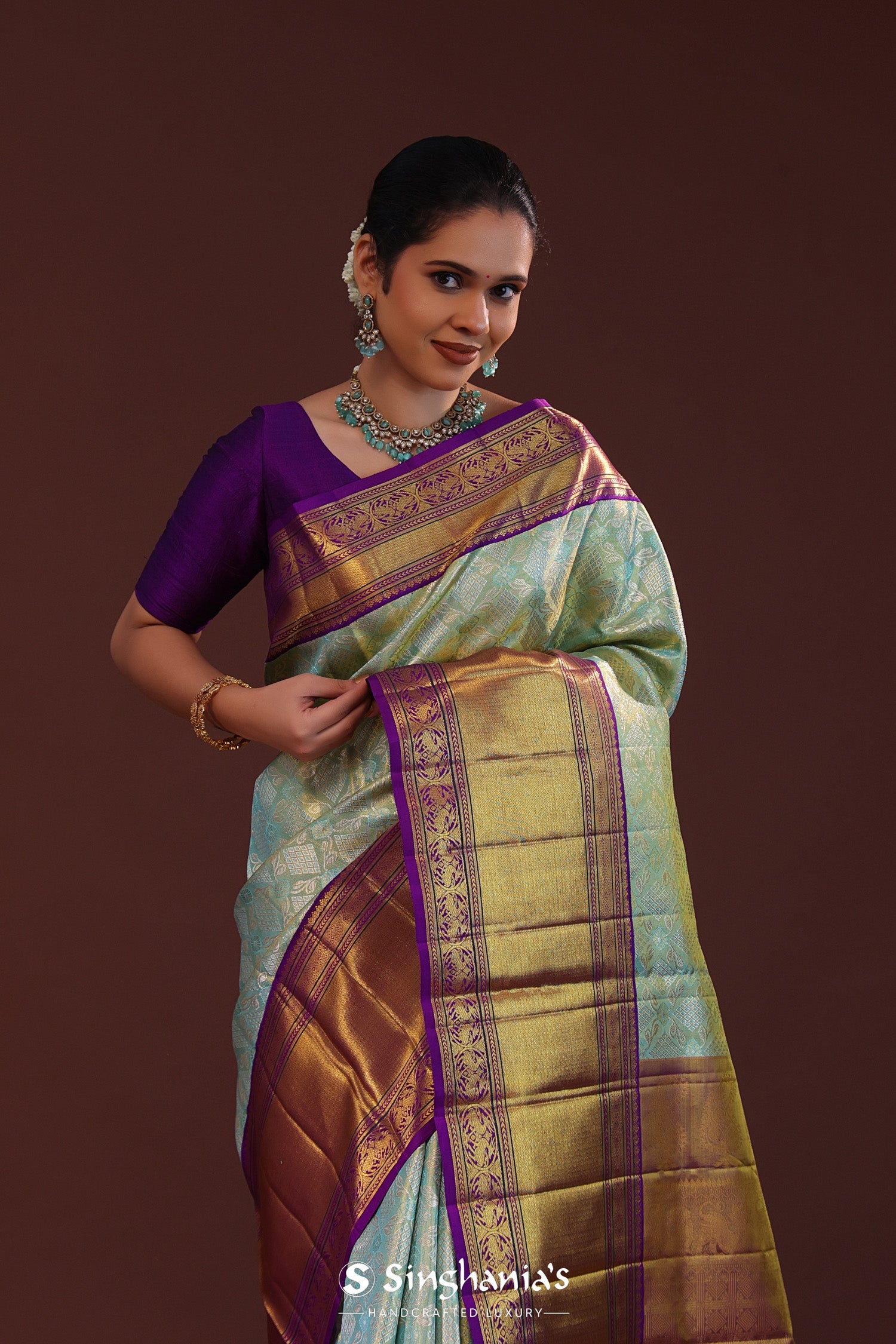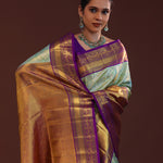 Light Mint Blue Kanjivaram Tissue Saree With Contrast Border