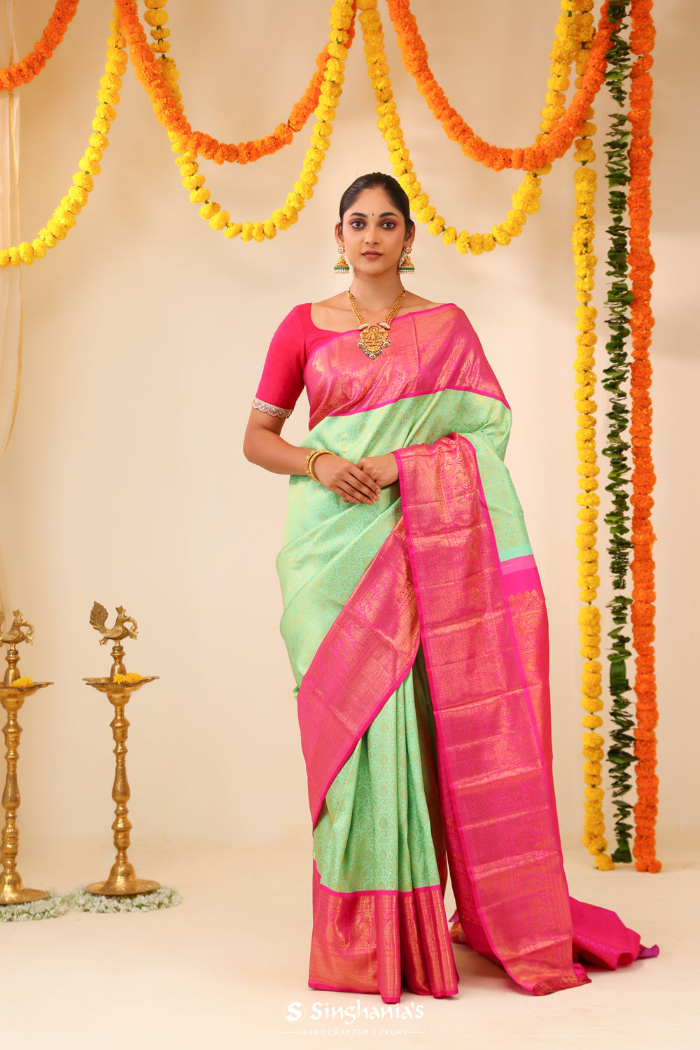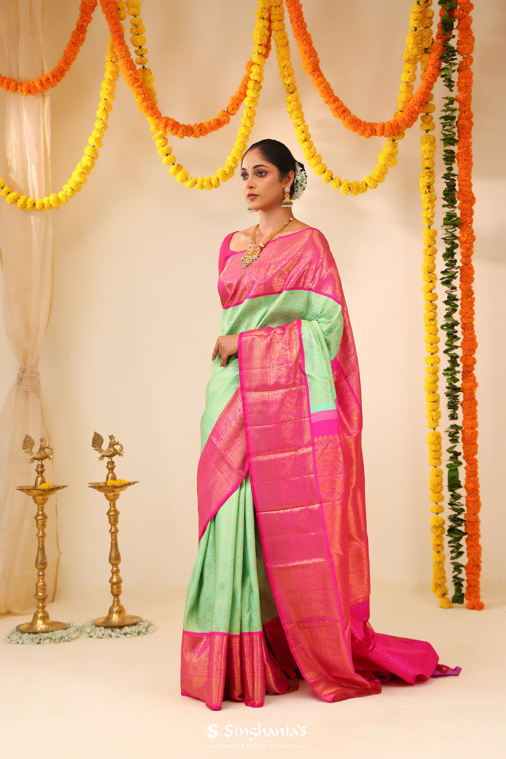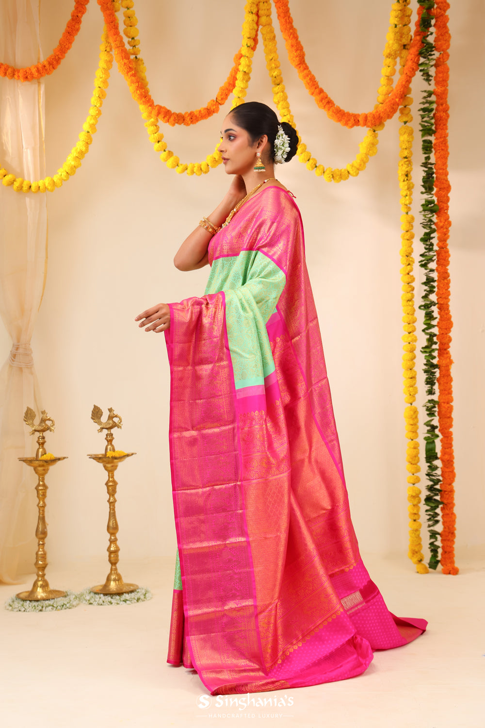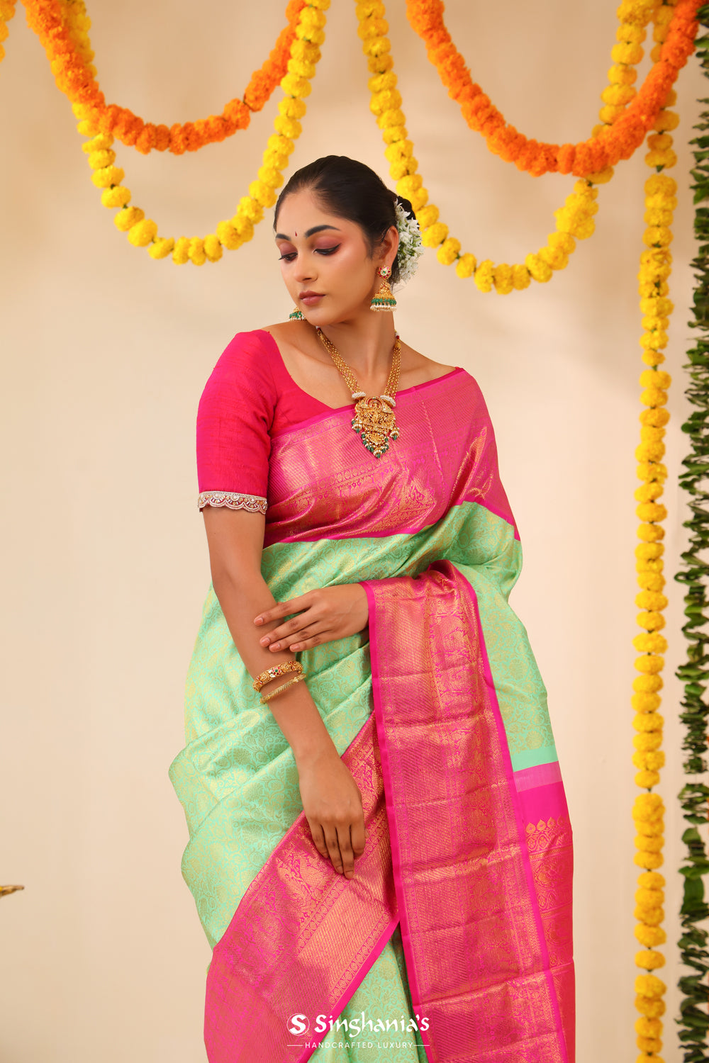 Mint Green Kanjivaram Silk Saree With Contrast Border