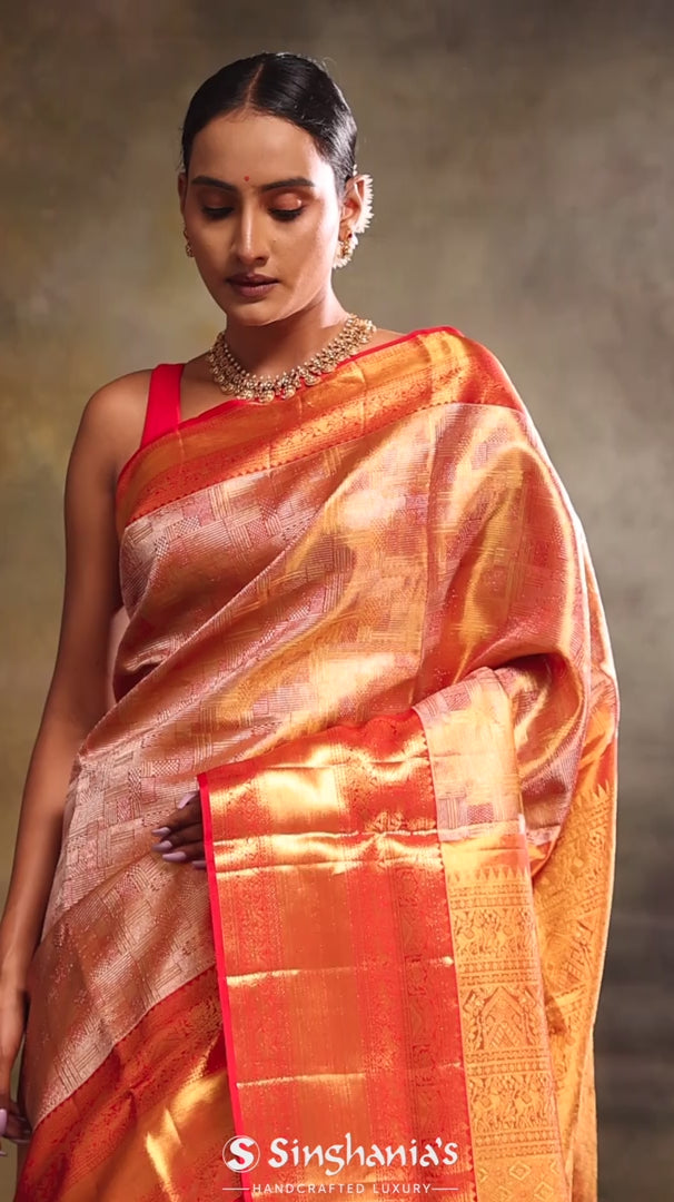 Orange Gold Jaal Kanjivaram Silk Saree