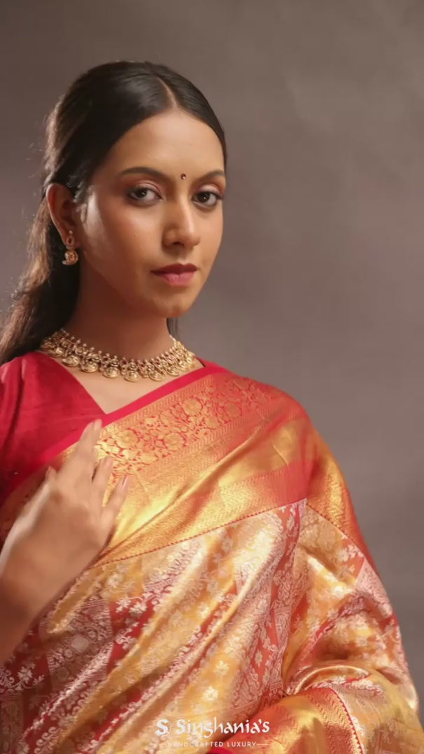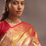 Orange Kanjivaram Silk Saree With Gold Zari Border