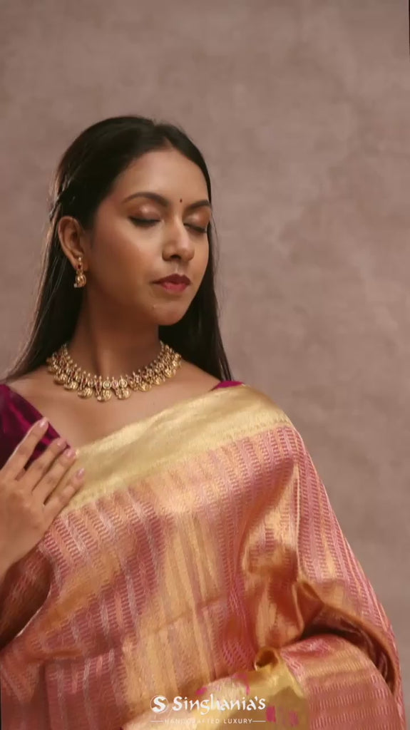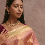 Pink Tissue Kanjivaram Saree With Gold Zari Border