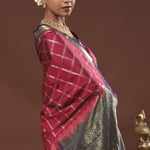 Red Kanjivaram Saree With Dark Indigo Contrast Border