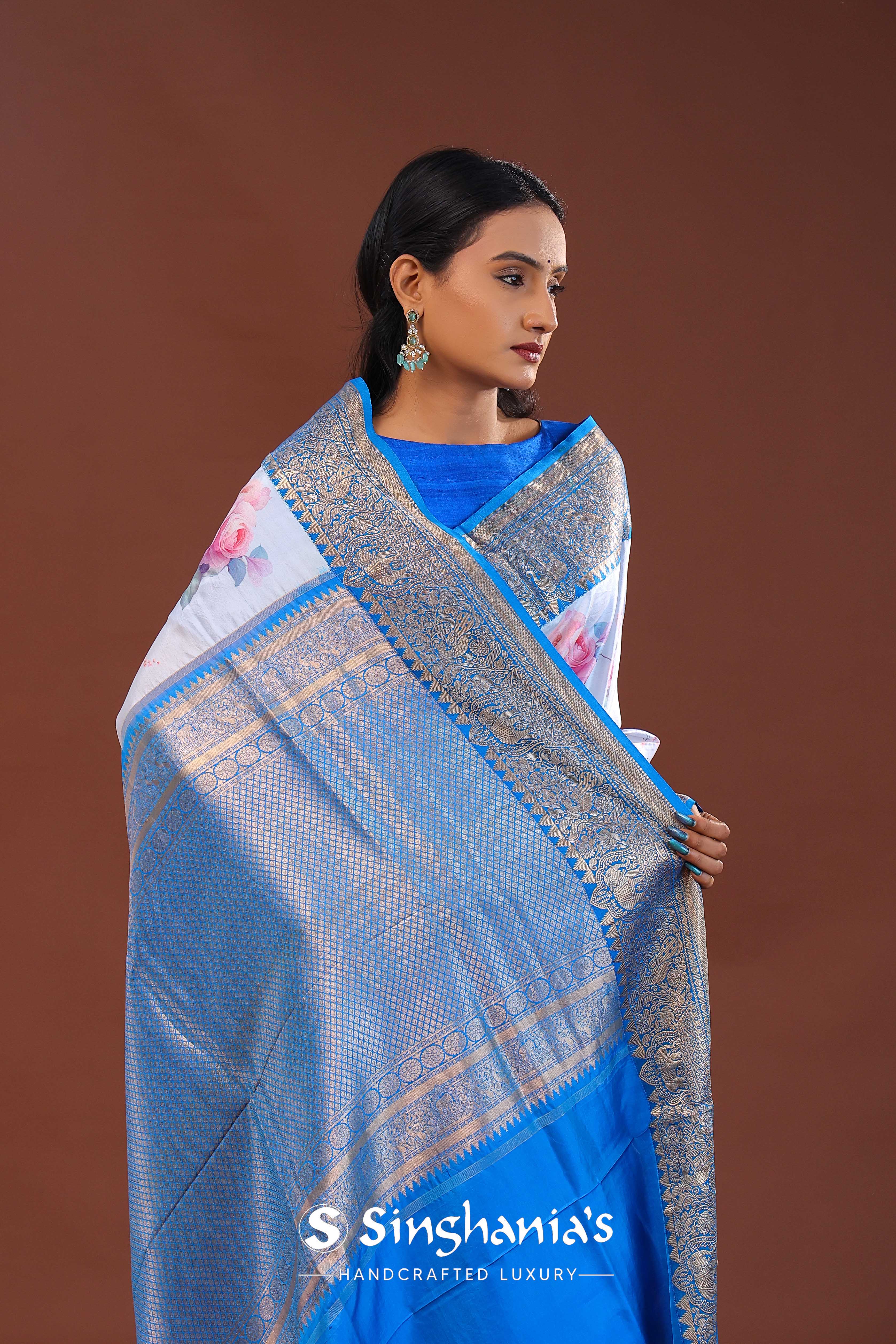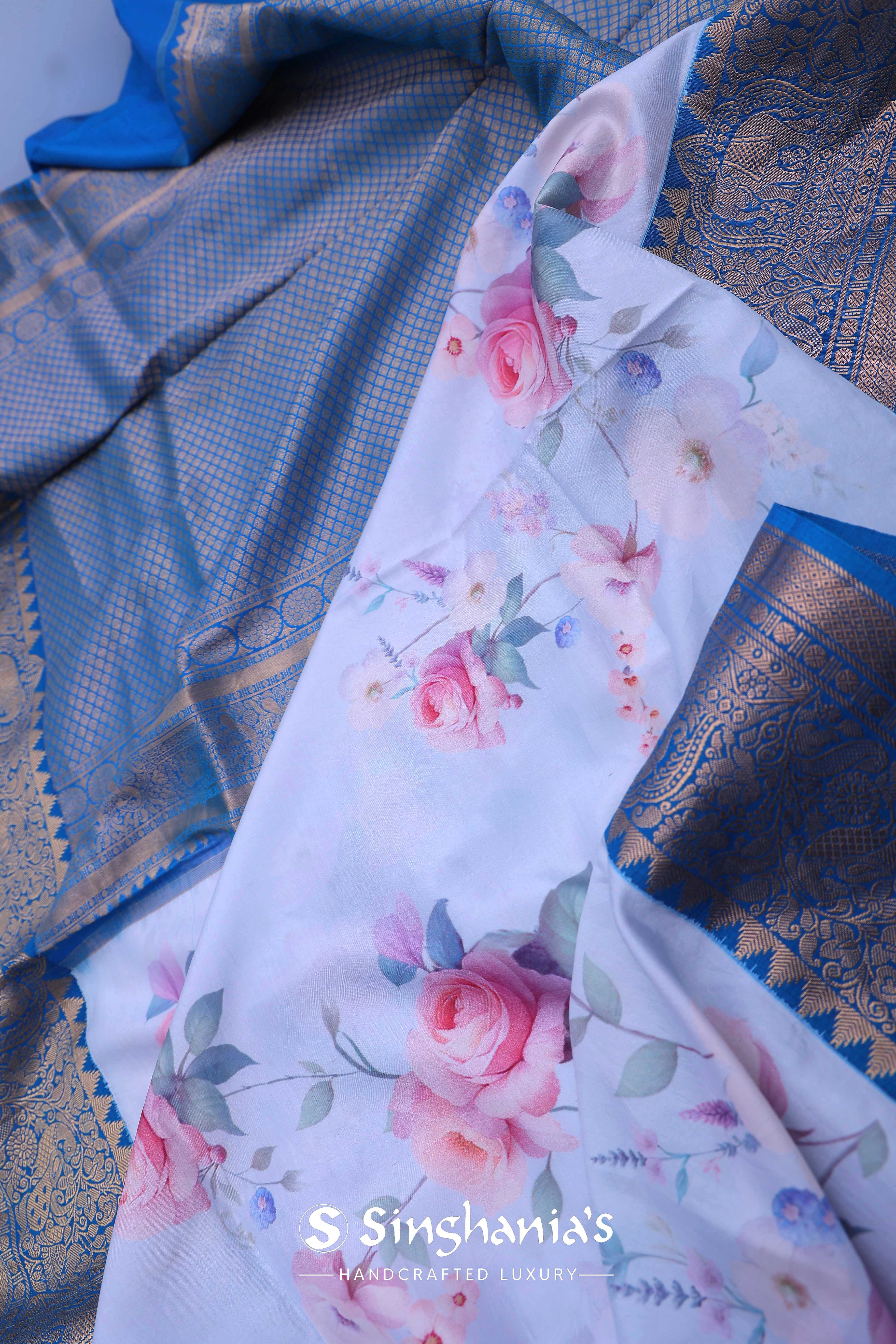 Soft Jordy Blue Digital Printed Kanjivaram Saree